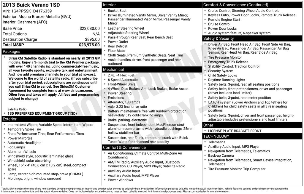 2013 Buick Verano **Here at Long-Lewis we believe in being transparent. We have no Doc fees, or any other hidden fees. We are a one price store and give our best price up front and they are clearly marked on all our inventory.** Mocha Bronze Metallic FWD 6-Speed Automatic Electronic with Overdrive ECOTEC 2.4L I4 SIDI DOHC VVT