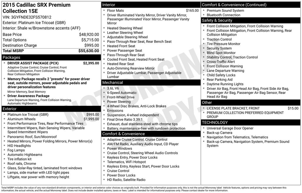 2015 Cadillac SRX Premium FWD 6-Speed Automatic 3.6L V6 DGI DOHC VVT Platinum Ice Tricoat