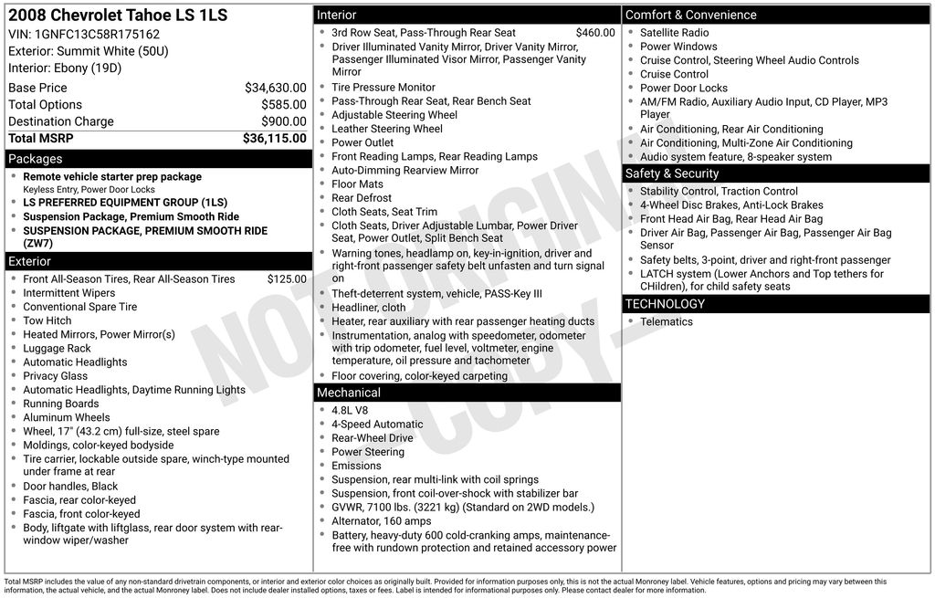 2008 Chevrolet Tahoe LS RWD 4-Speed Automatic with Overdrive Vortec 4.8L V8 SFI Summit White