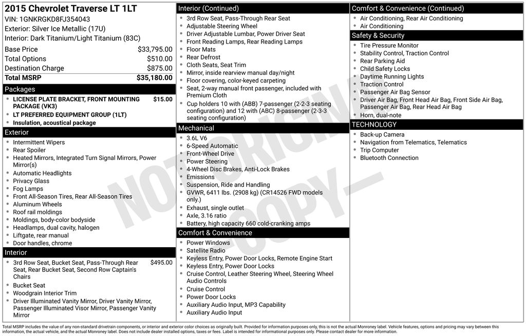 * If you want a big, 3-row midsize SUV that starts under $32,000, holds up to eight passengers, and has a standard V6 and that returns decent fuel economy, the 2015 Chevy Traverse remains a tempting family hauler. Source: KBB.com
