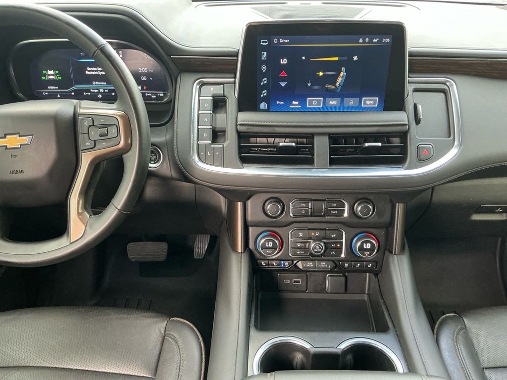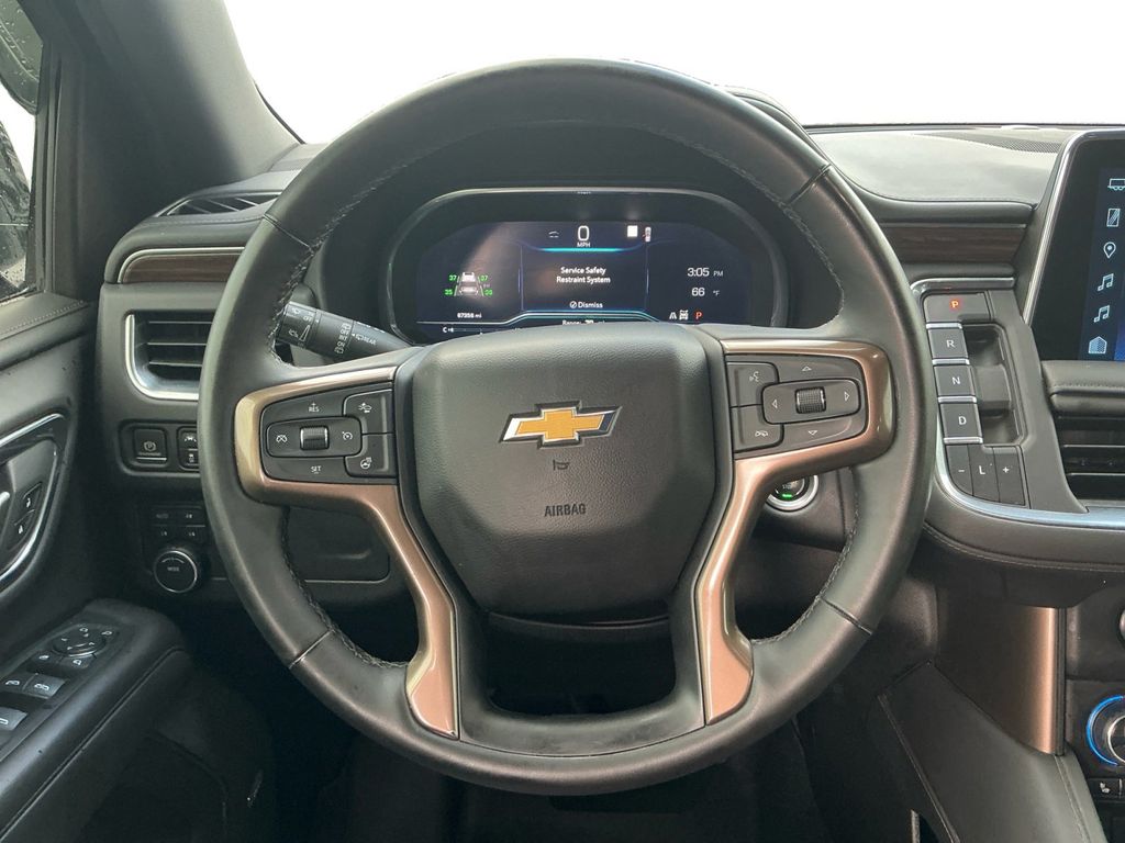2023 Chevrolet Tahoe High Country Black High Country 4WD 10-Speed Automatic with Overdrive 3.0L I6 4WD, Jet Black Leather, 1.5 kW Heater/Defrost Air System, 10 Speakers, 15" Diagonal Multi-Color Head-Up Display, 1st & 2nd Row Color-Keyed Carpeted Floor Mats, 2-Speed Active Electronic AutoTrac Transfer Case, 250-Amp Alternator, 3.23 Rear Axle Ratio, 3rd Row 60/40 Power-Folding Split-Bench Seat, 3rd row seats: split-bench, 4-Wheel Disc Brakes, 850 Cold-Cranking Amps Battery, ABS brakes, Adaptive Cruise Control, Adaptive suspension, Air Conditioning, Alloy wheels, AM/FM radio: SiriusXM with 360L, Apple CarPlay/Android Auto, Auto High-beam Headlights, Auto-dimming door mirrors, Auto-dimming Rear-View mirror, Auto-leveling suspension, Automatic temperature control, Black Name Plates (LPO), Black Roof Rack Cross Rails, Bose 10-Speaker Centerpoint Surround Audio Sys Ft, Brake assist, Bright Front & Rear Door Sill Plates, Bumpers: body-color, Chrome Door Handles w/Body-Color Strip, Color-Keyed Carpeting Floor Covering, Compass, Delay-off headlights, Diesel B20 Fuel, Driver & Front Outboard Passenger Airbags, Driver door bin, Driver vanity mirror, Dual Exhaust System, Dual front impact airbags, Dual front side impact airbags, Dual-Pane Power Panoramic Sunroof, Electronic Stability Control, Emergency communication system: OnStar and Chevrolet connected services capable, Engine Block Heater, Enhanced Automatic Emergency Braking, Enhanced Driver Information Center, Exterior Parking Camera Rear, Floor Console, Four wheel independent suspension, Front & Rear Black Bowtie Emblems (LPO), Front anti-roll bar, Front Bucket Seats, Front Center Armrest, Front dual zone A/C, Front High-Back Reclining Bucket Seats, Front reading lights, Fully automatic headlights, Garage door transmitter, Hands-Free Rear Power Programmable Liftgate, HD Surround Vision, Heads-Up Display, Heated & Ventilated Driver & Front Passenger Seats, Heated 2nd Row Outboard Seats, Heated door mirrors, Heated Driver & Front Passenger Seats, Heated front seats, Heated rear seats, Heated Steering Wheel, Heated steering wheel, Hill Descent Control, Illuminated entry, Infotainment Display, Inside Rearview Auto-Dimming Rear Camera Mirror, Lane Change Alert w/Side Blind Zone Alert, LED Daytime Running Lamps, Low tire pressure warning, Magnetic Ride Control Suspension, Memory seat, Memory Settings, Navigation System, Not Equipped w/4-Way Driver & Fr Pass Pwr Lumbar, Occupant sensing airbag, Outside Heated Power-Adjustable Mirrors, Outside temperature display, Overhead airbag, Overhead console, Panic alarm, Passenger door bin, Passenger vanity mirror, Perforated Leather Seat Trim, Power door mirrors, Power driver seat, Power Liftgate, Power passenger seat, Power Release 2nd Row Bucket Seats, Power steering, Power Tilt & Telescopic Steering Column, Power windows, Preferred Equipment Group 3LZ, Premium audio system: Chevrolet Infotainment 3 Premium, Radio: Chevrolet Infotainment 3 Premium System, Rain sensing wipers, Rear air conditioning, Rear anti-roll bar, Rear Camera Mirror Washer, Rear Cross Traffic Alert, Rear Pedestrian Alert, Rear reading lights, Rear window defroster, Rear window wiper, Remote keyless entry, Remote Start, Roof rack: rails only, Safety Alert Seat, Security system, Set of 4 Wheel Locks (LPO), Single Outlet Exhaust System, SiriusXM Radio w/360L, Speed control, Speed-sensing steering, Split folding rear seat, Spoiler, Steering wheel memory, Steering wheel mounted audio controls, Tachometer, Telescoping steering wheel, Tilt steering wheel, Traction control, Trip computer, Turn signal indicator mirrors, Universal Home Remote, Upper & Lower Active Aero Shutters, Variably intermittent wipers, Ventilated front seats, Voltmeter, Wheels: 22" Multi-Spoke Gloss Black (LPO) (SRV), Wheels: 22" x 9" Steel Interim (LPO), Wheels: 22" x 9" Sterling Silver Premium Painted, Wireless Charging, Wrapped Steering Wheel, 4WD, Jet Black Leather.