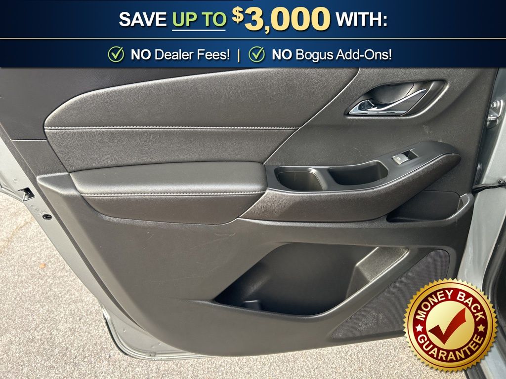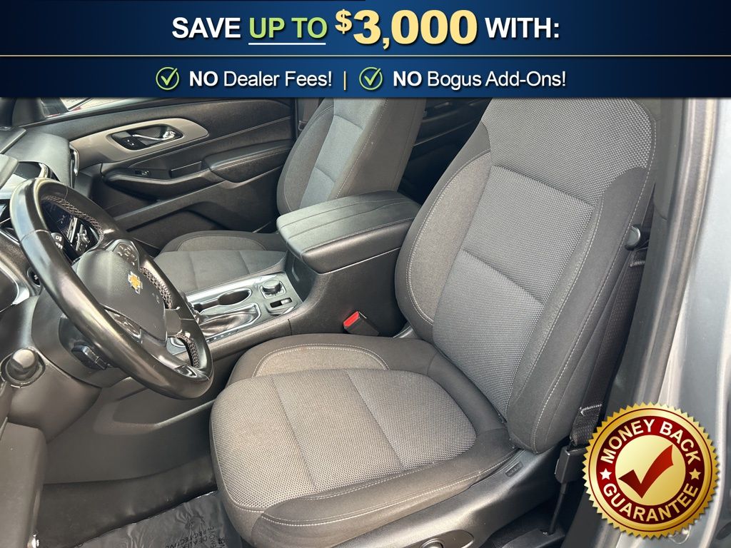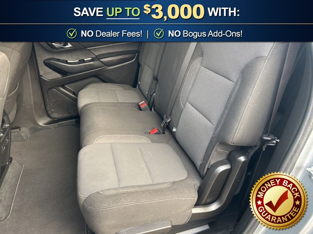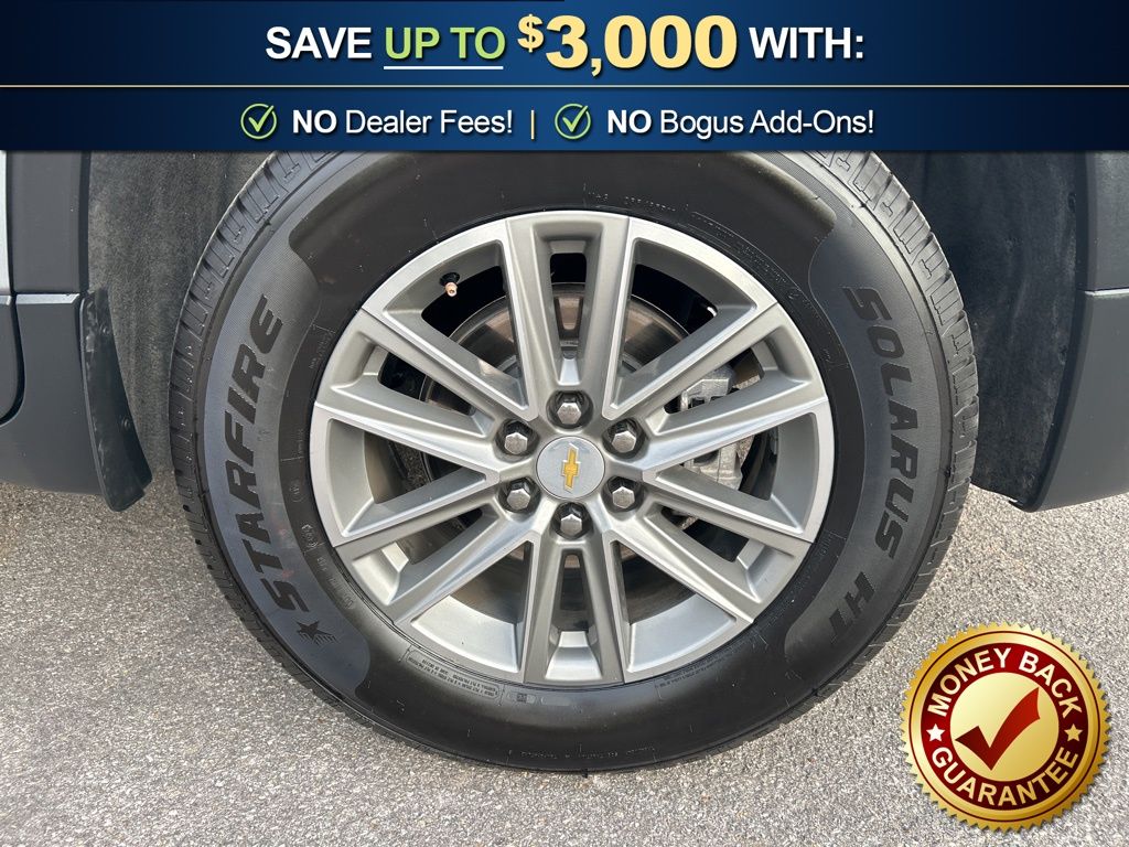 Priced below KBB Fair Purchase Price! 2-Way Manual Front Passenger Seat Adjuster, 3.49 Axle Ratio, 3rd row seats: split-bench, 4-Wheel Disc Brakes, 6 Speakers, 6-Speaker Audio System Feature, 8-Passenger Seating (2-3-3 Seating Configuration), 8-Way Power Driver Seat Adjuster, ABS brakes, Air Conditioning, Alloy wheels, AM/FM radio: SiriusXM, Apple CarPlay/Android Auto, Auto High-beam Headlights, Automatic temperature control, Brake assist, Bumpers: body-color, Compass, Delay-off headlights, Driver door bin, Driver vanity mirror, Dual front impact airbags, Dual front side impact airbags, Electronic Stability Control, Emergency communication system, Exterior Parking Camera Rear, Four wheel independent suspension, Front anti-roll bar, Front Bucket Seats, Front Center Armrest, Front dual zone A/C, Front License Plate Bracket Mounting Package, Front reading lights, Fully automatic headlights, Heated door mirrors, Illuminated entry, Leather steering wheel, Low tire pressure warning, Not Equipped w/Rear Park Assist (060), Occupant sensing airbag, Outside temperature display, Overhead airbag, Overhead console, Panic alarm, Passenger door bin, Passenger vanity mirror, Power door mirrors, Power Driver Lumbar Control, Power driver seat, Power steering, Power windows, Premium Cloth Seat Trim, Radio data system, Radio: Chevrolet Infotainment System AM/FM Stereo, Rear air conditioning, Rear anti-roll bar, Rear reading lights, Rear window defroster, Rear window wiper, Remote keyless entry, Security system, SiriusXM Radio, Speed control, Speed-sensing steering, Spoiler, Steering wheel mounted audio controls, Tachometer, Telescoping steering wheel, Tilt steering wheel, Traction control, Trip computer, Turn signal indicator mirrors, Variably intermittent wipers, Voltmeter, Wheels: 18" Bright Silver-Painted Aluminum.