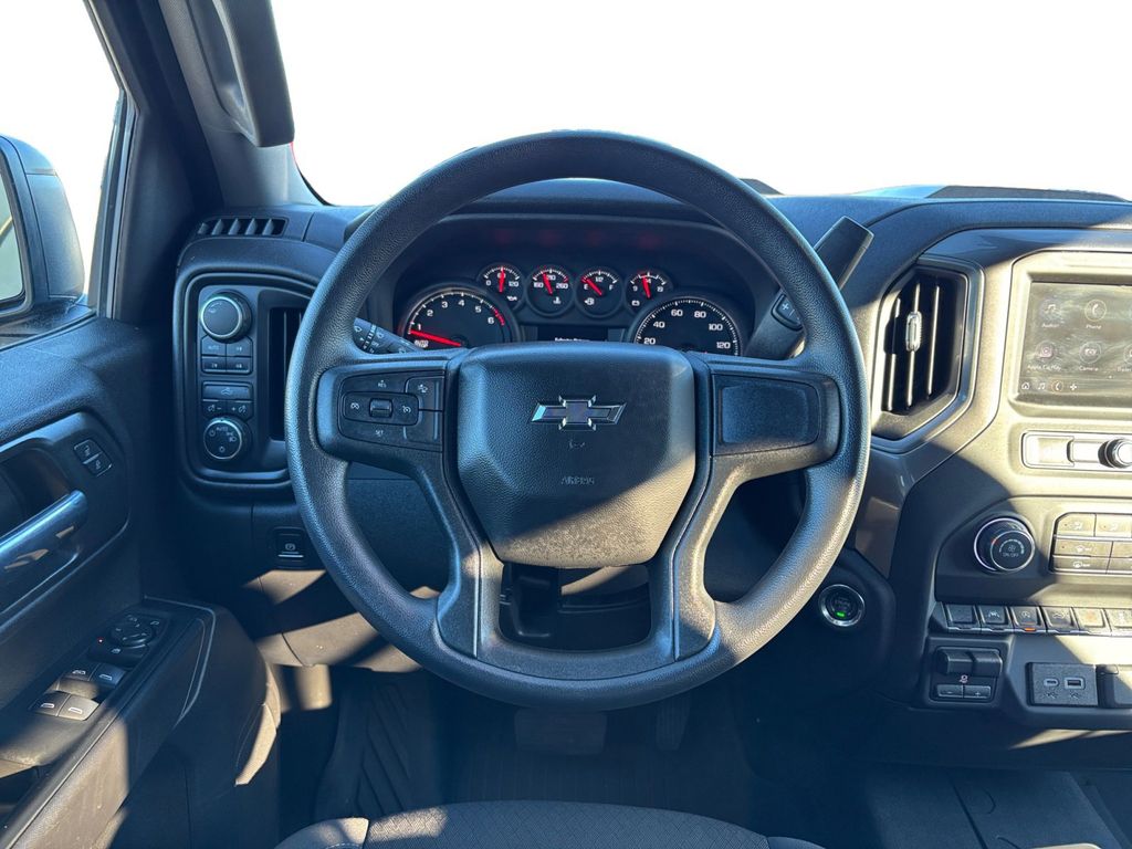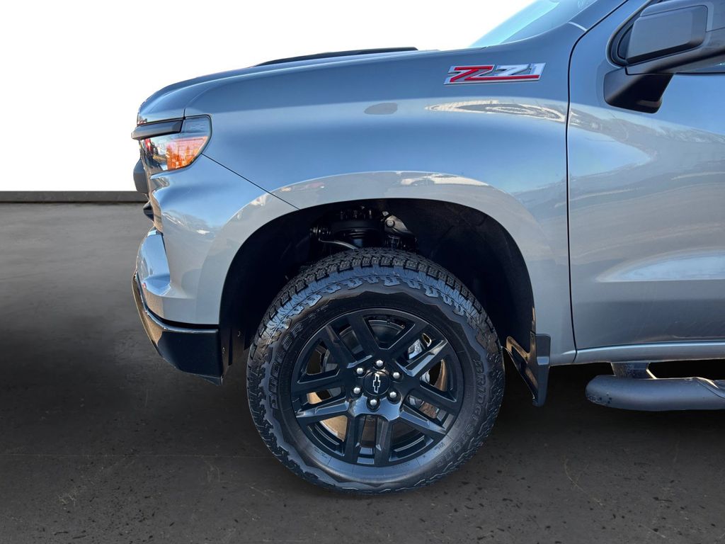 2025 Chevrolet Silverado 1500 Custom Trail Boss Sterling Gray Metallic Custom Trail Boss 4WD 10-Speed Automatic EcoTec3 5.3L V8 10-Speed Automatic, 4WD, Black Cloth, 10-Way Power Driver Seat w/Lumbar, 120-Volt Bed Mounted Power Outlet, 120-Volt Interior Power Outlet, 170 Amp Alternator, 220 Amp Alternator, 3.5" Monochromatic Display Driver Info Center, 4-Wheel Disc Brakes, 4" Black Round Assist Steps (LPO), 40/20/40 Front Split-Bench Seat, 6 Speakers, 6-Speaker Audio System, ABS brakes, Air Conditioning, All-Weather Floor Liner (LPO) (AAK), Alloy wheels, AM/FM radio: SiriusXM, Apple CarPlay/Android Auto, Auto High-beam Headlights, Auto-Locking Rear Differential, Automatic Emergency Braking, Auxiliary External Transmission Oil Cooler, Bluetooth® For Phone, Brake assist, Cloth Seat Trim, Color-Keyed Carpeting Floor Covering, Compass, Custom Convenience Package, Deep-Tinted Glass, Delay-off headlights, Driver door bin, Driver vanity mirror, Dual Exhaust w/Polished Outlets, Dual front impact airbags, Dual front side impact airbags, Dual Rear USB Ports (Charge Only), Electric Rear-Window Defogger, Electronic Cruise Control, Electronic Stability Control, Emergency communication system: OnStar, External Engine Oil Cooler, EZ Lift Power Lock & Release Tailgate, Following Distance Indicator, Forward Collision Alert, Front anti-roll bar, Front Center Armrest w/Storage, Front Pedestrian Braking, Front reading lights, Front Rubberized Vinyl Floor Mats, Front wheel independent suspension, Fully automatic headlights, HD Rear Vision Camera, Heated door mirrors, Heavy-Duty Air Filter, Hill Descent Control, Hitch Guidance, Illuminated entry, Integrated Trailer Brake Controller, IntelliBeam Automatic High Beam On/Off, Lane Keep Assist w/Lane Departure Warning, LED Cargo Area Lighting, Low tire pressure warning, Manual Tilt Wheel Steering Column, Multi-Flex Tailgate, Occupant sensing airbag, OnStar Services Capable, Outside temperature display, Overhead airbag, Overhead console, Panic alarm, Passenger door bin, Passenger vanity mirror, Performance Red Recovery Hooks, Power door mirrors, Power driver seat, Power Front Windows w/Driver Express Up/Down, Power Front Windows w/Passenger Express Down, Power Rear Windows w/Express Down, Power steering, Power windows, Preferred Equipment Group 2CX, Premium audio system: Chevrolet Infotainment 3, Radio data system, Radio: Chevrolet Infotainment 3 System, Rear 60/40 Folding Bench Seat (Folds Up), Rear reading lights, Rear Rubberized-Vinyl Floor Mats, Rear step bumper, Rear window defroster, Remote Keyless Entry, Remote keyless entry, Remote Vehicle Starter System, Security system, Single Outlet Exhaust, SiriusXM Trial Subscription, Speed control, Speed-sensing steering, Split folding rear seat, Standard Tailgate, Suspension Package, Tachometer, Teen Driver, Theft Deterrent System (Unauthorized Entry), Tilt steering wheel, Tire Pressure Monitoring System, Traction control, Trailering Package, Trip computer, Variably intermittent wipers, Voltmeter, Wheels: 18" x 8.5" Black Painted Aluminum, Wheels: 20" x 9" High Gloss Black Painted Alum, Wi-Fi Hot Spot Capable, 10-Speed Automatic, 4WD, Black Cloth.
