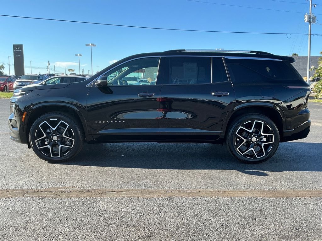 2025 Chevrolet Traverse High Country Certified. Mosaic Black Metallic High Country FWD 8-Speed Automatic 2.5L DOHC GM Certified, 12 Speakers, 1st & 2nd Row All-Weather Floor Liners (LPO), 3rd Row All-Weather Floor Liner (LPO), 3rd row seats: split-bench, 4-Wheel Disc Brakes, 6-Way Power Front Passenger Seat Adjuster, 8-Way Power Driver Seat Adjuster, ABS brakes, Air Conditioning, Alloy wheels, AM/FM radio: SiriusXM with 360L, Apple CarPlay/Android Auto, Auto High-beam Headlights, Auto tilt-away steering wheel, Auto-dimming door mirrors, Automatic temperature control, Bose Premium 12-Speaker Audio System Feature, Brake assist, Bumpers: body-color, Child-Seat-Sensing Airbag, Compass, Delay-off headlights, Driver 4-Way Power Lumbar Seat Adjuster, Driver door bin, Driver vanity mirror, Dual front impact airbags, Dual front side impact airbags, Electronic Stability Control, Emergency communication system: OnStar, Exterior Parking Camera Rear, Floor Liner Package (LPO), Four wheel independent suspension, Front anti-roll bar, Front Bucket Seats, Front Center Armrest, Front dual zone A/C, Front Passenger 4-Way Power Lumbar Seat Adjuster, Front reading lights, Fully automatic headlights, Garage door transmitter, Heated door mirrors, Heated front seats, Heated rear seats, Heated steering wheel, Illuminated entry, Low tire pressure warning, Memory seat, Navigation System, Occupant sensing airbag, Outside temperature display, Overhead airbag, Overhead console, Panic alarm, Passenger door bin, Passenger vanity mirror, Perforated Leather-Appointed Seat Trim, Power door mirrors, Power driver seat, Power Dual Glass Panoramic Sliding Sunroof, Power Liftgate, Power passenger seat, Power steering, Power windows, Preferred Equipment Group 1LZ, Radio data system, Radio: Audio System w/17.7" Diagonal Display, Rain sensing wipers, Rear air conditioning, Rear anti-roll bar, Rear reading lights, Rear window defroster, Rear window wiper, Remote keyless entry, Security system, SiriusXM w/360L Trial Subscription, Speed control, Speed-sensing steering, Spoiler, Steering wheel memory, Steering wheel mounted audio controls, Tachometer, Telescoping steering wheel, Tilt steering wheel, Traction control, Trip computer, Turn signal indicator mirrors, Variably intermittent wipers, Ventilated front seats, Voltmeter, Wheels: 22" High-Gloss Black Aluminum.