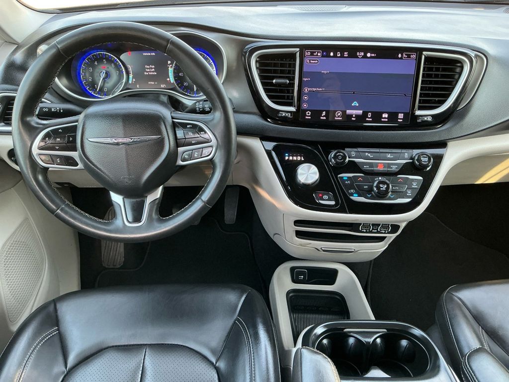 2023 Chrysler Pacifica Touring L Brilliant Black Crystal Pearlcoat Touring L FWD 9-Speed 948TE Automatic 3.6L V6 24V VVT 10.1" Touchscreen Display, 17" x 7.0" Aluminum Wheels, 3.25 Axle Ratio, 3rd row seats: split-bench, 4-Wheel Disc Brakes, 6 Speakers, ABS brakes, Air Conditioning, Alloy wheels, AM/FM radio: SiriusXM, Apple CarPlay, Apple CarPlay/Android Auto, Audio memory, Automatic temperature control, Black Seats, Brake assist, Bumpers: body-color, Caprice Leatherette Bucket Seats, Compass, Delay-off headlights, Disassociated Touchscreen Display, Driver door bin, Driver vanity mirror, Driver's Seat Mounted Armrest, Dual front impact airbags, Dual front side impact airbags, Electronic Stability Control, Four wheel independent suspension, Front anti-roll bar, Front Bucket Seats, Front dual zone A/C, Front Fascia Air Deflectors, Front fog lights, Front reading lights, Fully automatic headlights, Google Android Auto, GPS Antenna Input, Heated door mirrors, Heated front seats, Heated steering wheel, Illuminated entry, Integrated Active Noise Cancellation, Integrated Center Stack Radio, Knee airbag, Low tire pressure warning, Memory seat, Occupant sensing airbag, Outside temperature display, Overhead airbag, Overhead console, Panic alarm, ParkView Rear Back-Up Camera, Passenger door bin, Passenger seat mounted armrest, Passenger vanity mirror, Power door mirrors, Power driver seat, Power Liftgate, Power steering, Power windows, Quick Order Package 27L, Radio data system, Radio: Uconnect 5 w/10.1" Display, Rain sensing wipers, Rear air conditioning, Rear reading lights, Rear window defroster, Rear window wiper, Reclining 3rd row seat, Remote keyless entry, Security system, Speed control, Split folding rear seat, Spoiler, Steering wheel mounted audio controls, Tachometer, Telescoping steering wheel, Tilt steering wheel, Touring Suspension, Traction control, Trip computer, Turn signal indicator mirrors, USB Host Flip, Variably intermittent wipers, Voltmeter.