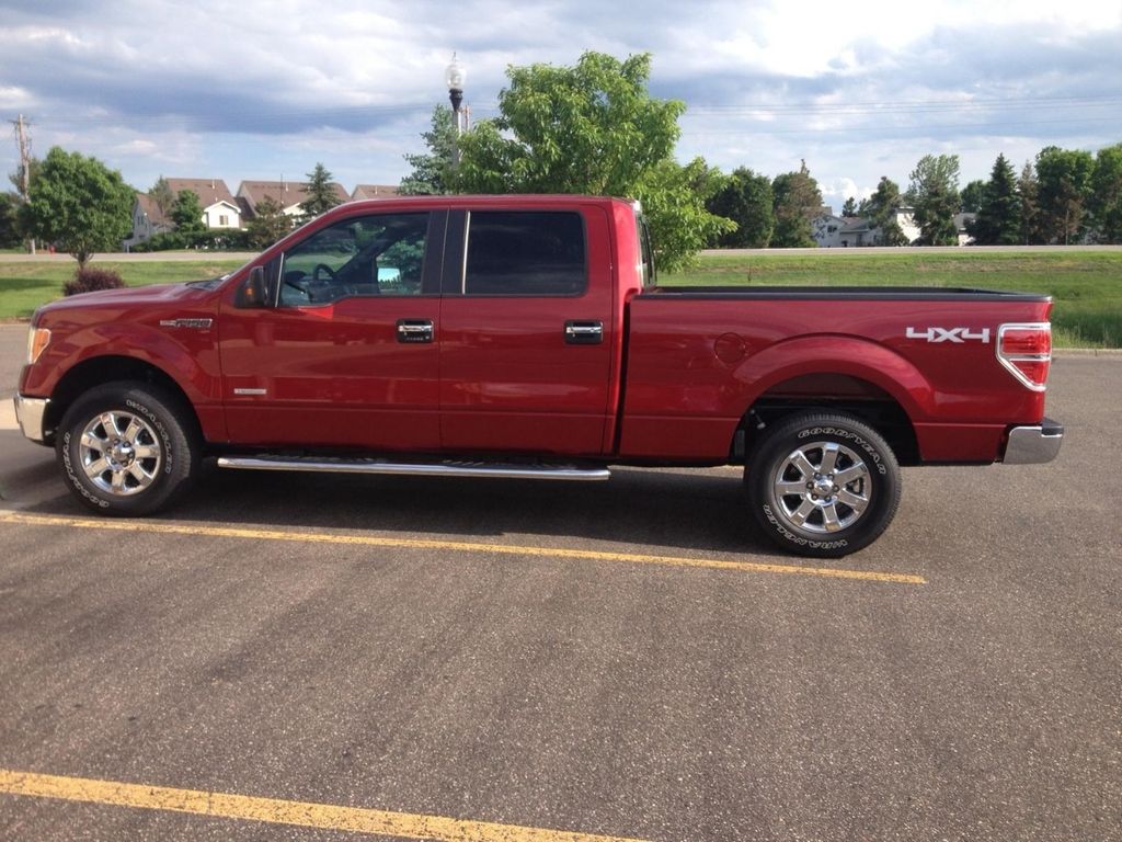 2013 Ford F-150 XLT Ruby Red Metallic XLT 4WD 6-Speed Automatic Electronic 5.0L V8 FFV 4WD, 17" Machined-Aluminum w/Painted Accents Wheels, 18" Chrome-Clad Aluminum Wheels, 20" Chrome-Clad Aluminum Wheels, 4 Speakers, 4-Wheel Disc Brakes, 4.2" LCD Productivity Screen in Instrument Cluster, 4x4 Off-Road Decal, 5" Chrome Running Boards, 6-Way Power Driver Seat, ABS brakes, Air Conditioning, Alloy wheels, AM/FM radio, Auxiliary Transmission Oil Cooler, Bumpers: chrome, CD player, Chrome Door Handles w/Black Bezels, Chrome Exhaust Tip, Cloth 40/20/40 Front Seat, Compass, Delay-off headlights, Driver door bin, Driver vanity mirror, Dual front impact airbags, Dual front side impact airbags, Electronic Stability Control, Equipment Group 302A Luxury, Front & Rear Off-Road Tuned Shock Absorbers, Front anti-roll bar, Front Center Armrest w/Storage, Front fog lights, Front License Plate Bracket, Front reading lights, Front wheel independent suspension, Fully automatic headlights, GVWR: 7,350 lbs Payload Package, Heated Power Side Mirrors, Hill Descent Control, Illuminated entry, Leather-Wrapped Steering Wheel, Low tire pressure warning, Occupant sensing airbag, Off-Road Package, Outside temperature display, Overhead airbag, Overhead console, Panic alarm, Passenger door bin, Passenger vanity mirror, Power Adjustable Pedals, Power door mirrors, Power steering, Power windows, Power-Sliding Rear Window w/Defrost & Privacy Tint, Radio data system, Radio: AM/FM Stereo/Clock/Single-CD, Rear reading lights, Rear step bumper, Rear-View Camera, Remote keyless entry, Reverse Sensing System, Security system, SelectShift Automatic Transmission, Self-Dimming Rear-View Mirror, SiriusXM Satellite Radio, Speed control, Speed-sensing steering, Split folding rear seat, Steering wheel mounted audio controls, SYNC, SYNC MyFord, Tachometer, Tilt steering wheel, Traction control, Trailer Brake Controller, Trailer Tow Package, Upgraded Radiator, Variably intermittent wipers, XLT Chrome Package, XLT Convenience Package, XLT Plus Package, 4WD.