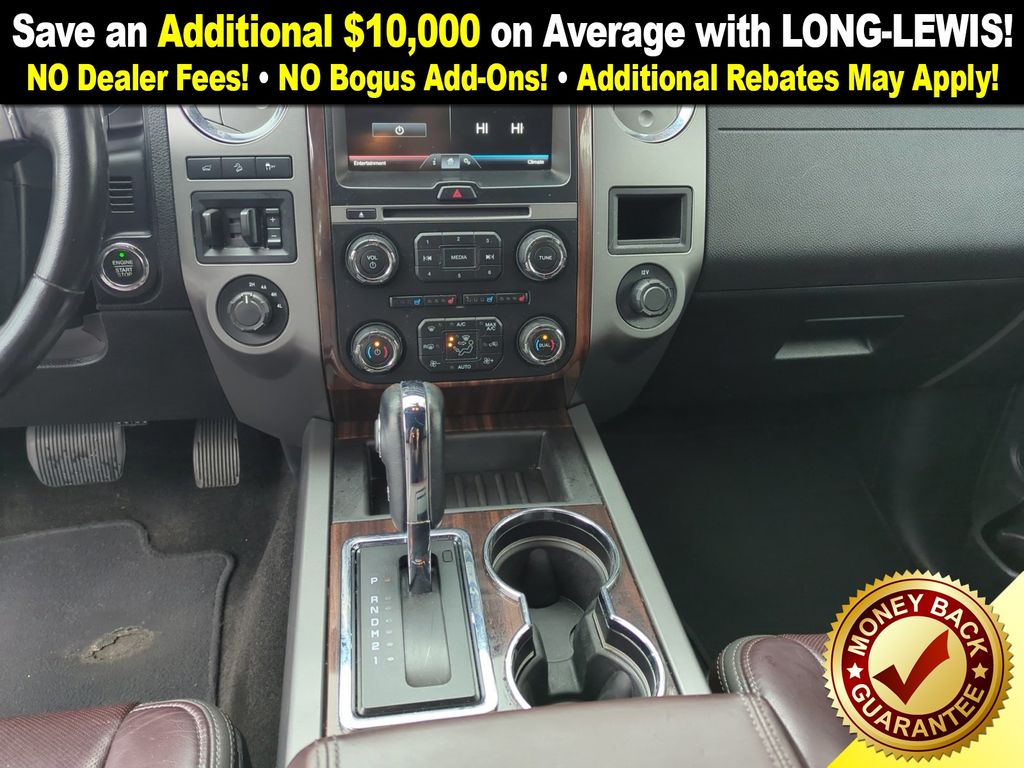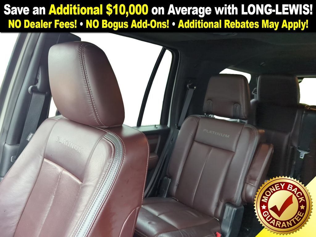 4WD, 12 Speakers, 20" Polished Aluminum Wheels, 2nd Row Bucket Seats, 3.31 Axle Ratio, 3rd row seats: split-bench, 4-Wheel Disc Brakes, ABS brakes, Adjustable pedals, Air Conditioning, Alloy wheels, AM/FM radio: SiriusXM, Auto-dimming door mirrors, Auto-dimming Rear-View mirror, Automatic temperature control, Brake assist, Bumpers: body-color, CD player, Compass, Delay-off headlights, Driver door bin, Driver vanity mirror, Dual front impact airbags, Dual front side impact airbags, Electronic Stability Control, Equipment Group 600A, Exterior Parking Camera Rear, Four wheel independent suspension, Front anti-roll bar, Front Bucket Seats, Front Center Armrest, Front dual zone A/C, Front fog lights, Front reading lights, Fully automatic headlights, Garage door transmitter, GVWR: 7,500 lbs Payload Package, Heated & Cooled Perforated Leather Fr Bucket Seats, Heated door mirrors, Heated front seats, Heated rear seats, Illuminated entry, Leather Shift Knob, Low tire pressure warning, Memory seat, Navigation System, Occupant sensing airbag, Outside temperature display, Overhead airbag, Overhead console, Panic alarm, Passenger door bin, Passenger vanity mirror, Pedal memory, Power Deployable Running Boards, Power door mirrors, Power driver seat, Power Liftgate, Power Moonroof, Power moonroof, Power passenger seat, Power steering, Power windows, Radio data system, Radio: Premium Sony Sound System w/Single-Disc/MP3, Rain sensing wipers, Rear air conditioning, Rear anti-roll bar, Rear audio controls, Rear Load-Leveling Suspension, Rear reading lights, Rear window defroster, Rear window wiper, Remote keyless entry, Roof rack, Security system, Speed control, Speed-sensing steering, Speed-Sensitive Wipers, Split folding rear seat, Steering wheel mounted audio controls, SYNC Communications & Entertainment System, Tachometer, Telescoping steering wheel, Tilt steering wheel, Traction control, Trip computer, Turn signal indicator mirrors, Variably intermittent wipers, Ventilated front seats, Voice-Activated Navigation System w/HD Radio, Voltmeter, 4WD.