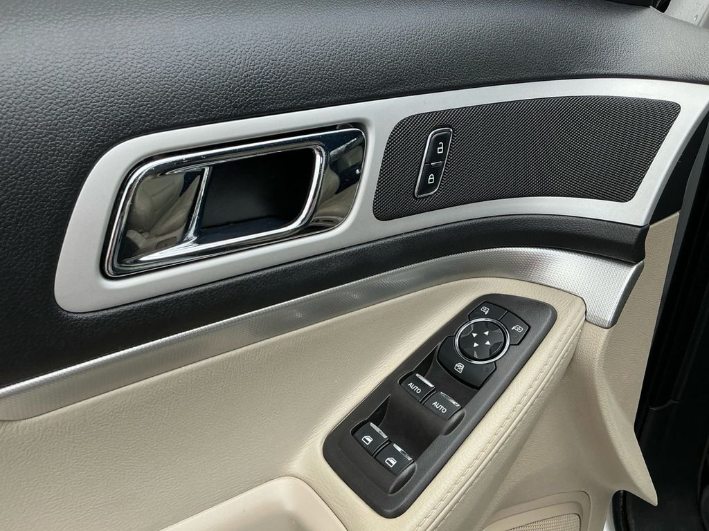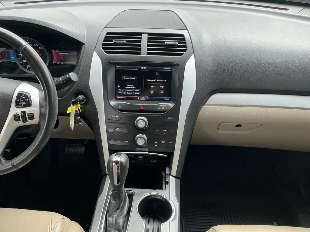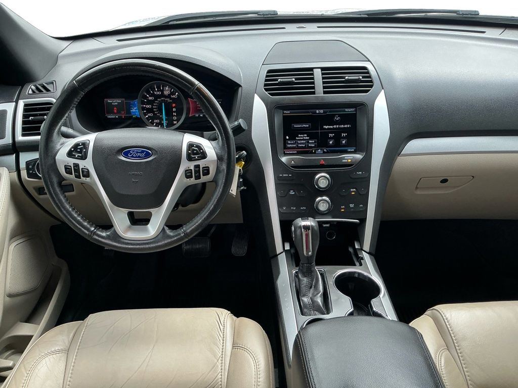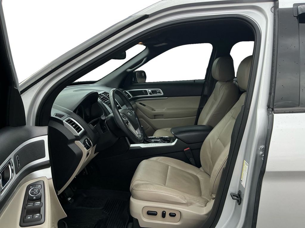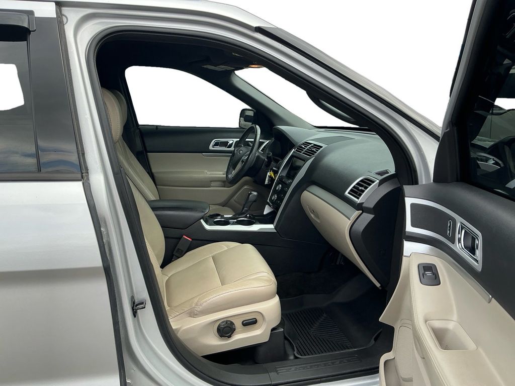 2015 Ford Explorer XLT Ingot Silver XLT FWD 6-Speed Automatic with Select-Shift 3.5L 6-Cylinder SMPI DOHC 18" Painted Aluminum Wheels, 3.39 Axle Ratio, 3rd row seats: split-bench, 4-Wheel Disc Brakes, 6 Speakers, ABS brakes, Air Conditioning, Alloy wheels, AM/FM radio: SiriusXM, Auto-Dimming Rear-View Mirror, Brake assist, Bumpers: body-color, CD player, Comfort Package, Compass, Delay-off headlights, Driver Connect Package, Driver door bin, Driver vanity mirror, Dual front impact airbags, Dual front side impact airbags, Dual Zone Electronic Automatic Temperature (DEATC), Electronic Stability Control, Equipment Group 202B, Four wheel independent suspension, Front anti-roll bar, Front Bucket Seats, Front Center Armrest, Front fog lights, Front reading lights, Fully automatic headlights, Heated door mirrors, Illuminated entry, Knee airbag, Leather-Trimmed Heated Bucket Seats, License Plate Bracket, Low tire pressure warning, Occupant sensing airbag, Outside temperature display, Overhead airbag, Overhead console, Panic alarm, Passenger door bin, Passenger vanity mirror, Power door mirrors, Power driver seat, Power Liftgate, Power passenger seat, Power steering, Power windows, Premium Audio System w/9 Speakers, Radio data system, Radio: AM/FM Stereo w/Single CD/MP3 Capable, Rear air conditioning, Rear anti-roll bar, Rear Parking Sensors, Rear reading lights, Rear window defroster, Rear window wiper, Rear-View Camera, Remote keyless entry, Remote Start System, Roof rack: rails only, Security system, Speed control, Speed-sensing steering, Speed-Sensitive Wipers, Split folding rear seat, Spoiler, Steering wheel mounted audio controls, SYNC w/MyFord, SYNC w/MyFord Touch, Tachometer, Telescoping steering wheel, Tilt steering wheel, Traction control, Trip computer, Turn signal indicator mirrors, Unique Cloth Bucket Seats, Variably intermittent wipers, Voice-Activated Navigation System.