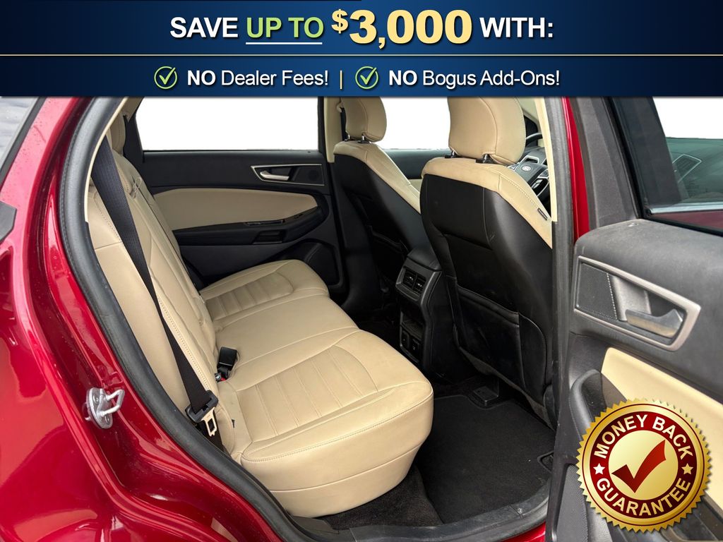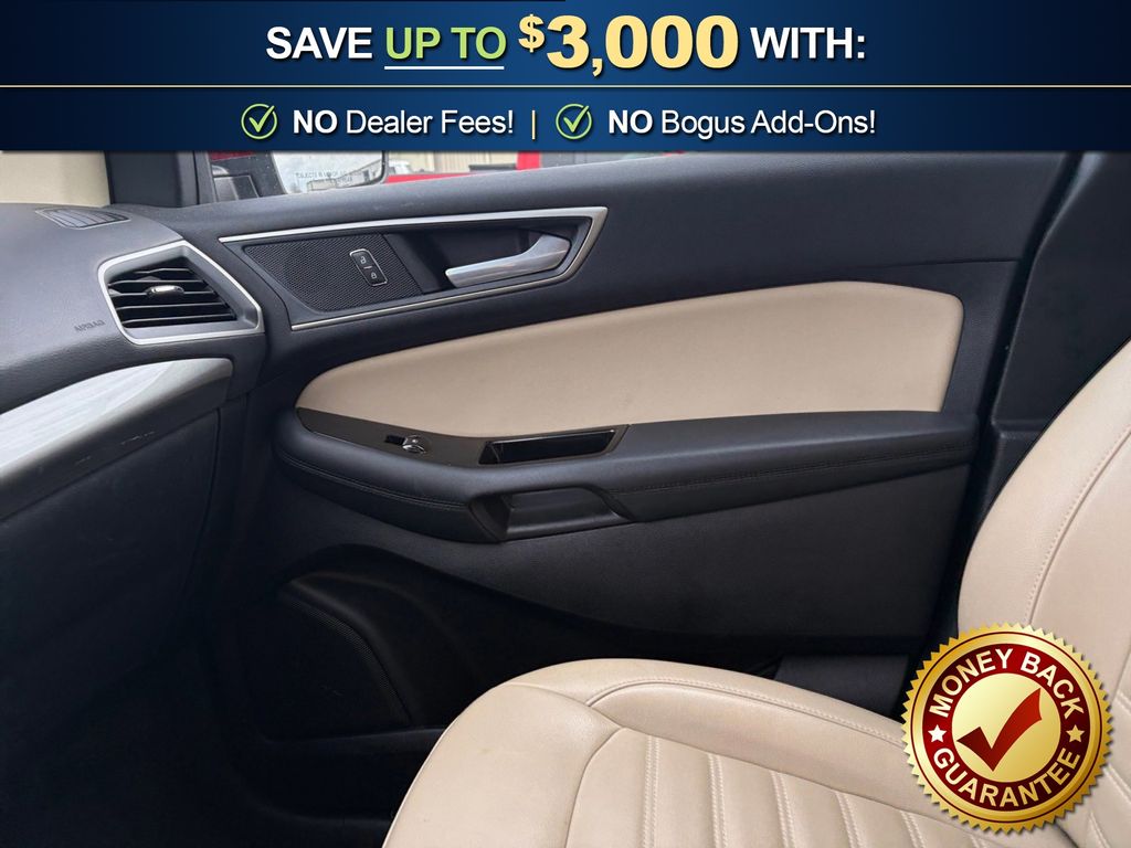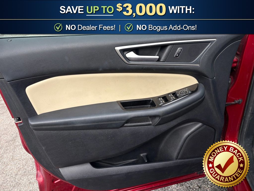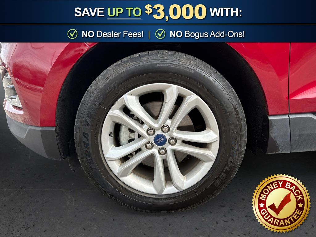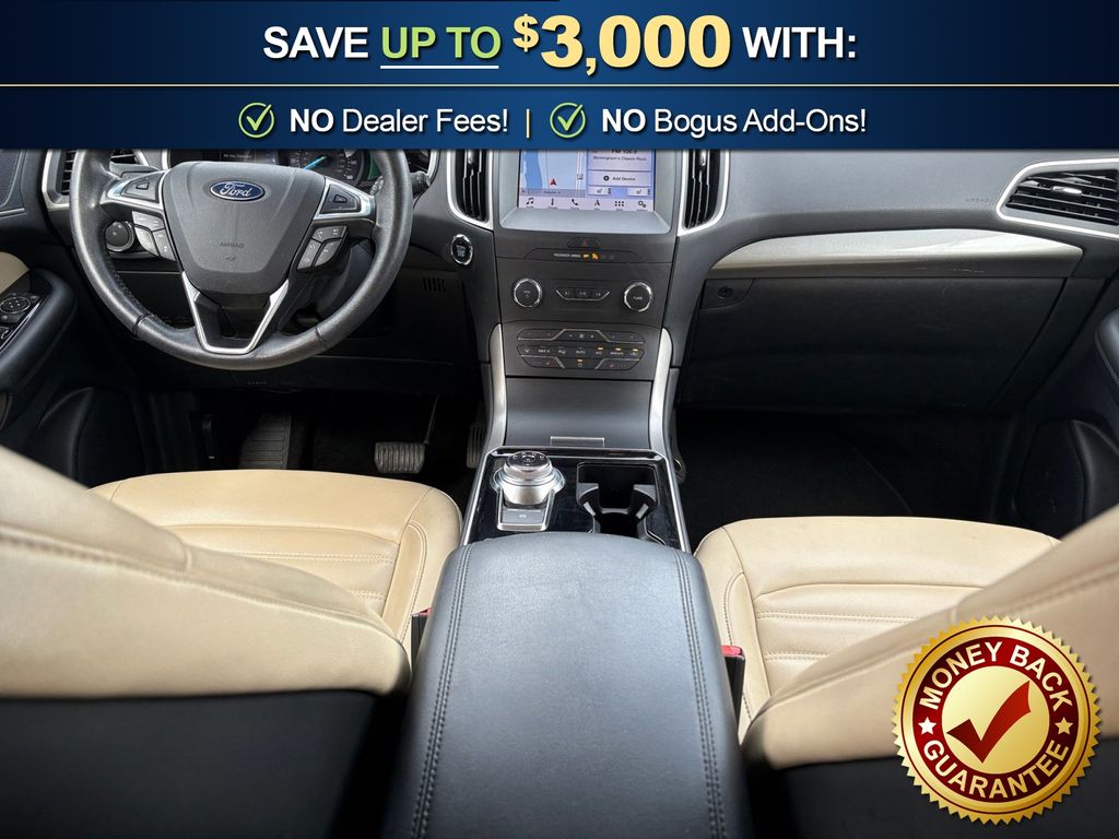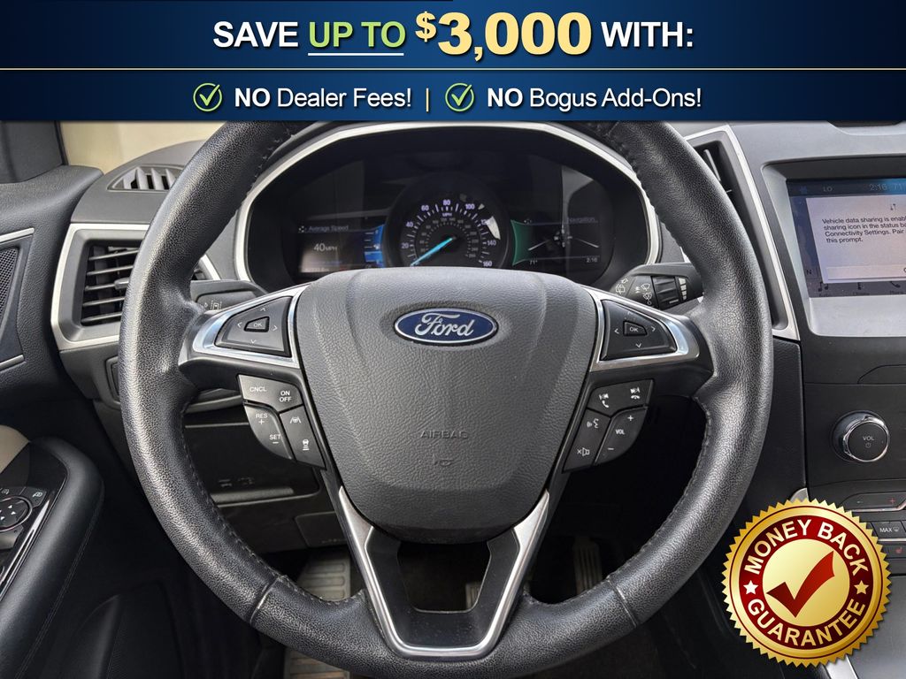 110V/150W AC Power Outlet, 2 Driver Configurable 4.2" Color LCD Displays, 4-Wheel Disc Brakes, 6 Speakers, ABS brakes, ActiveX Seating Material Heated Bucket Seats, Adaptive Cruise Control w/Stop & Go, Air Conditioning, Alloy wheels, AM/FM radio: SiriusXM, AppLink/Apple CarPlay and Android Auto, Auto High-beam Headlights, Auto-dimming Rear-View mirror, Automatic temperature control, Axle Ratio: TBA, Brake assist, Bumpers: body-color, Compass, Convenience Package, Delay-off headlights, Driver door bin, Driver vanity mirror, Dual front impact airbags, Dual front side impact airbags, Electronic Stability Control, Emergency communication system: SYNC 3 911 Assist, Equipment Group 201A, Evasive Steering Assist, Foot-Activated Hands-Free Liftgate, Ford Co-Pilot360 Assist+, Four wheel independent suspension, Front anti-roll bar, Front Bucket Seats, Front Center Armrest w/Storage, Front dual zone A/C, Front fog lights, Front reading lights, Fully automatic headlights, Heated door mirrors, Illuminated entry, Knee airbag, Lane Centering, LED Signature Daytime Running Lamps, Low tire pressure warning, Occupant sensing airbag, Outside temperature display, Overhead airbag, Overhead console, Panic alarm, Passenger door bin, Passenger vanity mirror, Perimeter Alarm, Power door mirrors, Power driver seat, Power passenger seat, Power steering, Power windows, Premium 9 Speaker Audio System, Radio: AM/FM Stereo/MP3 Capable, Rain sensing wipers, Rear anti-roll bar, Rear Parking Sensors, Rear reading lights, Rear seat center armrest, Rear window defroster, Rear window wiper, Remote keyless entry, Remote Start System, Roof rack: rails only, SiriusXM Radio, SiriusXM Traffic & Travel Link, Speed control, Speed-Sensitive Wipers, Split folding rear seat, Spoiler, Steering wheel mounted audio controls, SYNC 3 Communications & Entertainment System, Tachometer, Telescoping steering wheel, Tilt steering wheel, Traction control, Trip computer, Turn signal indicator mirrors, Unique Cloth Bucket Seats, Universal Garage Door Opener (UGDO), Variably intermittent wipers, Voice-Activated Touchscreen Navigation System, Wheels: 18" Sparkle Silver-Painted Aluminum, Wireless Charging Pad. 2019 Ford Edge SEL