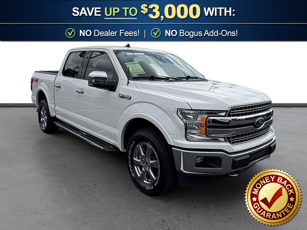 Recent Arrival! Priced below KBB Fair Purchase Price! 4WD, 110V/400W Outlet, 18" Machined-Aluminum Wheels, 4-Wheel Disc Brakes, 7 Speakers, ABS brakes, Adjustable pedals, Air Conditioning, Alloy wheels, AM/FM radio: SiriusXM, Auto High-beam Headlights, Auto-dimming door mirrors, Auto-dimming Rear-View mirror, Automatic temperature control, Brake assist, Bumpers: chrome, Chrome 2-Bar Grille w/4 Minor Bars, Chrome Angular Step Bars, Chrome Door & Tailgate Handles w/Body-Color Bezel, Chrome Skull Caps on Exterior Mirrors, Class IV Trailer Hitch Receiver, Compass, Delay-off headlights, Driver door bin, Driver vanity mirror, Dual front impact airbags, Dual front side impact airbags, Electronic Stability Control, Emergency communication system: SYNC 3 911 Assist, Engine Oil Cooler, Equipment Group 501A Mid, Extended Range 36 Gallon Fuel Tank, Exterior Parking Camera Rear, Front anti-roll bar, Front Center Armrest w/Storage, Front dual zone A/C, Front fog lights, Front License Plate Bracket, Front reading lights, Front wheel independent suspension, Fully automatic headlights, FX4 Off-Road Package, GVWR: 7,050 lbs Payload Package, Heated door mirrors, Heated front seats, Illuminated entry, Integrated Trailer Brake Controller, Lariat Bed Utility Package, Lariat Chrome Appearance Package, Leather-Trimmed 40/20/40 Front Seat, Low tire pressure warning, Memory seat, Occupant sensing airbag, Outside temperature display, Overhead airbag, Overhead console, Panic alarm, Passenger door bin, Passenger vanity mirror, Pedal memory, Power door mirrors, Power driver seat, Power Glass Sideview Mirr w/Body-Color Skull Caps, Power passenger seat, Power steering, Power windows, Pro Trailer Backup Assist, Radio data system, Radio: AM/FM Stereo w/6 Speakers, Rear reading lights, Rear seat center armrest, Rear step bumper, Rear window defroster, Remote keyless entry, Remote Start System w/Remote Tailgate Release, Reverse Sensing System, Security system, Single-Tip Chrome Exhaust, SiriusXM Radio, Speed control, Speed-sensing steering, Split folding rear seat, Steering wheel mounted audio controls, SYNC 3, Tachometer, Tailgate Step w/Tailgate Lift Assist, Telescoping steering wheel, Tilt steering wheel, Tough Bed Spray-In Bedliner, Traction control, Trailer Tow Package, Tray Style Floor Liner, Trip computer, Turn signal indicator mirrors, Twin Panel Moonroof, Upgraded Front Stabilizer Bar, Variably intermittent wipers, Ventilated front seats, Voice-Activated Touchscreen Navigation, Voltmeter, Wheels: 18" Chrome-Like PVD, 4WD.