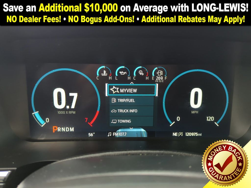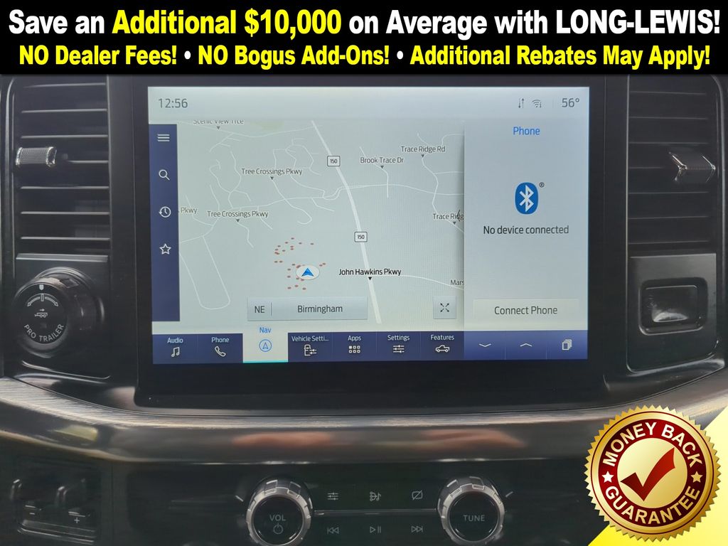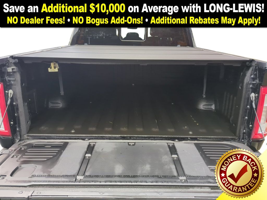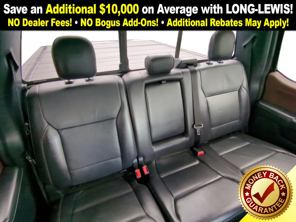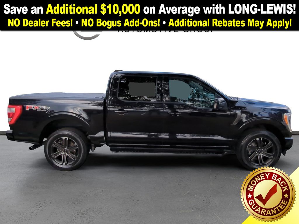 4WD, 18" Machined-Aluminum Wheels, 360 Degree Camera, 4-Wheel Disc Brakes, 7 Speakers, ABS brakes, Accent-Color Angular Step Bars, Adjustable pedals, Air Conditioning, Alloy wheels, AM/FM radio: SiriusXM with 360L, Auto High-beam Headlights, Auto-dimming door mirrors, Auto-dimming Rear-View mirror, Automatic temperature control, Body-Color Front & Rear Bumpers, Box Side Decals, Brake assist, Bumpers: chrome, Chrome Single-Tip Exhaust, Class IV Trailer Hitch Receiver, Compass, Connected Built-In Navigation, Dark 2-Bar & 1 Minor Bar Style Grille, Delay-off headlights, Driver door bin, Driver vanity mirror, Dual front impact airbags, Dual front side impact airbags, Electronic Stability Control, Emergency communication system: SYNC 4 911 Assist, Equipment Group 501A Mid, Evasive Steering Assist, Extended Range 36 Gallon Fuel Tank, Exterior Parking Camera Rear, Ford Co-Pilot360 Assist 2.0, Front anti-roll bar, Front Center Armrest w/Storage, Front dual zone A/C, Front fog lights, Front reading lights, Front wheel independent suspension, Fully automatic headlights, FX4 Off-Road Package, Heated door mirrors, Heated front seats, Illuminated entry, Integrated Trailer Brake Controller, Intelligent Adaptive Cruise Control w/Stop & Go, Intersection Assist, Lariat Sport Appearance Package, Leather-Trimmed 40/20/40 Front Seat, LED Sideview Mirror Spotlights, Low tire pressure warning, Memory seat, Navigation system: Connected Navigation (90-Day Trial), Occupant sensing airbag, Onboard 400W Outlet, Outside temperature display, Overhead airbag, Overhead console, Panic alarm, Passenger door bin, Passenger vanity mirror, Pedal memory, Power door mirrors, Power driver seat, Power passenger seat, Power steering, Power Tailgate, Power windows, Pro Power Onboard - 2KW, Pro Trailer Backup Assist, Radio data system, Radio: AM/FM SiriusXM w/360L, Radio: B&O Sound System by Bang & Olufsen, Rear reading lights, Rear seat center armrest, Rear step bumper, Rear window defroster, Remote keyless entry, Security system, Speed control, Speed Sign Recognition, Speed-sensing steering, Split folding rear seat, Steering wheel mounted audio controls, SYNC 4 w/Enhanced Voice Recognition, Tachometer, Telescoping steering wheel, Tilt steering wheel, Traction control, Trailer Tow Package, Tray Style Floor Liner (47W), Trip computer, Turn signal indicator mirrors, Twin Panel Moonroof, Universal Garage Door Opener, Variably intermittent wipers, Ventilated front seats, Voltmeter, Wheel Well Liner, Wheels: 18" 6-Spoke Machined Aluminum, Wheels: 20" 6-Spoke Dark Alloy Painted Aluminum, 4WD.