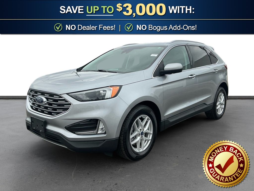 2022 Ford Edge SEL Iconic Silver Metallic SEL AWD 8-Speed Automatic EcoBoost 2.0L I4 GTDi DOHC Turbocharged VCT AWD, 110V/150W AC Power Outlet, 3.80 Axle Ratio, 4-Wheel Disc Brakes, 6 Speakers, ABS brakes, ActiveX Seating Material Heated Bucket Seats, Adaptive Cruise Control w/Stop & Go, Air Conditioning, Alloy wheels, AM/FM radio: SiriusXM with 360L, Auto High-beam Headlights, Auto-dimming Rear-View mirror, Automatic temperature control, Brake assist, Bumpers: body-color, Compass, Connected Built-In Navigation, Convenience Package, Delay-off headlights, Driver door bin, Driver vanity mirror, Dual front impact airbags, Dual front side impact airbags, Electronic Stability Control, Emergency communication system: SYNC 4 911 Assist, Equipment Group 201A, Evasive Steering Assist, Fog Lamps w/Chrome Bezel, Ford Co-Pilot360 Assist+, FordPass Connect, Four wheel independent suspension, Front anti-roll bar, Front Bucket Seats, Front Center Armrest w/Storage, Front dual zone A/C, Front reading lights, Fully automatic headlights, Heated door mirrors, Heated front seats, Heated Steering Wheel, Illuminated entry, Knee airbag, Lane Centering, Low tire pressure warning, Occupant sensing airbag, Outside temperature display, Overhead airbag, Overhead console, Panic alarm, Passenger door bin, Passenger vanity mirror, Perimeter Alarm, Power door mirrors, Power driver seat, Power Liftgate, Power passenger seat, Power steering, Power windows, Radio: AM/FM Stereo/MP3 Capable, Rear anti-roll bar, Rear Parking Sensors, Rear reading lights, Rear seat center armrest, Rear window defroster, Rear window wiper, Remote keyless entry, Remote Start System, SecuriCode Keyless Entry Keypad, Silver Roof-Rack Side Rails, SiriusXM w/360L, Speed control, Speed-Sensitive Wipers, Split folding rear seat, Spoiler, Steering wheel mounted audio controls, SYNC 4A w/Enhanced Voice Recognition, Tachometer, Telescoping steering wheel, Tilt steering wheel, Traction control, Trip computer, Universal Garage Door Opener (UGDO), Variably intermittent wipers, Wheels: 18" Sparkle Silver-Painted Aluminum, Wireless Charging Pad, AWD.