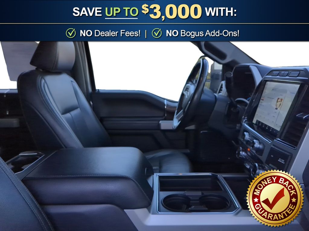 4WD, 10 Speakers, 397 Amp Alternator, 4-Wheel Disc Brakes, 6" Ebony Black Angular Running Boards, ABS brakes, Adjustable pedals, Air Conditioning, All-Weather Floor Mats, Alloy wheels, AM/FM radio: SiriusXM with 360L, Ambient Lighting - Fixed Color, Auto High-beam Headlights, Auto-dimming Rear-View mirror, Automatic temperature control, Black Appearance Package, Black Molded Hood Deflector (Pre-Installed), Black Out Surrounds LED Only Headlamps, Body-Color Exterior Mirrors, Body-Color Front & Rear Bumpers, Brake assist, Bumpers: chrome, Chrome Exhaust Tip, Compass, Delay-off headlights, Driver door bin, Driver vanity mirror, Dual 78 AH Battery, Dual front impact airbags, Dual front side impact airbags, Easy Entry®/Exit Memory Driver's Seat Feature, Ebony Black Painted Front Grille Bars, Ebony Black Painted Mirror Caps, Electronic Stability Control, Emergency communication system: SYNC 4 911 Assist, Exterior Parking Camera Rear, Flow-Through Console, Front anti-roll bar, Front Bucket Seats, Front Center Armrest, Front dual zone A/C, Front fog lights, Front Leather Seating Surfaces 40/Console/40, Front reading lights, Fully automatic headlights, FX4 Off-Road Package, GVWR: 10,000 lb Payload Package, Heated door mirrors, Hill Descent Control, Illuminated entry, Intelligent Access w/Push-Button Start, Lariat Sport Appearance Package, Lariat Ultimate Package, Leather steering wheel, LED Box Lighting, Low tire pressure warning, Memory Power-Adjustable Pedals, Navigation system: Connected Navigation, Off-Road Specifically Tuned Shock Absorbers, Order Code 608A, Outside temperature display, Overhead airbag, Overhead console, Painted Body-Color Grille, Panic alarm, Passenger door bin, Passenger vanity mirror, Platform Running Boards, Power door mirrors, Power driver seat, Power Heated/Ventilated Driver Seat w/Memory, Power Heated/Ventilated Passenger Seat, Power passenger seat, Power steering, Power Telescoping/Tilt Steering Wheel/Column, Power windows, PowerScope Trailer Tow Mirrors w/Heat, PowerScope Trailer Tow Mirrors w/Memory, Quad Beam LED Headlamps & LED Taillamps, Radio data system, Radio: B&O Sound System by Bang & Olufsen, Rear Parking Sensors, Rear reading lights, Rear seat center armrest, Rear step bumper, Rear Wheel Well Liners (Pre-Installed), Rear window defroster, Remote keyless entry, Remote Start System, Remote Tailgate Release, Security system, SiriusXM Radio w/360L, Speed control, Split folding rear seat, Steering wheel mounted audio controls, SYNC 4 w/Enhanced Voice Recognition, Tachometer, Tailgate Step & Handle, Telescoping steering wheel, Tilt steering wheel, Tough Bed Spray-In Bedliner, Traction control, Trip computer, Turn signal indicator mirrors, Twin Panel Power Moonroof, Unique FX4 Off-Road Box Decal, Unique Sport 4x4 Box Decal, Universal Garage Door Opener (UGDO), Upfitter Switches (6), Variably intermittent wipers, Vehicle Safe by Console Vault (Pre-Installed), Wheels: 18" Bright Machined Cast Aluminum, Wheels: 20" High-Gloss Black Premium Painted Alum, 4WD.