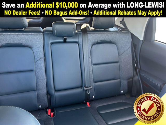 I got a 2025 Big Bend with the black diamond off road package. The steel modular front and rear in combination with bush guard gives this year model. A very aggressive off road look. With the ability to easily mount accessories and power them with the factory installed auxiliary switches. Hitch receiver seamlessly mounted into the rear steel bumper flanked by some very chunky recovery points. The upgraded aluminum rims wrapped with Continental all-terrains. It make this the most capable bronco sport yet. The interior of the 2025 has been updated with a new 13 inch touchscreen with Android Auto and apple car play. The lines of the dash flow elegantly from the new infotainment screen to the new all digital 12 inch gauge chaster. Toggling through the different modes on the gauge chaster is very intuitive, and all the displays are laid out very cleanly. Moving from gauge chaster the center storage cubby just below the infotainment screen there is a wireless charger and USB/ USB-c ports. The passenger side of that same cubby gets a handle and a matching one on the roof just in case the driver bucks a little too much. The passenger also gets a mesh storage area. That leads us to the fact this vehicle has tons of storage options all throughout. You have pockets on the sides of the front two seat big enough for the latest new phones. Very generous door storage on all four doors plus huge glove box and center console with 12 volt outlet. The back side of the center console has air vents and another 12 volt outlet plus a 110 outlet. Now getting to the cargo area it is massive for a crossover SUV. With off road package you get a cargo management system and a very nice rubber mat. Under that there is a full size tire plus scissor jack and funnel to use with the capless filler system. On the liftgate there isa pair of very bright led lights turned on with a switch in the cargo area. This feature packed vehicle has tons awesome gadgets and hidden a little homages I spend all day just talk that. At the end of the day it is car. So how does it drive. It is wonderful, the steering and pedal response is beautiful. Rides very smooth and little to no road noise going down the highway. The active cruise control and co-pilot 360 have been very handy. The car literally drives itself most of the time. There is not enough good things I could same about this car. I love it and you pick one too. You will see what I mean. - 5.0