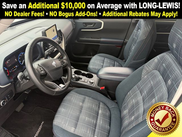 I got a 2025 Big Bend with the black diamond off road package. The steel modular front and rear in combination with bush guard gives this year model. A very aggressive off road look. With the ability to easily mount accessories and power them with the factory installed auxiliary switches. Hitch receiver seamlessly mounted into the rear steel bumper flanked by some very chunky recovery points. The upgraded aluminum rims wrapped with Continental all-terrains. It make this the most capable bronco sport yet. The interior of the 2025 has been updated with a new 13 inch touchscreen with Android Auto and apple car play. The lines of the dash flow elegantly from the new infotainment screen to the new all digital 12 inch gauge chaster. Toggling through the different modes on the gauge chaster is very intuitive, and all the displays are laid out very cleanly. Moving from gauge chaster the center storage cubby just below the infotainment screen there is a wireless charger and USB/ USB-c ports. The passenger side of that same cubby gets a handle and a matching one on the roof just in case the driver bucks a little too much. The passenger also gets a mesh storage area. That leads us to the fact this vehicle has tons of storage options all throughout. You have pockets on the sides of the front two seat big enough for the latest new phones. Very generous door storage on all four doors plus huge glove box and center console with 12 volt outlet. The back side of the center console has air vents and another 12 volt outlet plus a 110 outlet. Now getting to the cargo area it is massive for a crossover SUV. With off road package you get a cargo management system and a very nice rubber mat. Under that there is a full size tire plus scissor jack and funnel to use with the capless filler system. On the liftgate there isa pair of very bright led lights turned on with a switch in the cargo area. This feature packed vehicle has tons awesome gadgets and hidden a little homages I spend all day just talk that. At the end of the day it is car. So how does it drive. It is wonderful, the steering and pedal response is beautiful. Rides very smooth and little to no road noise going down the highway. The active cruise control and co-pilot 360 have been very handy. The car literally drives itself most of the time. There is not enough good things I could same about this car. I love it and you pick one too. You will see what I mean. - 5.0