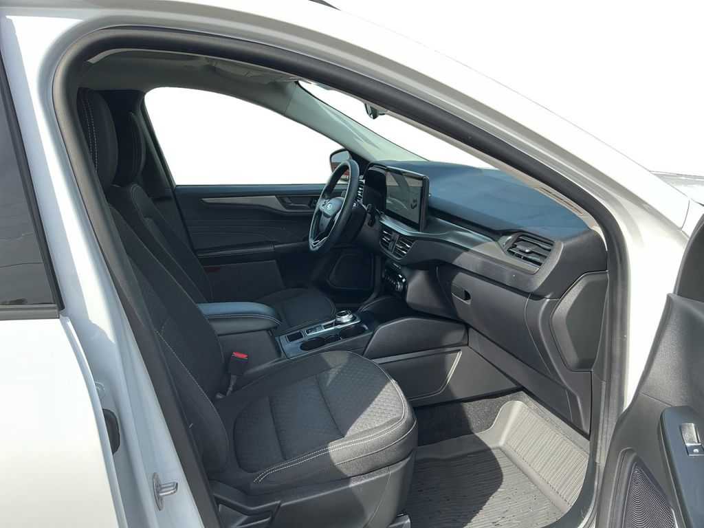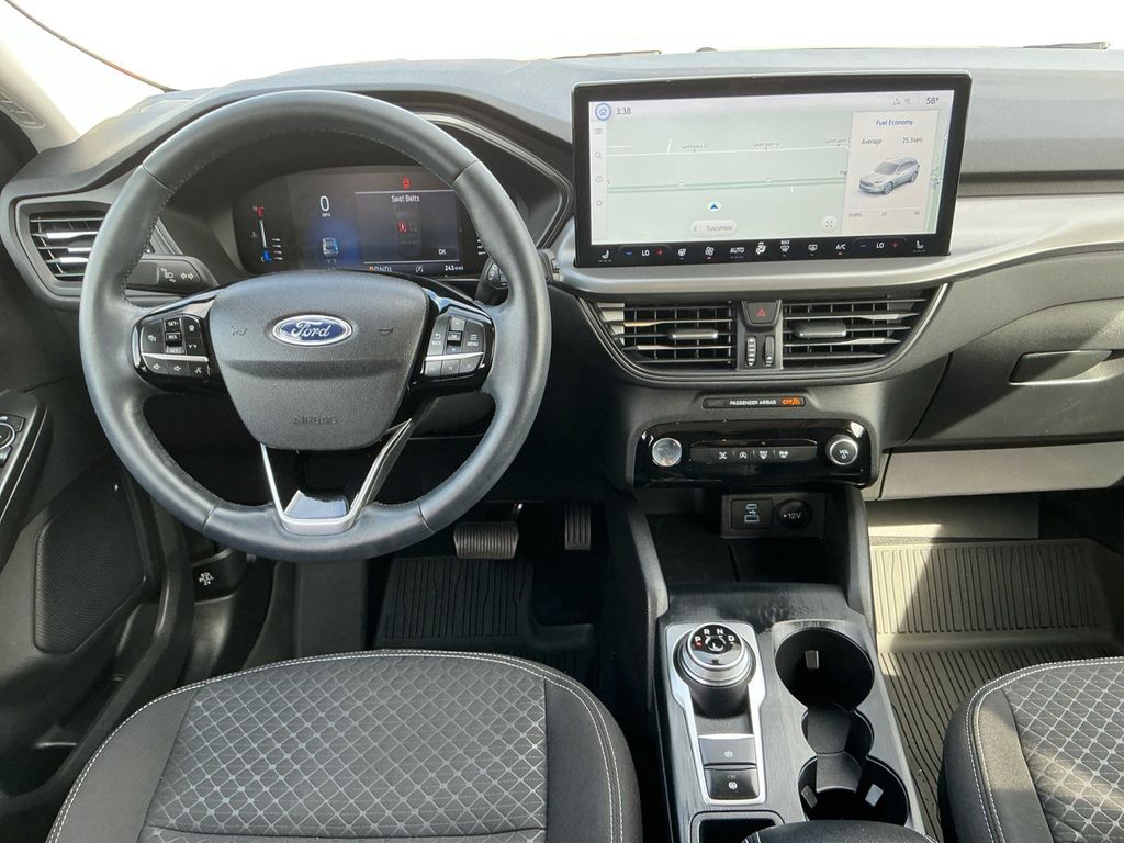 2023 Ford Escape Active Oxford White Active FWD 8-Speed Automatic 1.5L EcoBoost 3.81 Axle Ratio, 4-Wheel Disc Brakes, 6 Speakers, ABS brakes, Air Conditioning, Alloy wheels, AM/FM radio: SiriusXM, AM/FM Stereo, Auto High-beam Headlights, Automatic temperature control, Black Roof-Rack Side Rails, Brake assist, Bumpers: body-color, Cold Weather Package, Compass, Connected Built-In Navigation, Delay-off headlights, Driver door bin, Driver vanity mirror, Dual front impact airbags, Dual front side impact airbags, Electronic Stability Control, Emergency communication system: SYNC 4 911 Assist, Equipment Group 200A, Exterior Parking Camera Rear, Ford Co-Pilot360 Assist+, FordPass Connect, Four wheel independent suspension, Front & Rear Floor Liners w/o Carpet Mats, Front anti-roll bar, Front Bucket Seats, Front Center Armrest, Front dual zone A/C, Front License Plate Bracket, Front reading lights, Fully automatic headlights, Heated Front Row Seats, Heated Sideview Mirrors, Heated Steering Wheel, Illuminated entry, Intelligent Adaptive Cruise Control w/Stop-and-Go, Knee airbag, Low tire pressure warning, Occupant sensing airbag, Outside temperature display, Overhead airbag, Overhead console, Panic alarm, Panoramic Vista Roof, Passenger door bin, Passenger vanity mirror, Power door mirrors, Power driver seat, Power Liftgate, Power steering, Power windows, Radio data system, Rear anti-roll bar, Rear Parking Sensor, Rear reading lights, Rear seat center armrest, Rear window defroster, Rear window wiper, Rear-View Camera, Remote keyless entry, Remote Starter System, Speed control, Speed Sign Recognition, Speed-sensing steering, Speed-Sensitive Wipers, Split folding rear seat, Spoiler, Steering wheel mounted audio controls, SYNC 4, SYNC 4 w/Enhanced Voice Recognition, Tachometer, Tech Pack #1, Telescoping steering wheel, Tilt steering wheel, Traction control, Trip computer, Unique Cloth Front Bucket Seats, Variably intermittent wipers, Wheels: 17" Shadow Silver-Painted Aluminum.