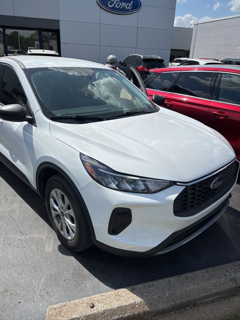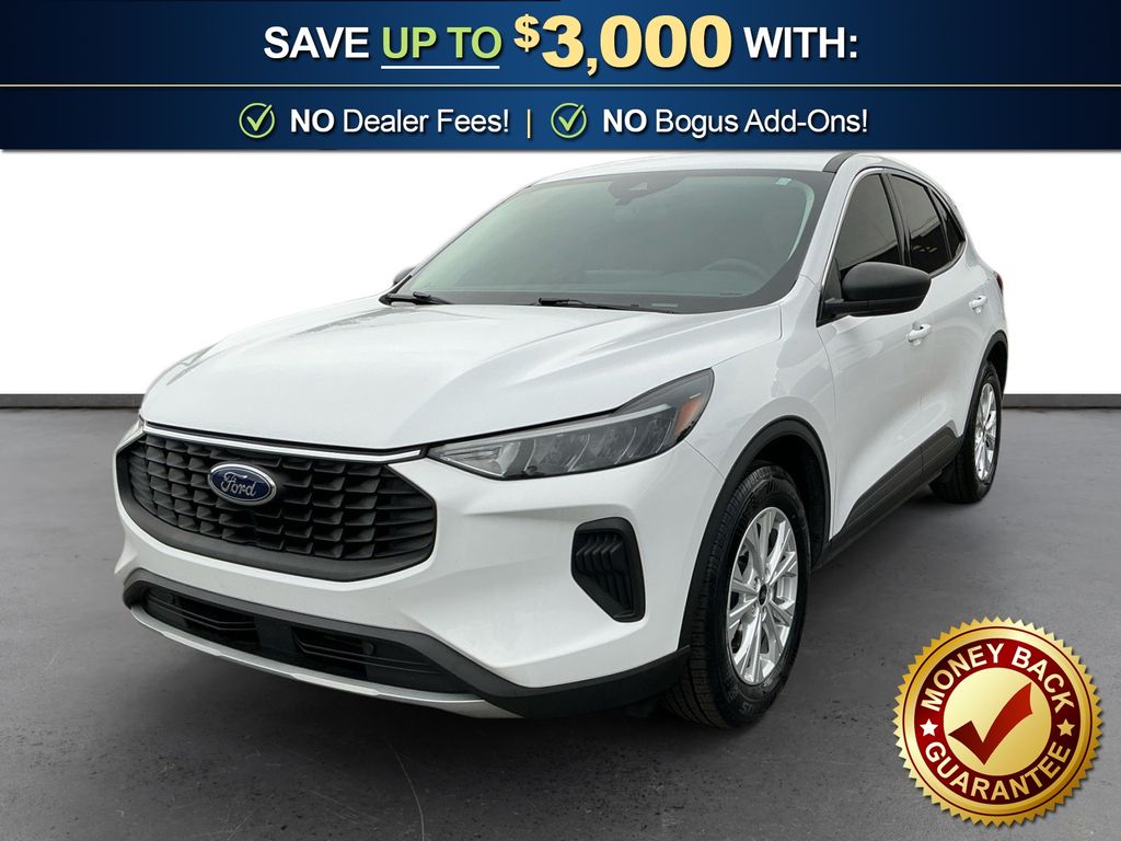 2023 Ford Escape Active Oxford White Active FWD 8-Speed Automatic 1.5L EcoBoost 3.81 Axle Ratio, 4-Wheel Disc Brakes, 6 Speakers, ABS brakes, Air Conditioning, Alloy wheels, AM/FM radio: SiriusXM, AM/FM Stereo, Auto High-beam Headlights, Automatic temperature control, Brake assist, Bumpers: body-color, Cold Weather Package, Compass, Connected Built-In Navigation, Delay-off headlights, Driver door bin, Driver vanity mirror, Dual front impact airbags, Dual front side impact airbags, Electronic Stability Control, Emergency communication system: SYNC 4 911 Assist, Equipment Group 200A, Exterior Parking Camera Rear, Ford Co-Pilot360 Assist+, FordPass Connect, Four wheel independent suspension, Front anti-roll bar, Front Bucket Seats, Front Center Armrest, Front dual zone A/C, Front License Plate Bracket, Front reading lights, Fully automatic headlights, Heated Front Row Seats, Heated Sideview Mirrors, Heated Steering Wheel, Illuminated entry, Intelligent Adaptive Cruise Control w/Stop-and-Go, Knee airbag, Low tire pressure warning, Occupant sensing airbag, Outside temperature display, Overhead airbag, Overhead console, Panic alarm, Passenger door bin, Passenger vanity mirror, Power door mirrors, Power driver seat, Power Liftgate, Power steering, Power windows, Radio data system, Rear anti-roll bar, Rear Parking Sensor, Rear reading lights, Rear seat center armrest, Rear window defroster, Rear window wiper, Rear-View Camera, Remote keyless entry, Remote Starter System, Speed control, Speed Sign Recognition, Speed-sensing steering, Speed-Sensitive Wipers, Split folding rear seat, Spoiler, Steering wheel mounted audio controls, SYNC 4, SYNC 4 w/Enhanced Voice Recognition, Tachometer, Tech Pack #1, Telescoping steering wheel, Tilt steering wheel, Traction control, Trip computer, Unique Cloth Front Bucket Seats, Variably intermittent wipers, Wheels: 17" Shadow Silver-Painted Aluminum.