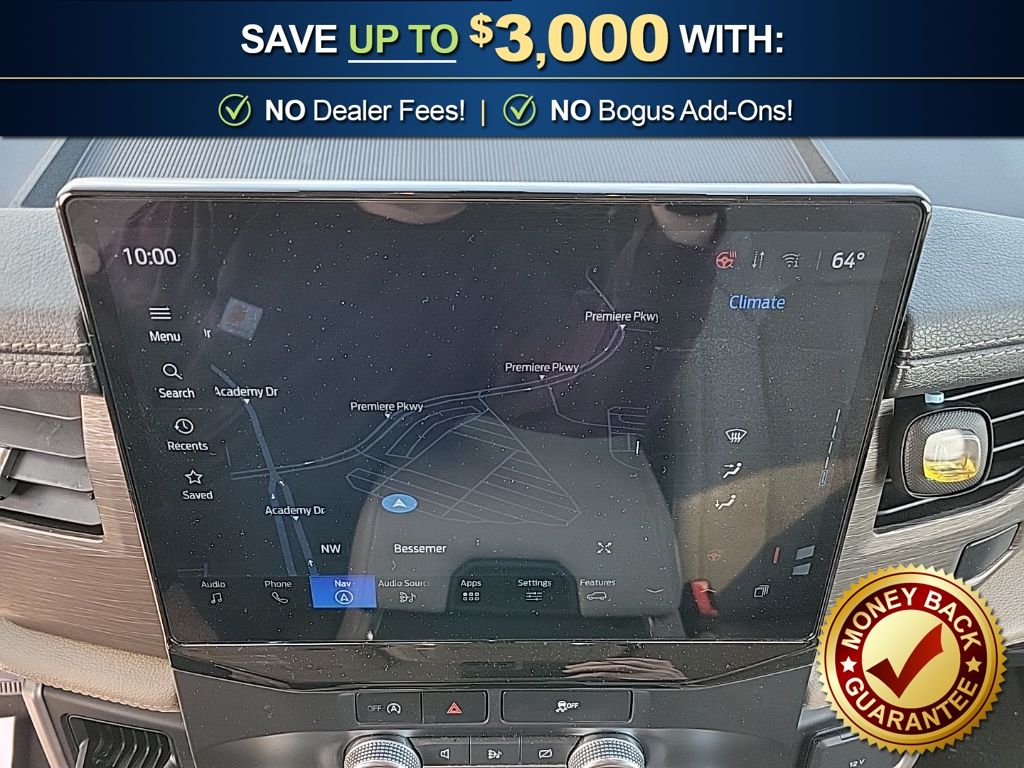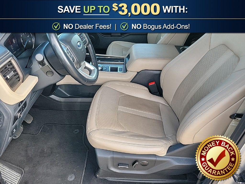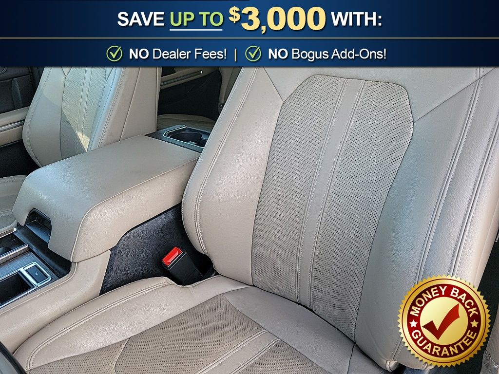 12 Speakers, 3.31 Axle Ratio, 3rd row seats: split-bench, 4-Wheel Disc Brakes, ABS brakes, Adjustable pedals, Air Conditioning, Alloy wheels, AM/FM radio, Auto High-beam Headlights, Auto-dimming door mirrors, Auto-dimming Rear-View mirror, Automatic temperature control, Brake assist, Bumpers: body-color, Compass, Delay-off headlights, Driver door bin, Driver vanity mirror, Dual front impact airbags, Dual front side impact airbags, Electronic Stability Control, Emergency communication system: SYNC 4 911 Assist, Equipment Group 301A Mid Package, Exterior Parking Camera Rear, Four wheel independent suspension, Front anti-roll bar, Front Bucket Seats, Front Center Armrest, Front dual zone A/C, Front fog lights, Front License Plate Bracket, Front reading lights, Fully automatic headlights, Garage door transmitter, Heated & Ventilated Leather Front Captain's Chairs, Heated door mirrors, Heated front seats, Heated rear seats, Heated steering wheel, Illuminated entry, Leather steering wheel, Low tire pressure warning, Memory seat, Navigation System, Occupant sensing airbag, Outside temperature display, Overhead airbag, Overhead console, Panic alarm, Passenger door bin, Passenger vanity mirror, Pedal memory, Power door mirrors, Power driver seat, Power Liftgate, Power moonroof, Power passenger seat, Power steering, Power windows, Radio data system, Radio: B&O Sound System by Bang & Olufsen, Rain sensing wipers, Rear air conditioning, Rear anti-roll bar, Rear reading lights, Rear window defroster, Rear window wiper, Reclining 3rd row seat, Remote keyless entry, Second Row Power Windows Removal, Security system, SiriusXM w/360L, Speed control, Speed-sensing steering, Speed-Sensitive Wipers, Split folding rear seat, Spoiler, Steering wheel memory, Steering wheel mounted audio controls, SYNC 4 w/Enhanced Voice Recognition, Tachometer, Telescoping steering wheel, Tilt steering wheel, Traction control, Trip computer, Turn signal indicator mirrors, Variably intermittent wipers, Ventilated front seats, Voltmeter, Wheels: 20" Bright Machined Aluminum.