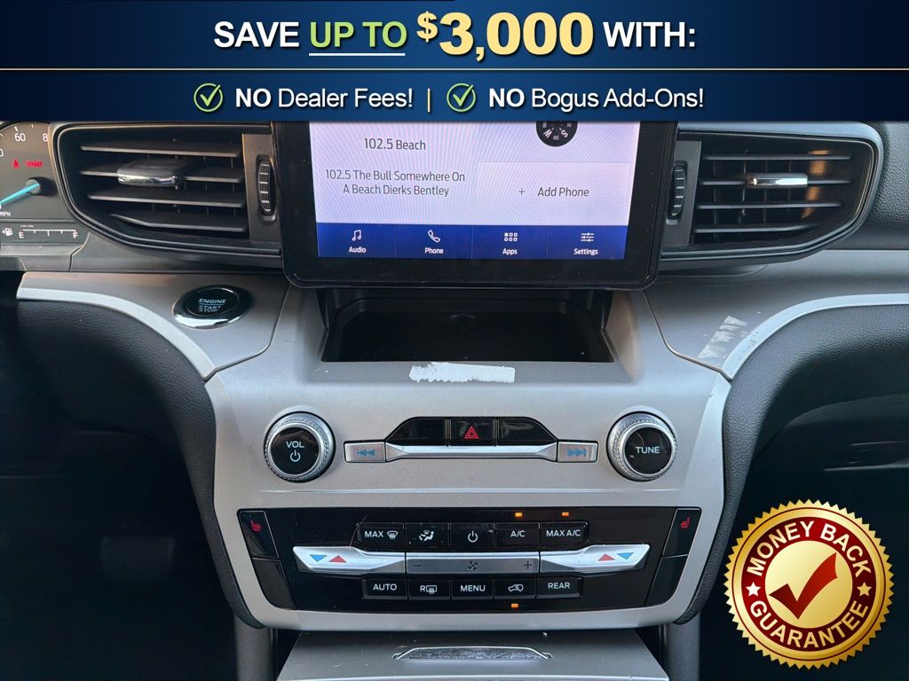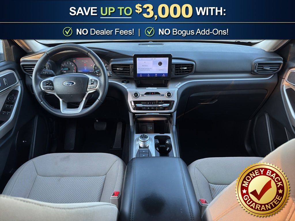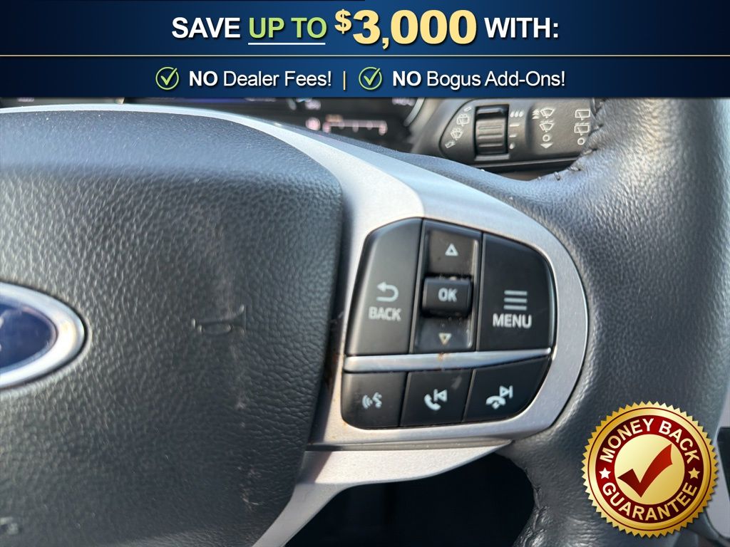 4WD, 2nd Row 35/30/35 Bench w/E-Z Entry & Armrest, 3.58 Non-Limited-Slip Rear Axle Ratio, 3rd row seats: bench, 4-Wheel Disc Brakes, 4G LTE Wi-Fi Hotspot Credit, 6 Speakers, ABS brakes, Air Conditioning, Alloy wheels, AM/FM radio: SiriusXM, AM/FM Stereo, Auto High-beam Headlights, Auto Start-Stop Removal (DISC), Automatic temperature control, Brake assist, Bumpers: body-color, Compass, Delay-off headlights, Driver door bin, Driver vanity mirror, Dual front impact airbags, Dual front side impact airbags, Electronic Stability Control, Emergency communication system: SYNC 3 911 Assist, Equipment Group 200A, Exterior Parking Camera Rear, FordPass Connect, Four wheel independent suspension, Front anti-roll bar, Front Bucket Seats, Front Center Armrest, Front dual zone A/C, Front reading lights, Fully automatic headlights, Heated door mirrors, Heated front seats, Heated Unique Cloth Captain's Chairs, Illuminated entry, Knee airbag, Leather steering wheel, Low tire pressure warning, Occupant sensing airbag, Outside temperature display, Overhead airbag, Overhead console, Panic alarm, Passenger door bin, Passenger vanity mirror, Power door mirrors, Power driver seat, Power Liftgate, Power passenger seat, Power steering, Power windows, Rear air conditioning, Rear anti-roll bar, Rear Auxiliary Controls Credit, Rear reading lights, Rear window defroster, Rear window wiper, Remote keyless entry, Roof rack: rails only, Security system, Speed control, Speed-sensing steering, Speed-Sensitive Wipers, Split folding rear seat, Spoiler, Steering wheel mounted audio controls, SYNC 3 Communications & Entertainment System, SYNC 3/Apple CarPlay/Android Auto, Tachometer, Telescoping steering wheel, Tilt steering wheel, Traction control, Trip computer, Variably intermittent wipers, Wheels: 18" 5-Spoke Silver-Painted Aluminum, 4WD. 2023 Ford Explorer XLT