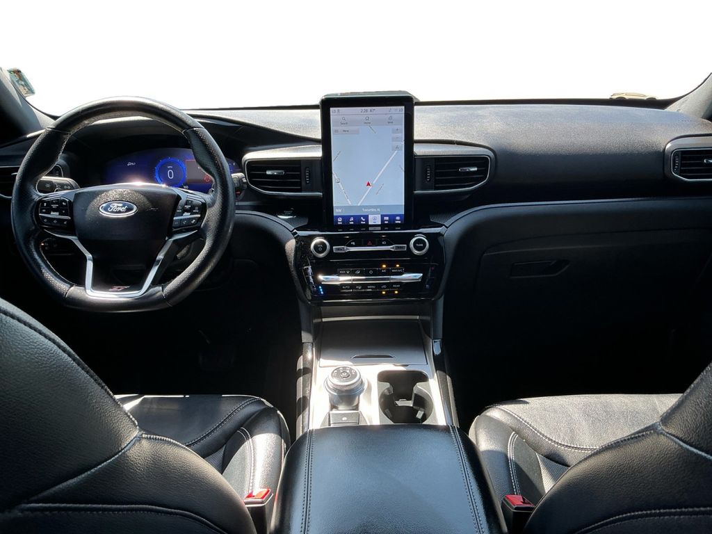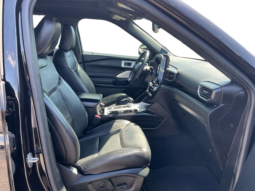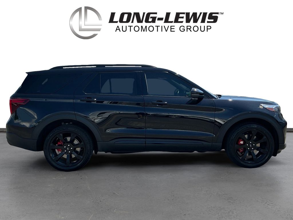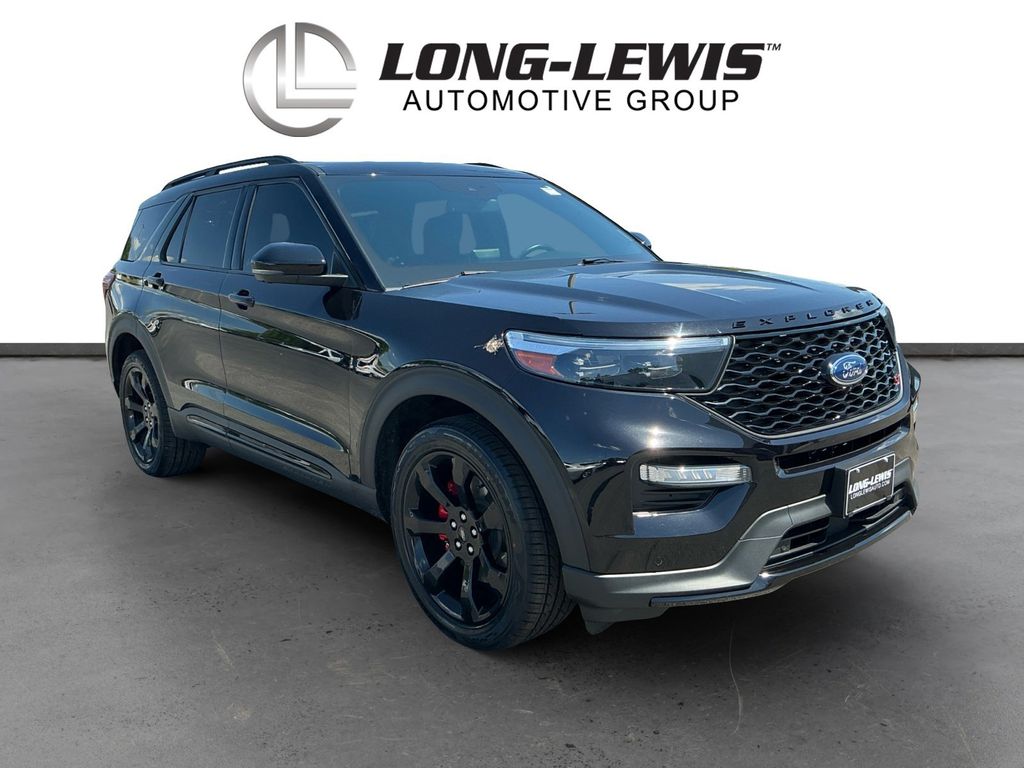 2023 Ford Explorer ST Agate Black Metallic ST 4WD 10-Speed Automatic 3.0L EcoBoost V6 4WD, 10.1" LCD Capacitive Portrait Touchscreen, 110V/150W AC Power Outlet, 2 Additional Speakers, 20" Machined Aluminum w/Painted Pockets Wheels, 3.58 Non-Limited-Slip Rear Axle Ratio, 360-Degree Camera w/Split View, 3rd row seats: bench, 4-Wheel Disc Brakes, 4G LTE Wi-Fi Hotspot Credit, 6 Speakers, ABS brakes, Air Conditioning, Alloy wheels, AM/FM radio: SiriusXM, AM/FM Stereo, Auto High-beam Headlights, Auto-Dimming Rearview Mirror (Interior), Automatic temperature control, Brake assist, Bumpers: body-color, Compass, Delay-off headlights, Driver door bin, Driver vanity mirror, Dual front impact airbags, Dual front side impact airbags, Electronic Stability Control, Emergency communication system: SYNC 3 911 Assist, Equipment Group 401A, Evasive Steering Assist, Exterior Parking Camera Rear, Ford Co-Pilot360 Assist+, FordPass Connect, Four wheel independent suspension, Front anti-roll bar, Front Bucket Seats, Front Center Armrest, Front dual zone A/C, Front fog lights, Front License Plate Bracket, Front Parking Sensors, Front Rain-Sensing Wipers, Front reading lights, Fully automatic headlights, Heated door mirrors, Heated front seats, Heated steering wheel, Illuminated entry, Intelligent Adaptive Cruise Control, Knee airbag, Leather Heated/Ventilated Sprt Captain's Chairs, Leather Htd/Ventilated Sport Captain's Chairs, Leather steering wheel, Low tire pressure warning, Memory Driver's Seat, Memory seat, Occupant sensing airbag, Outside temperature display, Overhead airbag, Overhead console, Panic alarm, Passenger door bin, Passenger vanity mirror, Performance Front & Rear Brakes, Power door mirrors, Power driver seat, Power Liftgate, Power passenger seat, Power steering, Power Tilt/Telescoping Steering Column, Power windows, Radio: B&O Sound System by Bang & Olufsen, Rear air conditioning, Rear anti-roll bar, Rear reading lights, Rear window defroster, Rear window wiper, Remote keyless entry, Reverse Brake Assist, Second Row Heated Seats, Security system, SelectShift Capability w/Paddle Shifters, Sideview Mirrors w/Gloss Black Caps, Speed control, Speed Sign Recognition, Speed-sensing steering, Speed-Sensitive Wipers, Split folding rear seat, Spoiler, Sport steering wheel, ST High Package, ST Street Pack, Steering wheel mounted audio controls, SYNC 3 Communications & Entertainment System, SYNC 3/Apple CarPlay/Android Auto, Tachometer, Technology Package, Telescoping steering wheel, Third Row PowerFold (Folds Flat), Tilt steering wheel, Traction control, Trip computer, Twin Panel Moonroof, Universal Garage Door Opener (UGDO), Variably intermittent wipers, Ventilated front seats, Voice-Activated Touchscreen Navigation System, Wheels: 21" Aluminum, Wireless Charging Pad, 4WD.