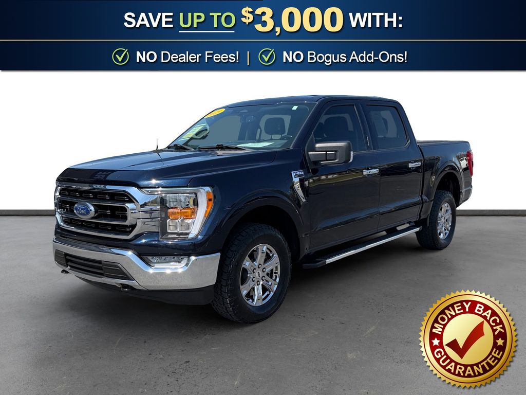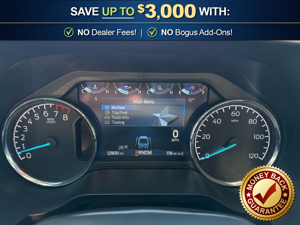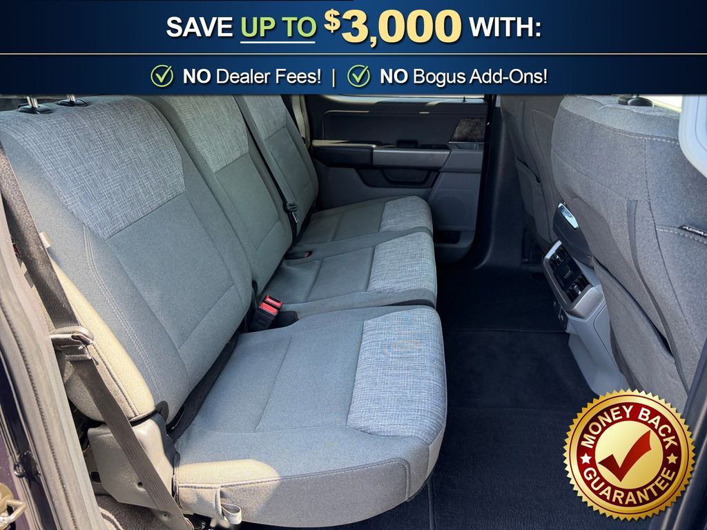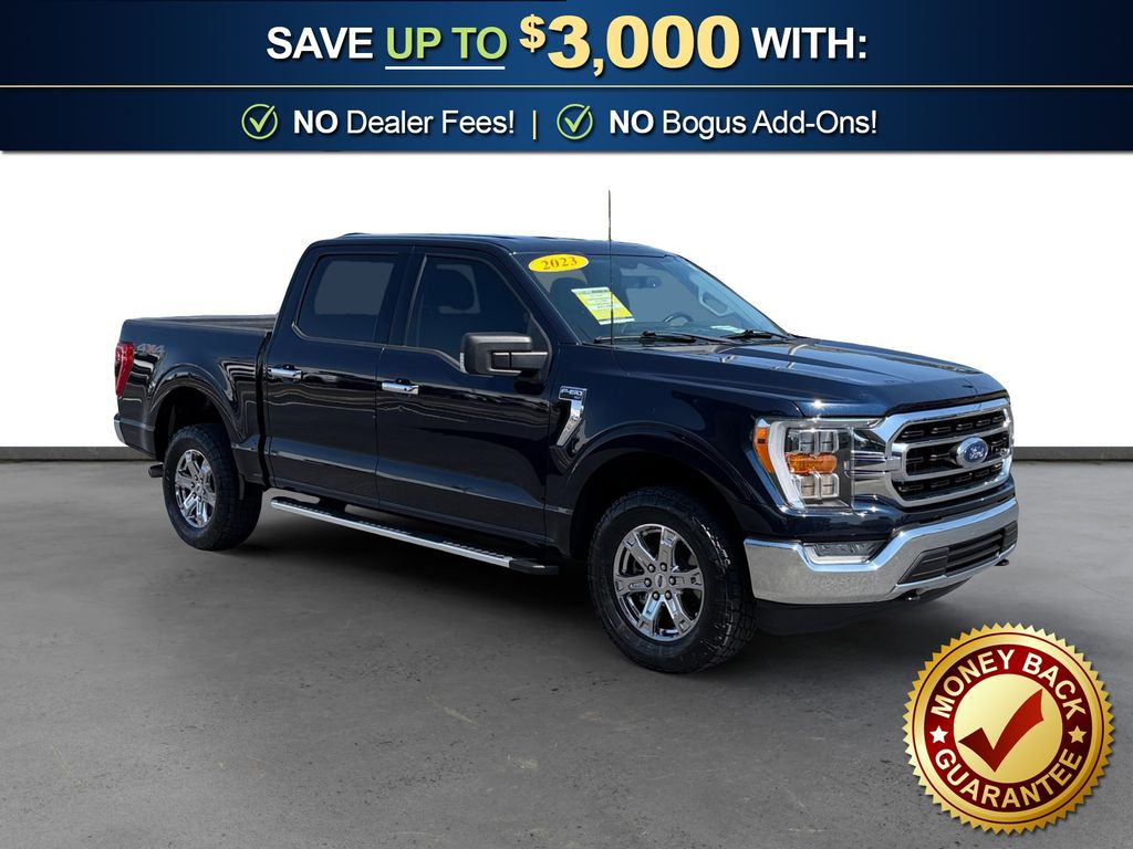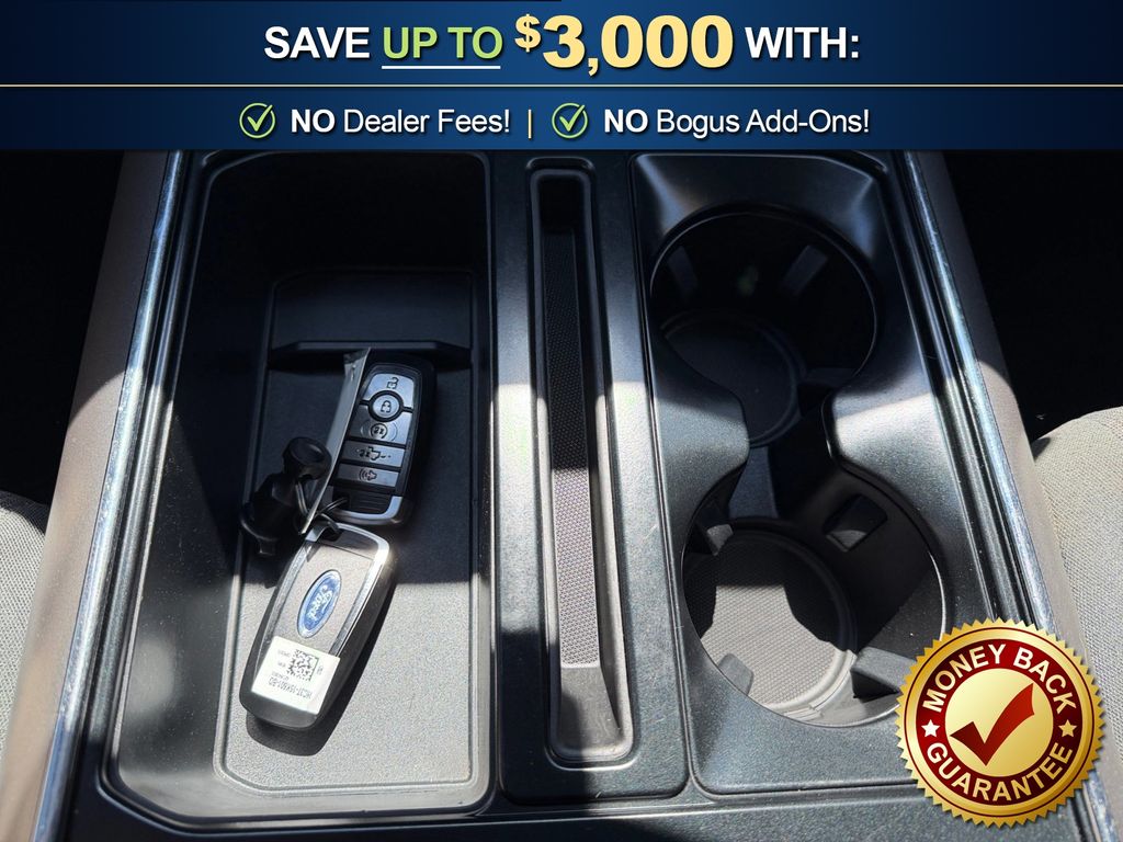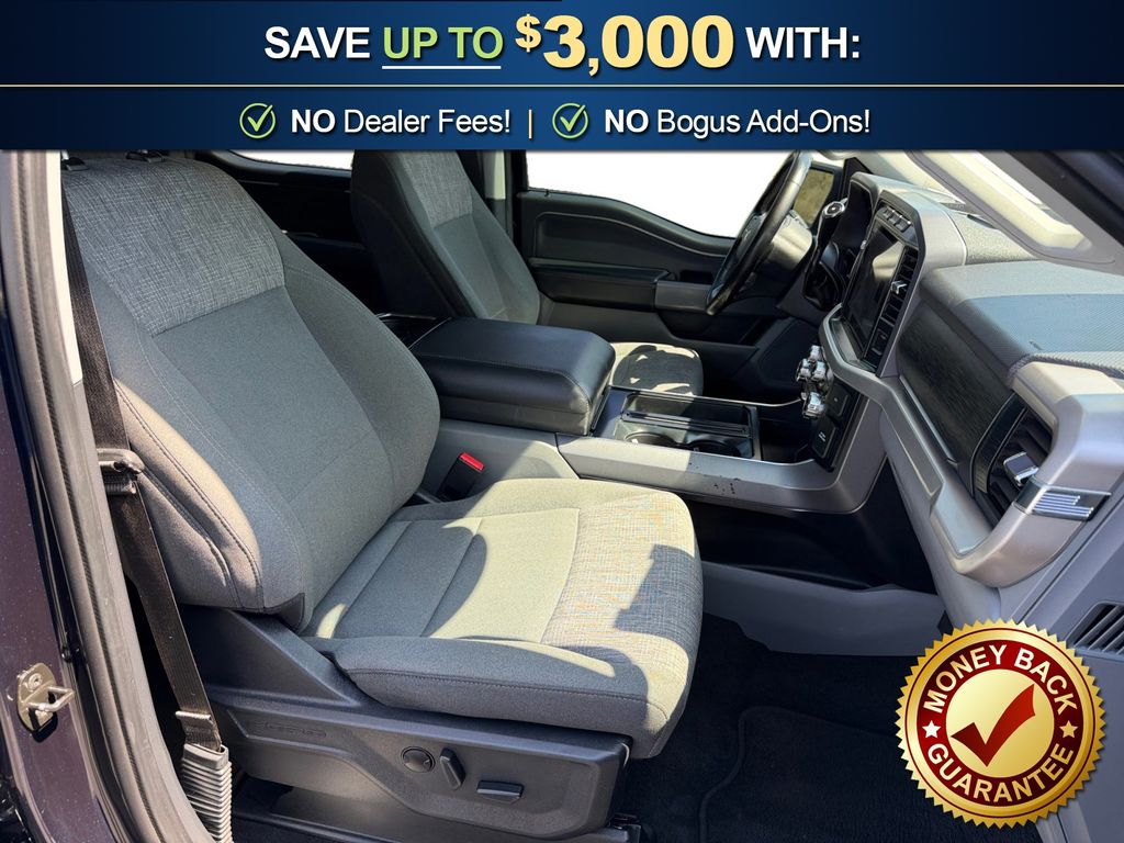 4WD, 3.31 Axle Ratio, 4-Wheel Disc Brakes, 6 Speakers, ABS brakes, Air Conditioning, Alloy wheels, AM/FM radio, Auto High-beam Headlights, Brake assist, Bumpers: chrome, Cloth 40/20/40 Front Seat, Compass, Delay-off headlights, Driver door bin, Driver vanity mirror, Dual front impact airbags, Dual front side impact airbags, Electronic Stability Control, Emergency communication system: SYNC 4 911 Assist, Equipment Group 302A High, Exterior Parking Camera Rear, Front anti-roll bar, Front Center Armrest w/Storage, Front fog lights, Front reading lights, Front wheel independent suspension, Fully automatic headlights, Heated door mirrors, Illuminated entry, Low tire pressure warning, Occupant sensing airbag, Outside temperature display, Overhead airbag, Overhead console, Panic alarm, Passenger door bin, Passenger vanity mirror, Power door mirrors, Power steering, Power windows, Radio data system, Radio: AM/FM Stereo w/6 Speakers, Rear reading lights, Rear step bumper, Rear window defroster, Remote keyless entry, Security system, Speed control, Speed-sensing steering, Split folding rear seat, Steering wheel mounted audio controls, SYNC 4, Tachometer, Telescoping steering wheel, Tilt steering wheel, Traction control, Trip computer, Variably intermittent wipers, Voltmeter, Wheels: 17" Silver Painted Aluminum, 4WD. 2023 Ford F-150 XLT