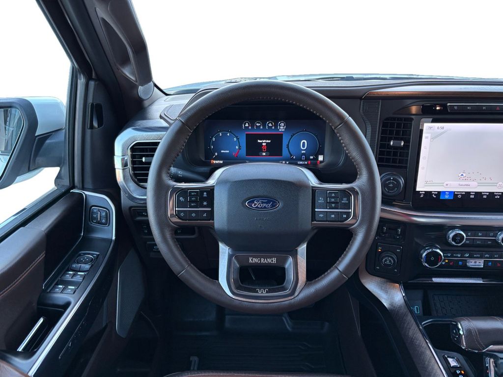 2024 Ford F-150 King Ranch Star White Metallic Tri-Coat King Ranch 4WD 10-Speed Automatic 3.5L PowerBoost Full-Hybrid V6 3.5L PowerBoost Full-Hybrid V6, 4WD, 14 Speakers, 4-Wheel Disc Brakes, ABS brakes, Adaptive suspension, Adjustable pedals, Air Conditioning, Alloy wheels, AM/FM radio: SiriusXM with 360L, Auto High-beam Headlights, Auto-dimming door mirrors, Auto-dimming Rear-View mirror, Automatic temperature control, Brake assist, Chrome wheels, Compass, Delay-off headlights, Driver door bin, Driver vanity mirror, Dual front impact airbags, Dual front side impact airbags, Electronic Stability Control, Emergency communication system: SYNC 4 911 Assist, Engine Block Heater, Equipment Group 601A High, Front anti-roll bar, Front Bucket Seats, Front Center Armrest, Front dual zone A/C, Front fog lights, Front reading lights, Front wheel independent suspension, Fully automatic headlights, Garage door transmitter, Genuine wood dashboard insert, Heads-Up Display, Heated door mirrors, Heated front seats, Heated rear seats, Heated steering wheel, Illuminated entry, King Ranch Leather Bucket Seats, Low tire pressure warning, Max Recline Driver & Passenger Seat, Memory seat, Navigation system: Connected Navigation, Occupant sensing airbag, Outside temperature display, Overhead airbag, Overhead console, Panic alarm, Passenger door bin, Passenger vanity mirror, Pedal memory, Power door mirrors, Power driver seat, Power moonroof, Power passenger seat, Power steering, Power windows, Radio data system, Radio: B&O Unleashed Sound System by Bang & Olufsen, Rain sensing wipers, Rear reading lights, Rear seat center armrest, Rear step bumper, Rear window defroster, Remote keyless entry, Retractable Rear Center Step, Retractable Tonneau Pickup Box Cover, Security system, Speed control, Split folding rear seat, Steering wheel mounted audio controls, SYNC 4 w/Enhanced Voice Recognition, Tachometer, Telescoping steering wheel, Tilt steering wheel, Tough Bed Spray-In Bedliner, Traction control, Tray Style Floor Liner, Trip computer, Turn signal indicator mirrors, Variably intermittent wipers, Ventilated front seats, Voltmeter, Wheel Well Liner, Wheels: 20" Chrome-Like PVD, 3.5L PowerBoost Full-Hybrid V6, 4WD.