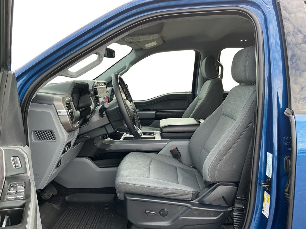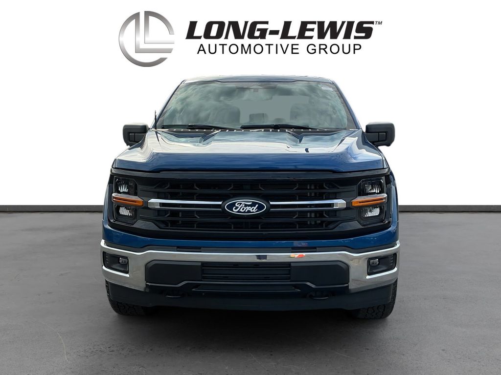 2024 Ford F-150 XLT Blue Metallic XLT 4WD 10-Speed Automatic 5.0L V8 4WD, 3.31 Axle Ratio, 4-Wheel Disc Brakes, 6 Speakers, ABS brakes, Air Conditioning, Alloy wheels, AM/FM radio: SiriusXM with 360L, Auto High-beam Headlights, Auto-dimming Rear-View mirror, Automatic temperature control, Brake assist, Bumpers: chrome, Chrome wheels, Cloth 40/20/40 Front Seat, Cloth 40/Console/40 Front Seats, Compass, Console Worksurface, Delay-off headlights, Driver door bin, Driver vanity mirror, Dual front impact airbags, Dual front side impact airbags, Electronic Stability Control, Emergency communication system: SYNC 4 911 Assist, Equipment Group 301A Standard, Front anti-roll bar, Front Center Armrest w/Storage, Front dual zone A/C, Front fog lights, Front reading lights, Front wheel independent suspension, Fully automatic headlights, Heated door mirrors, Illuminated entry, Low tire pressure warning, Mobile Office Package, Navigation system: Connected Navigation, Occupant sensing airbag, Outside temperature display, Overhead airbag, Overhead console, Panic alarm, Partitioned Lockable Rear Storage, Passenger door bin, Passenger vanity mirror, Power door mirrors, Power driver seat, Power steering, Power windows, Radio data system, Radio: AM/FM SiriusXM w/360L, Rear reading lights, Rear step bumper, Rear window defroster, Remote keyless entry, Security system, Speed control, Split folding rear seat, Steering wheel mounted audio controls, SYNC 4 w/Enhanced Voice Recognition, Tachometer, Telescoping steering wheel, Tilt steering wheel, Traction control, Trip computer, Variably intermittent wipers, Voltmeter, Wheels: 18" Chrome-Like PVD, 4WD.