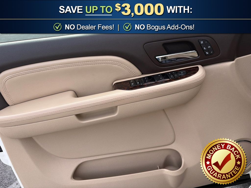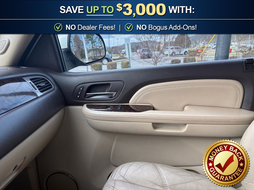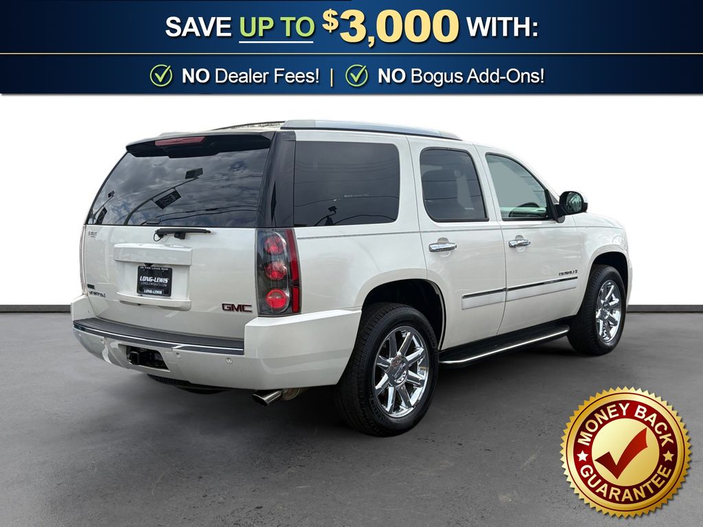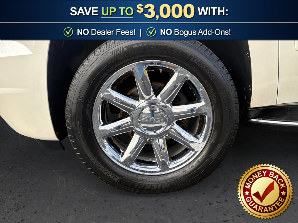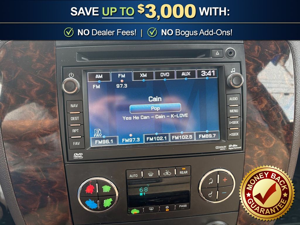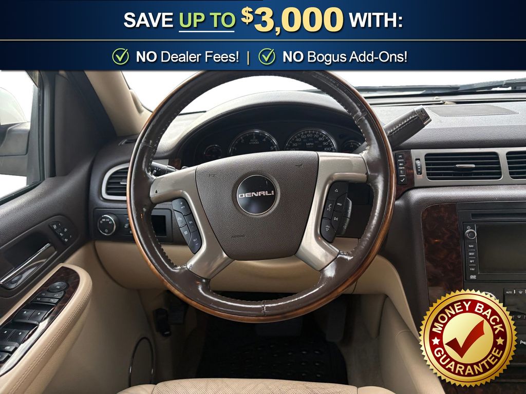 10 Speakers, 20" x 8.5" Chrome Aluminum Wheels, 3.42 Rear Axle Ratio, 3rd row seats: split-bench, 4-Wheel Disc Brakes, ABS brakes, Adjustable pedals, Air Conditioning, Alloy wheels, AM/FM radio: XM, AM/FM Stereo w/6-Disc In-Dash CD/MP3, AM/FM Stereo w/CD/DVD/MP3/Navigation, Auto Air Level Control, Auto-dimming door mirrors, Auto-dimming Rear-View mirror, Auto-leveling suspension, Automatic temperature control, Autoride Suspension Package, Bodyside moldings, Bose Centerpoint Surround Audio System Feature, Bumpers: body-color, CD player, Chrome Exhaust Tips, Chrome Recovery Hooks, Chrome wheels, Compass, Delay-off headlights, Denali Package, Driver door bin, Driver vanity mirror, Dual front impact airbags, Electronic Stability Control, Emergency communication system: OnStar Directions & Connections, Floor Console w/Storage Area, Front anti-roll bar, Front Bucket Seats, Front Center Armrest, Front dual zone A/C, Front fog lights, Front Full-Feature Reclining Bucket Seats, Front reading lights, Front wheel independent suspension, Fully automatic headlights, Garage door transmitter, Heated & Cooled Driver & Front Passenger Seats, Heated door mirrors, Heated front seats, Heated rear seats, Heated steering wheel, Illuminated entry, Leather Shift Knob, Leather steering wheel, Low tire pressure warning, Memory seat, Nuance Leather Appointed Seat Trim, Occupant sensing airbag, Outside temperature display, Overhead airbag, Overhead console, Panic alarm, Passenger door bin, Passenger vanity mirror, Pedal memory, Power door mirrors, Power driver seat, Power Liftgate, Power passenger seat, Power steering, Power Tilt-Sliding Sunroof w/Express-Open/Close, Power windows, Radio data system, Rain sensing wipers, Rear air conditioning, Rear anti-roll bar, Rear audio controls, Rear reading lights, Rear window defroster, Rear window wiper, Rear-Seat DVD Entertainment System, Rear-View Camera System, Remote keyless entry, Roof rack, Security system, Side Blind Zone Alert, Speed control, Split folding rear seat, Spoiler, Steering wheel memory, Steering wheel mounted audio controls, Sun, Entertainment & Destinations Package, Tachometer, Tilt steering wheel, Traction control, Trip computer, Turn signal indicator mirrors, Variably intermittent wipers, Voltmeter, XM NavTraffic, XM Radio. 2009 GMC Yukon Denali