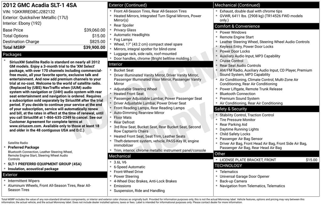 2012 GMC Acadia SLT-1 FWD 6-Speed Automatic Electronic with Overdrive 3.6L V6 SIDI Quicksilver Metallic