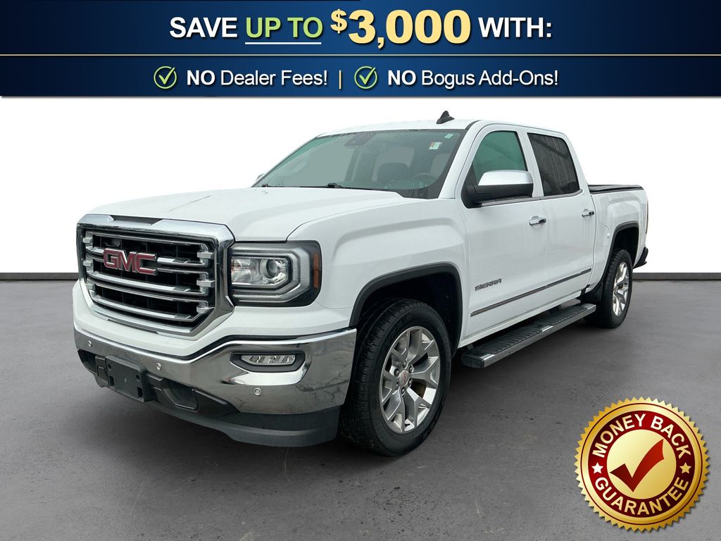 2017 GMC Sierra 1500 SLT Summit White SLT RWD 6-Speed Automatic Electronic with Overdrive EcoTec3 5.3L V8 6-Speed Automatic Electronic with Overdrive, Jet Black Leather, 10-Way Power Driver's Seat Adjuster, 110-Volt AC Power Outlet, 150 Amp Alternator, 1st & 2nd Row Color-Keyed Carpeted Floor Mats, 20" x 9" Polished Aluminum Wheels, 4-Wheel Disc Brakes, 4.2" Diagonal Color Display Driver Info Center, 40/20/40 Front Split Bench Seat, 6 Speakers, 6-Speaker Audio System, 6" Rectangular Chromed Tubular Assist Steps, ABS brakes, Adjustable pedals, Air Conditioning, Alloy wheels, AM/FM radio, Auto-dimming door mirrors, Auto-Dimming Inside Rear-View Mirror, Auto-dimming Rear-View mirror, Automatic temperature control, Auxiliary External Transmission Oil Cooler, Bodyside moldings, Brake assist, Bumpers: chrome, CD player, Chrome Bodyside Moldings, Chrome Door Handles, Chrome Mirror Caps, Color-Keyed Carpeting, Compass, Deep-Tinted Glass, Delay-off headlights, Driver & Front Passenger Illuminated Vanity Mirrors, Driver door bin, Driver vanity mirror, Dual front impact airbags, Dual front side impact airbags, Dual-Zone Automatic Climate Control, Electric Rear-Window Defogger, Electronic Stability Control, Emergency communication system: OnStar Guidance, Enhanced Driver Alert Package, Exterior Parking Camera Rear, EZ Lift & Lower Tailgate, Floor Mounted Console, Forward Collision Alert, Front anti-roll bar, Front Center Armrest w/Storage, Front dual zone A/C, Front fog lights, Front Full Feature Power Reclining Bucket Seats, Front License Plate Kit, Front reading lights, Front wheel independent suspension, Fully automatic headlights, Garage door transmitter: HomeLink, HD Radio, Heated & Ventilated Front Bucket Seats, Heated door mirrors, Heated Driver & Front Passenger Seats, Heated front seats, Heavy Duty Suspension, Heavy-Duty Rear Locking Differential, High-Intensity Discharge Headlights, Illuminated entry, IntelliBeam Automatic High Beam On/Off Headlight, Lane Keep Assist, Leather Appointed Seat Trim, Leather Wrapped Heated Steering Wheel, Leather Wrapped Steering Wheel w/Cruise Controls, LED Cargo Box Lighting, LED Tailamps w/Signature, Low Speed Forward Automatic Braking, Low tire pressure warning, Manual Tilt/Telescoping Steering Column, Memory seat, Occupant sensing airbag, OnStar 3 Month Guidance Plan, OnStar w/4G LTE, Outside temperature display, Overhead airbag, Overhead console, Panic alarm, Passenger door bin, Passenger vanity mirror, Polished Exhaust Tip, Power Adjustable Pedals, Power door mirrors, Power driver seat, Power Folding & Adjustable Heated Outside Mirrors, Power passenger seat, Power Sliding Rear Window w/Defogger, Power steering, Power windows, Power Windows w/Driver Express Up & Down, Preferred Equipment Group 4SA, Radio data system, Radio: AM/FM Stereo w/8" Diagonal Color Touch Nav., Radio: AM/FM Stereo w/8" Diagonal Color Touch Screen, Rear 60/40 Folding Bench Seat (Folds Up), Rear reading lights, Rear seat center armrest, Rear step bumper, Rear Vision Camera, Rear Wheelhouse Liners, Rear window defroster, Remote Keyless Entry, Remote keyless entry, Remote Locking Tailgate, Remote Vehicle Starter System, Security system, Single Slot CD/MP3 Player, SiriusXM Satellite Radio, SLT Preferred Package, SLT Premium Package, Speed control, Speed-sensing steering, Split folding rear seat, Steering Wheel Audio Controls, Steering wheel mounted audio controls, Tachometer, Telescoping steering wheel, Theft Deterrent System (Unauthorized Entry), Thin Profile LED Fog Lamps, Tilt steering wheel, Traction control, Trailering Equipment, Trip computer, Turn signal indicator mirrors, Ultrasonic Front & Rear Park Assist, Universal Home Remote, Variably intermittent wipers, Voltmeter, Wheels: 18" x 8.5" Polished Aluminum, Wireless Charging, 6-Speed Automatic Electronic with Overdrive, Jet Black Leather.