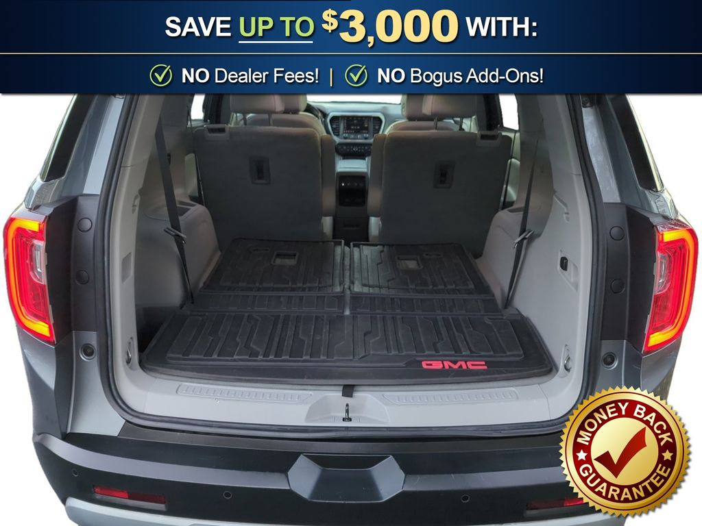 FWD, Cocoa/Light Ash Gray Leather, 155 Amp Alternator, 18" Machined Aluminum Wheels, 1st & 2nd Row All-Weather Floor Liner (LPO), 3rd Row All-Weather Floor Liner (LPO), 3rd row seats: split-bench, 4-Way Manual Passenger Seat Adjuster, 4-Wheel Disc Brakes, 6 Speakers, 6-Passenger (2-2-2 Seating Configuration), 6-Speaker Audio System Feature, 8-Way Power Driver Seat Adjuster, ABS brakes, Air Conditioning, Alloy wheels, AM/FM radio: SiriusXM, Apple CarPlay/Android Auto, Auto-dimming door mirrors, Auto-dimming Rear-View mirror, Automatic temperature control, Brake assist, Bumpers: body-color, Compass, Delay-off headlights, Driver door bin, Driver vanity mirror, Dual front impact airbags, Dual front side impact airbags, Dual SkyScape 2-Panel Power Sunroof, Electronic Stability Control, Emergency communication system: OnStar and GMC connected services capable, Floor Liner Package (LPO), Four wheel independent suspension, Front anti-roll bar, Front Bucket Seats, Front Center Armrest, Front dual zone A/C, Front fog lights, Front reading lights, Fully automatic headlights, Garage door transmitter, Heated door mirrors, Heated Driver & Front Passenger Seats, Heated front seats, Illuminated entry, Integrated Cargo Liner (LPO), Knee airbag, Low tire pressure warning, Occupant sensing airbag, Outside temperature display, Overhead airbag, Overhead console, Panic alarm, Passenger door bin, Passenger vanity mirror, Perforated Leather-Appointed Seat Trim, Power door mirrors, Power Driver Lumbar Control Seat Adjuster, Power driver seat, Power Liftgate, Power steering, Power windows, Preferred Equipment Group 4SA, Premium audio system: GMC Infotainment System, Radio data system, Radio: AM/FM 8" Diagonal Multi-Touch Nav (DISC), Radio: AM/FM 8" Diagonal Multi-Touch Navigation, Rear air conditioning, Rear anti-roll bar, Rear reading lights, Rear window defroster, Rear window wiper, Remote keyless entry, Roof rack: rails only, Security system, SiriusXM Radio, SiriusXM w/360L, Speed control, Speed-sensing steering, Spoiler, Steering wheel mounted audio controls, Tachometer, Telescoping steering wheel, Tilt steering wheel, Traction control, Trip computer, Turn signal indicator mirrors, Variably intermittent wipers, Voltmeter, FWD, Cocoa/Light Ash Gray Leather.