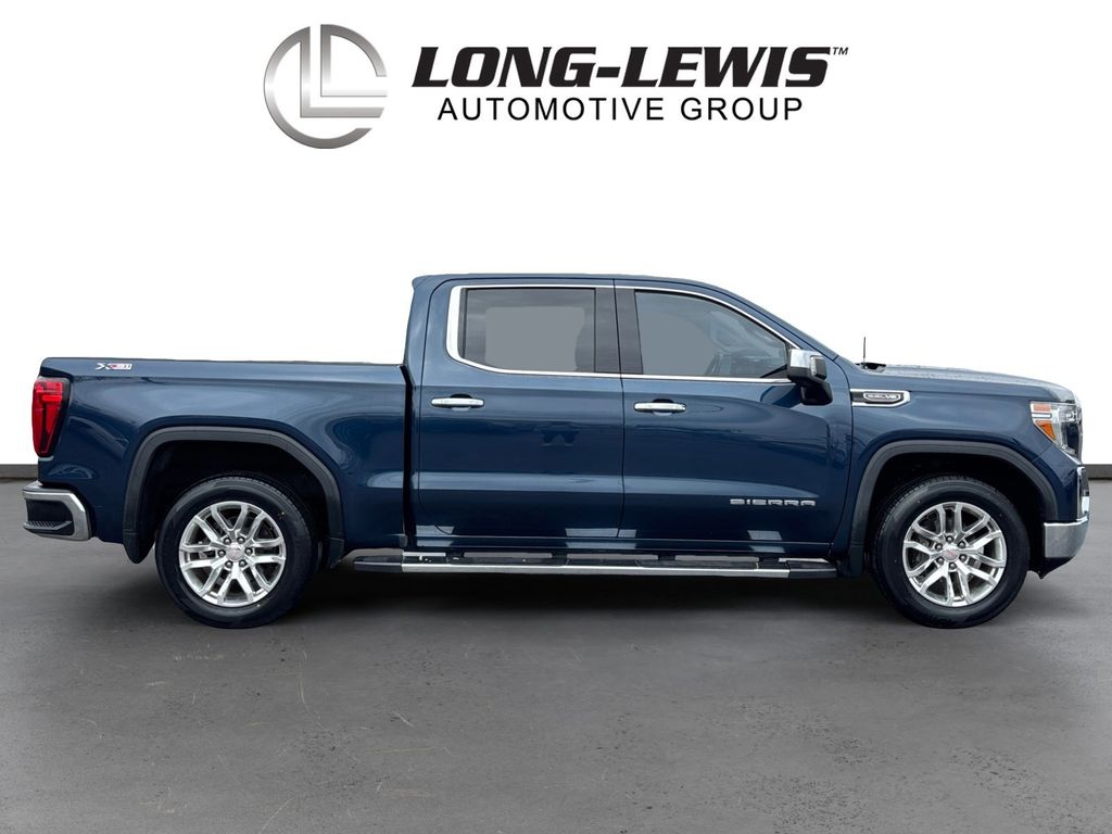 2020 GMC Sierra 1500 SLT Pacific Blue Metallic SLT 4WD 10-Speed Automatic EcoTec3 5.3L V8 10-Speed Automatic, 4WD, Jet Black Leather, 10-Way Power Driver Seat Adjuster w/Lumbar, 10-Way Power Passenger Seat Adjuster w/Lumbar, 12-Volt Rear Auxiliary Power Outlet, 120-Volt Bed Mounted Power Outlet, 120-Volt Instrument Panel Power Outlet, 170 Amp Alternator, 2 USB Ports, 2 USB Ports (1st Row), 20" x 9" Polished Aluminum Wheels, 3.23 Rear Axle Ratio, 4-Wheel Disc Brakes, 4G LTE Wi-Fi Hotspot Capable, 6 Speakers, 6-Speaker Audio System Feature, ABS brakes, Adaptive Cruise Control - Camera, Air Conditioning, All-Weather Floor Liner (LPO), Alloy wheels, AM/FM radio: SiriusXM with 360L, Apple CarPlay/Android Auto, Auto-dimming door mirrors, Auto-dimming Rear-View mirror, Automatic Emergency Braking, Automatic temperature control, Auxiliary External Transmission Oil Cooler, Brake assist, Bumpers: chrome, Chrome Grille, Chrome Wheel To Wheel Assist Steps, Color-Keyed Carpeting Floor Covering, Compass, Deep-Tinted Glass, Delay-off headlights, Driver Alert Package I, Driver Alert Package II, Driver door bin, Driver Memory, Driver vanity mirror, Dual Exhaust w/Premium Tips, Dual front impact airbags, Dual front side impact airbags, Electric Rear-Window Defogger, Electrical Lock Control Steering Column, Electronic Stability Control, Floor-Mounted Center Console, Following Distance Indicator, Forward Collision Alert, Front 40/20/40 Split-Bench Seat, Front anti-roll bar, Front Bucket Seats, Front Center Armrest w/Storage, Front dual zone A/C, Front fog lights, Front Frame-Mounted Black Recovery Hooks, Front License Plate Kit, Front Pedestrian Braking, Front reading lights, Front wheel independent suspension, Fully automatic headlights, GMC Connected Access Capable, HD Radio, Heated 2nd Row Outboard Seats, Heated door mirrors, Heated Driver & Front Outboard Passenger Seating, Heated front seats, Heated steering wheel, Heavy Duty Suspension, Heavy-Duty Rear Locking Differential, High-Capacity Air Filter, Hill Descent Control, Hitch Guidance, Hitch Guidance w/Hitch View, Illuminated entry, In-Vehicle Trailering App, Integrated Trailer Brake Controller, IntelliBeam Automatic High Beam On/Off, Keyless Open & Start, Lane Change Alert w/Side Blind Zone Alert, Lane Keep Assist w/Lane Departure Warning, LED Cargo Area Lighting, Low tire pressure warning, Manual Tilt-Wheel & Telescoping Steering Column, Memory seat, Occupant sensing airbag, Off-Road Suspension, OnStar & GMC Connected Services Capable, Outside temperature display, Overhead airbag, Overhead console, Panic alarm, Passenger door bin, Passenger vanity mirror, Perforated Leather-Appointed Front Seat Trim, Perimeter Lighting, Power Door Locks, Power door mirrors, Power driver seat, Power Front Passenger Windows w/Express Up/Down, Power Front Windows w/Driver Express Up/Down, Power passenger seat, Power Rear Windows w/Express Down, Power Sliding Rear Window w/Rear Defogger, Power steering, Power windows, Preferred Equipment Group 4SA, Premium audio system: GMC Infotainment System, Premium Bose 7-Speaker Sound System, ProGrade Trailering System, Radio data system, Radio: Premium GMC Infotainment Sys w/Multi-Touch, Radio: Premium GMC Infotainment Sys w/Navigation, Rear Cross Traffic Alert, Rear Dual USB Charging-Only Ports, Rear reading lights, Rear seat center armrest, Rear step bumper, Rear Wheelhouse Liners, Rear window defroster, Remote keyless entry, Remote Vehicle Starter System, Safety Alert Seat, Security system, SiriusXM w/360L, SLT Convenience Package, SLT Preferred Package, SLT Premium Plus Package, Speed control, Speed-sensing steering, Split folding rear seat, Spray-On Pickup Bed Liner w/GMC Logo, Steering Wheel Audio Controls, Steering wheel mounted audio controls, Tachometer, Telescoping steering wheel, Theft Deterrent System (Unauthorized Entry), Tilt steering wheel, Traction control, Trailer Tire Pressure Monitor System, Trailering Package