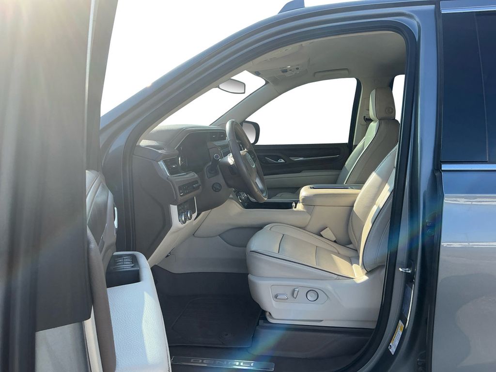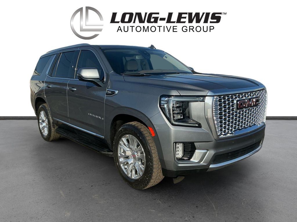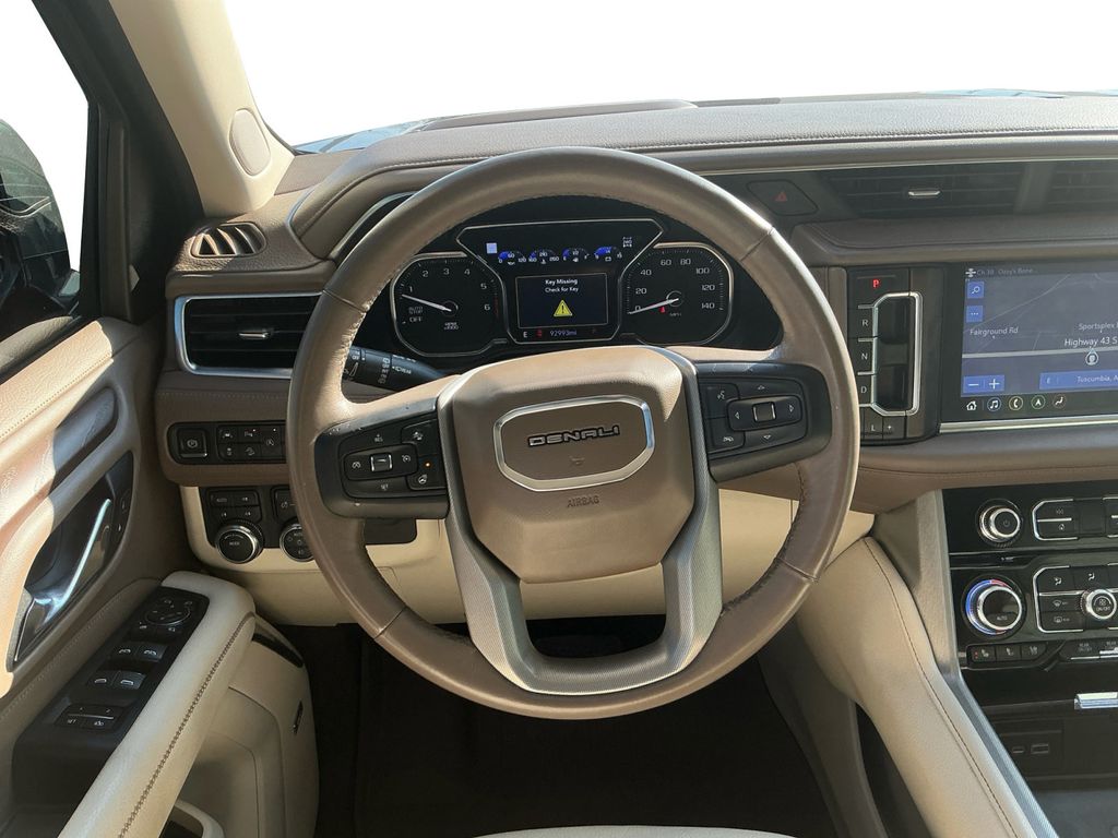 2021 GMC Yukon Denali Satin Steel Metallic Denali 4WD 10-Speed Automatic with Overdrive EcoTec3 6.2L V8 4WD, 12-Way Power Seat Adjusters, 14 Speakers, 15" Diagonal Multi-Color Head-Up Display, 2 Presets For Outside Rearview Mirrors, 3.23 Rear Axle Ratio, 3rd Row 60/40 Power-Folding Split-Bench Seat, 3rd row seats: split-bench, 4-Wheel Disc Brakes, ABS brakes, Adaptive suspension, Air Conditioning, Alloy wheels, AM/FM radio: SiriusXM with 360L, Apple CarPlay/Android Auto, Auto High-beam Headlights, Auto-dimming door mirrors, Auto-dimming Rear-View mirror, Auto-leveling suspension, Automatic Emergency Braking, Automatic temperature control, Bodyside moldings, Bose 14-Speaker Surround w/CenterPoint, Brake assist, Bright Front & Rear Door Sill Plates, Bumpers: body-color, Chrome Door Handles w/Body-Color Strip, Compass, Delay-off headlights, Driver door bin, Driver vanity mirror, Dual Exhaust System, Dual front impact airbags, Dual front side impact airbags, Electronic Stability Control, Emergency communication system: OnStar and GMC connected services capable, Following Distance Indicator, Forward Collision Alert, Four wheel independent suspension, Front & Rear Park Assist, Front anti-roll bar, Front Bucket Seats, Front Center Armrest, Front dual zone A/C, Front fog lights, Front Pedestrian Braking, Front reading lights, Fully automatic headlights, Galvano Bodyside Moldings, Garage door transmitter, Hands-Free Power Programmable Rear Liftgate, HD Radio, HD Surround Vision, Heads-Up Display, Heated & Ventilated Driver & Front Passenger Seats, Heated 2nd Row Outboard Position Seats, Heated Automatic Steering Wheel, Heated door mirrors, Heated Driver & Front Passenger Seats, Heated front seats, Heated rear seats, Heated steering wheel, Hill Descent Control, Illuminated entry, Inside Rear-View Auto-Dimming Mirror, IntelliBeam Automatic High Beam On/Off, Lane Change Alert w/Side Blind Zone Alert, Lane Keep Assist w/Lane Departure Warning, Leather steering wheel, Low tire pressure warning, Magnetic Ride Control Suspension, Memory seat, Navigation System, Occupant sensing airbag, Outside Heated Power-Adjustable Mirrors, Outside temperature display, Overhead airbag, Overhead console, Panic alarm, Passenger door bin, Passenger vanity mirror, Perforated Leather Seating Surfaces, Power door mirrors, Power driver seat, Power Liftgate, Power passenger seat, Power Release 2nd Row Bucket Seats, Power steering, Power Tilt & Telescopic Steering Column, Power windows, Preferred Equipment Group 5SA, Radio: AM/FM/SiriusXM w/Navigation, Rain sensing wipers, Rear air conditioning, Rear anti-roll bar, Rear Cross Traffic Alert, Rear Pedestrian Alert, Rear reading lights, Rear window defroster, Rear window wiper, Remote keyless entry, Roof rack: rails only, Safety Alert Seat, Security system, SiriusXM w/360L, Speed control, Speed-sensing steering, Split folding rear seat, Spoiler, Steering wheel memory, Steering wheel mounted audio controls, Tachometer, Telescoping steering wheel, Tilt steering wheel, Traction control, Trip computer, Turn signal indicator mirrors, Universal Home Remote, Variably intermittent wipers, Ventilated front seats, Voltmeter, Wheels: 20" x 9" 6-Spoke Polished Aluminum, 4WD.