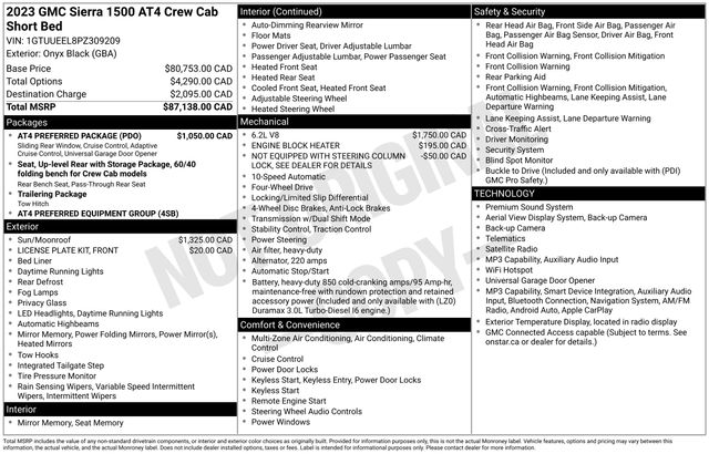 **Here at Long-Lewis we believe in being transparent. We have no Doc fees, or any other hidden fees. We are a one price store and give our best price up front and they are clearly marked on all our inventory.** 4WD 10-Speed Automatic EcoTec3 6.2L V8 10-Speed Automatic, 4WD, Leather, 10-Way Power Driver Seat Adjuster w/Lumbar, 10-Way Power Passenger Seat Adjuster w/Lumbar, 120-Volt Bed Mounted Power Outlet, 120-Volt Instrument Panel Power Outlet, 18" x 8.5" Machined Aluminum Wheels, 2 Charge/Data USB Ports Inside Center Console, 2 Type-C Charge-Only Rear USB Ports, 2 USB Ports, 220 Amp Alternator, 3.23 Rear Axle Ratio, 4-Wheel Disc Brakes, 7 Speakers, ABS brakes, Air Conditioning, Alloy wheels, AM/FM radio, Apple CarPlay/Android Auto, Auto High-beam Headlights, Auto-dimming door mirrors, Auto-dimming Rear-View mirror, Auto-Locking Rear Differential, Automatic Emergency Braking, Automatic temperature control, Black Chrome Header & Grille Insert Bars, Block heater, Brake assist, Buckle to Drive, Bumpers: body-color, Color-Keyed Carpeting Floor Covering, Compass, Deep-Tinted Glass, Delay-off headlights, Driver door bin, Driver Memory, Driver vanity mirror, Dual front impact airbags, Dual front side impact airbags, Electric Rear-Window Defogger, Electrical Steering Column Lock, Electronic Stability Control, Emergency communication system: OnStar and GMC connected services capable, Engine Block Heater, Floor-Mounted Center Console, Following Distance Indicator, Forward Collision Alert, Front anti-roll bar, Front Bucket Seats, Front Center Armrest, Front dual zone A/C, Front fog lights, Front Pedestrian Braking, Front Prem Floor Liners w/Removable Carpet Insert, Front Rainsensing Wipers, Front reading lights, Front wheel independent suspension, Fully automatic headlights, GMC Connected Access Capable, HD Surround Vision, Heated 2nd Row Outboard Seats, Heated door mirrors, Heated Driver & Front Outboard Passenger Seating, Heated front seats, Heated rear seats, Heated steering wheel, Heavy-Duty Air Filter, Hill Descent Control, Hitch Guidance, Hitch Guidance w/Hitch View, Illuminated entry, In-Vehicle Trailering App, Integrated Trailer Brake Controller, IntelliBeam Automatic High Beam On/Off, Keyless Open & Start, Lane Keep Assist w/Lane Departure Warning, LED Cargo Area Lighting, Low tire pressure warning, Memory seat, Navigation System, Occupant sensing airbag, Off-Road Suspension, OnStar & GMC Connected Services Capable, Outside temperature display, Overhead airbag, Overhead console, Panic alarm, Passenger door bin, Passenger vanity mirror, Perforated Front Leather Seat Trim, Perimeter Lighting, Power Door Locks, Power door mirrors, Power driver seat, Power Front Passenger Windows w/Express Up/Down, Power Front Windows w/Driver Express Up/Down, Power passenger seat, Power Rake & Telescoping Steering Column, Power Rear Windows w/Express Down, Power steering, Power windows, Premium audio system: GMC Infotainment System, Premium Bose 7-Speaker Sound System, Push Button Start, Radio data system, Radio: Premium GMC Infotainment Audio System, Rain sensing wipers, Rear Cross Traffic Braking, Rear Pedestrian Detection, Rear Prem Floor Liners w/Removable Carpet Insert, Rear reading lights, Rear seat center armrest, Rear step bumper, Rear Wheelhouse Liners, Rear window defroster, Red Recovery Hooks, Remote keyless entry, Remote Vehicle Starter System, Safety Alert Seat, Security system, SiriusXM w/360L, Speed control, Speed-sensing steering, Split folding rear seat, Spray-On Pickup Bed Liner w/AT4 Logo, Steering Wheel Audio Controls, Steering wheel mounted audio controls, Tachometer, Telescoping steering wheel, Theft Deterrent System (Unauthorized Entry), Tilt steering wheel, Traction control, Trailer Camera Provisions, Trailer Side Blind Zone Alert, Trailering Package, Trip computer, Ultrasonic Front & Rear Park Assist, Variably intermittent wipers, Ventilated Driver & Front Passenger Seats, Ventilated fro