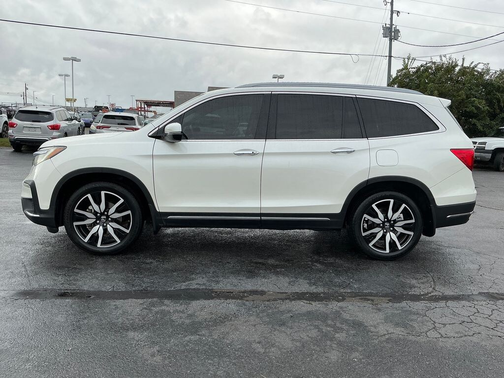 2019 Honda Pilot Touring 7 Passenger White Touring 7 Passenger FWD 9-Speed Automatic 3.5L V6 24V SOHC i-VTEC 10 Speakers, 3rd row seats: split-bench, 4-Wheel Disc Brakes, 4.334 Axle Ratio, A/V remote: CabinControl, ABS brakes, Air Conditioning, Alloy wheels, AM/FM radio: SiriusXM, Apple CarPlay/Android Auto, Auto High-beam Headlights, Auto-dimming Rear-View mirror, Automatic temperature control, Blind Spot Information (BSI) System warning, Brake assist, Bumpers: body-color, Compass, Delay-off headlights, Driver door bin, Driver vanity mirror, Dual front impact airbags, Dual front side impact airbags, Electronic Stability Control, Emergency communication system: HondaLink, Exterior Parking Camera Rear, Forward collision: Collision Mitigation Braking System (CMBS) + FCW mitigation, Four wheel independent suspension, Front anti-roll bar, Front Bucket Seats, Front Center Armrest, Front dual zone A/C, Front fog lights, Front reading lights, Fully automatic headlights, Garage door transmitter: HomeLink, Headphones, Heated door mirrors, Heated Front Bucket Seats, Heated front seats, Heated rear seats, Illuminated entry, Lane departure: Lane Keeping Assist System (LKAS) active, Leather-Trimmed Seats, Low tire pressure warning, Memory seat, Navigation system: Honda Satellite-Linked Navigation System, Occupant sensing airbag, Outside temperature display, Overhead airbag, Overhead console, Panic alarm, Passenger door bin, Passenger vanity mirror, Power door mirrors, Power driver seat, Power Liftgate, Power moonroof, Power passenger seat, Power steering, Power windows, Radio data system, Radio: AM/FM Premium Audio System, Rear air conditioning, Rear anti-roll bar, Rear reading lights, Rear window defroster, Rear window wiper, Remote keyless entry, Roof rack: rails only, Security system, Speed control, Speed-sensing steering, Speed-Sensitive Wipers, Split folding rear seat, Spoiler, Steering wheel mounted audio controls, Tachometer, Telescoping steering wheel, Tilt steering wheel, Traction control, Trip computer, Turn signal indicator mirrors, Variably intermittent wipers, Wheels: 20" Machine-Finished Alloy.
