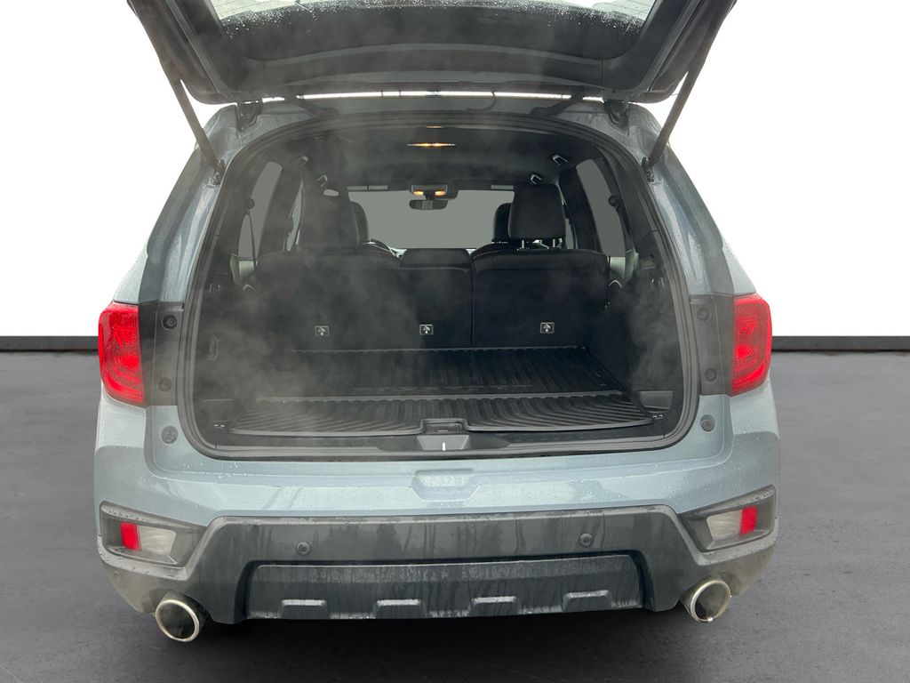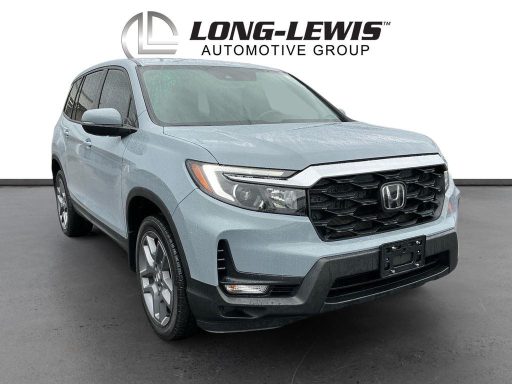 2023 Honda Passport EX-L Gray EX-L AWD 9-Speed Automatic 3.5L V6 24V SOHC i-VTEC 4-Wheel Disc Brakes, 4.334 Axle Ratio, 7 Speakers, A/V remote: CabinControl, ABS brakes, Air Conditioning, Alloy wheels, AM/FM radio: SiriusXM, Apple CarPlay/Android Auto, Auto High-beam Headlights, Auto-dimming Rear-View mirror, Automatic temperature control, Blind Spot Information (BSI) System warning, Brake assist, Bumpers: body-color, Delay-off headlights, Driver door bin, Driver vanity mirror, Driver's Seat Mounted Armrest, Dual front impact airbags, Dual front side impact airbags, Electronic Stability Control, Emergency communication system: HondaLink Assist, Exterior Parking Camera Rear, Four wheel independent suspension, Front anti-roll bar, Front Bucket Seats, Front Center Armrest, Front dual zone A/C, Front reading lights, Fully automatic headlights, Garage door transmitter: HomeLink, Heated door mirrors, Heated Front Bucket Seats, Heated front seats, Illuminated entry, Lane departure: Lane Keeping Assist System (LKAS) active, Leather-Trimmed Seats, Low tire pressure warning, Occupant sensing airbag, Outside temperature display, Overhead airbag, Overhead console, Panic alarm, Passenger door bin, Passenger seat mounted armrest, Passenger vanity mirror, Power door mirrors, Power driver seat, Power Liftgate, Power moonroof, Power passenger seat, Power steering, Power windows, Radio data system, Radio: 215-Watt Audio System w/7 Speakers, Rear air conditioning, Rear anti-roll bar, Rear reading lights, Rear seat center armrest, Rear window defroster, Rear window wiper, Remote keyless entry, Security system, Speed control, Speed-sensing steering, Split folding rear seat, Spoiler, Steering wheel mounted audio controls, Tachometer, Telescoping steering wheel, Tilt steering wheel, Traction control, Trip computer, Turn signal indicator mirrors, Variably intermittent wipers, Wheels: 20" Pewter Gray Alloy.