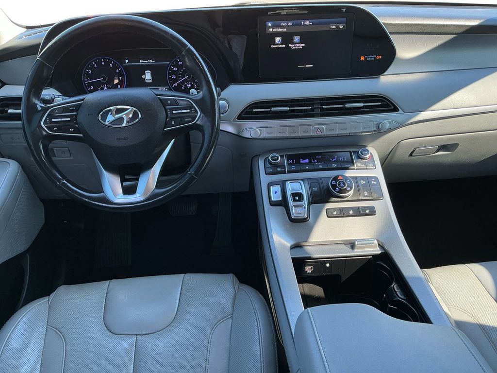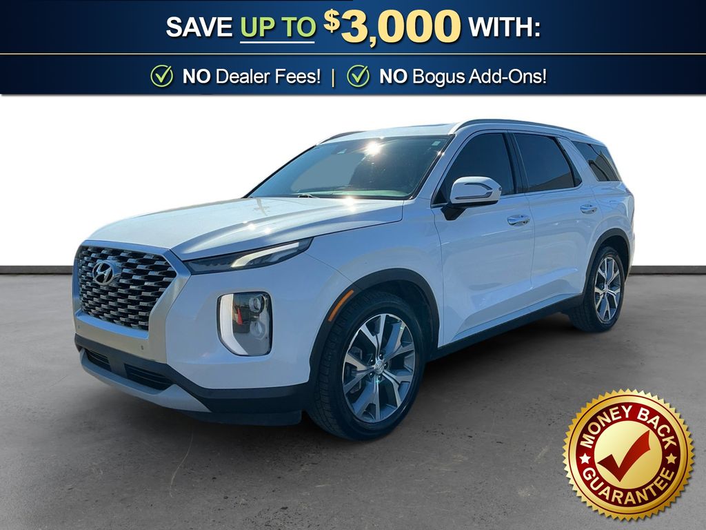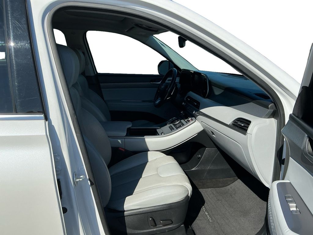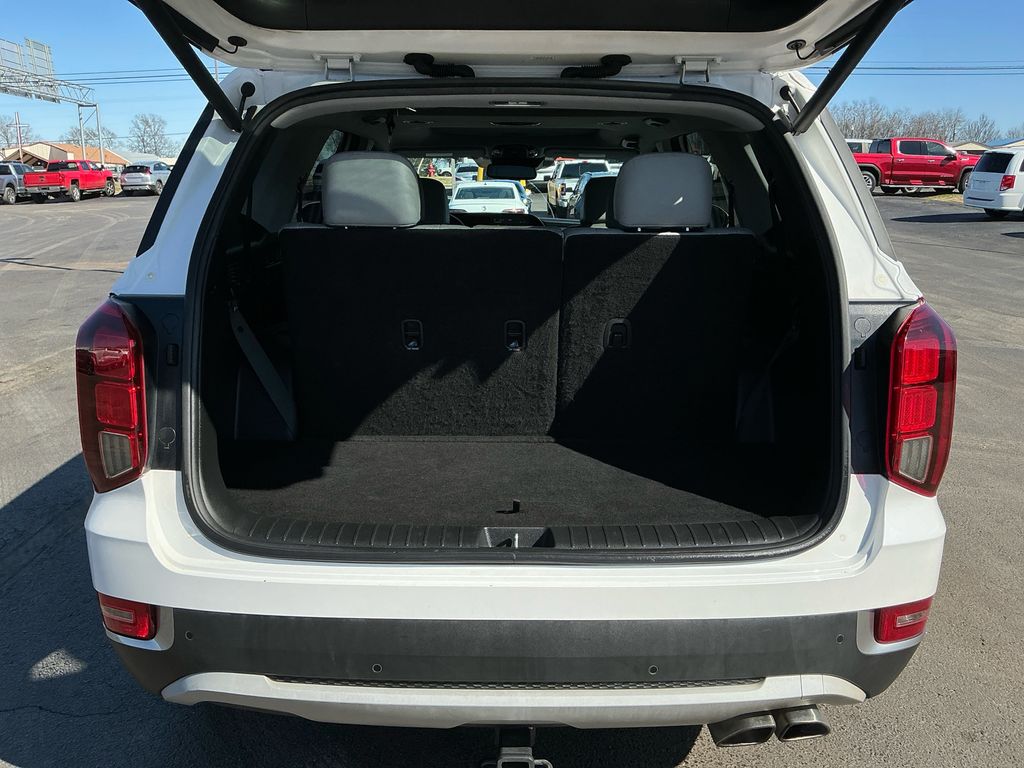 2020 Hyundai Palisade SEL Hyper White SEL AWD 8-Speed Automatic with SHIFTRONIC V6 115-Volt AC Power Outlet, 3.648 Axle Ratio, 3rd row seats: split-bench, 3rd Row USB Outlets, 4-Wheel Disc Brakes, 6 Speakers, 7" High Resolution Cluster Display, 8-Way Power Adjustable Passenger Seat, ABS brakes, Air Conditioning, Alloy wheels, AM/FM radio, Apple CarPlay & Android Auto, Artificial Leather-Wrapped Dashboard, Auto High-beam Headlights, Auto Leveling Rear Suspension, Auto-dimming Rear-View mirror, Automatic temperature control, Bi-LED Headlights, Brake assist, Bumpers: body-color, Cargo Cover/Screen, Cargo Net, Carpeted Floor Mats, Convenience Package P2, Delay-off headlights, Driver door bin, Driver vanity mirror, Dual front impact airbags, Dual front side impact airbags, Electronic Stability Control, Four wheel independent suspension, Front anti-roll bar, Front Bucket Seats, Front Center Armrest, Front dual zone A/C, Front reading lights, Fully automatic headlights, Garage door transmitter: HomeLink, Hands-Free Smart Liftgate w/Auto Open, Heated 2nd Row Seats, Heated door mirrors, Heated Front Bucket Seats, Heated front seats, Heated Steering Wheel, Illuminated entry, Integrated Memory System, Knee airbag, Leather Seat Trim, LED Taillights, Low tire pressure warning, Occupant sensing airbag, Outside temperature display, Overhead airbag, Overhead console, Panic alarm, Parking Distance Warning - Forward, Passenger door bin, Passenger vanity mirror, Power 3rd Row Seating, Power door mirrors, Power driver seat, Power steering, Power Sunroof P5, Power windows, Premium Package, Premium Package P3, Radio data system, Radio: AM/FM/MP3 Display Audio, Rear air conditioning, Rear anti-roll bar, Rear Side Window Sunshades, Rear window defroster, Rear window wiper, Reclining 3rd row seat, Remote keyless entry, Security system, Speed control, Speed-sensing steering, Split folding rear seat, Spoiler, Stain Resistant Cloth Seat Trim, Steering wheel mounted audio controls, Tachometer, Telescoping steering wheel, Tilt steering wheel, Traction control, Trip computer, Turn signal indicator mirrors, Ultrasonic Rear Seat Occupant Minder, Variably intermittent wipers, Wheel Locks, Wheels: 18" x 7.5J Machine Finish Alloy, Wheels: 20"x 7.5J Split 5-Spoke Machined Alloy, Wireless Phone Charger.