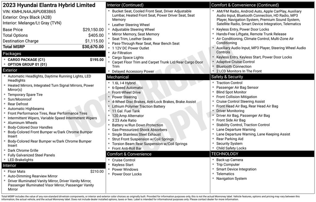 The 2023 Hyundai Elantra Hybrid Limited is the top trim of the hybrid Elantra sedan, known for excellent fuel economy and lots of tech features for the price. Heres a quick overview.Dual 10.25-inch screens (digital cluster + infotainment)