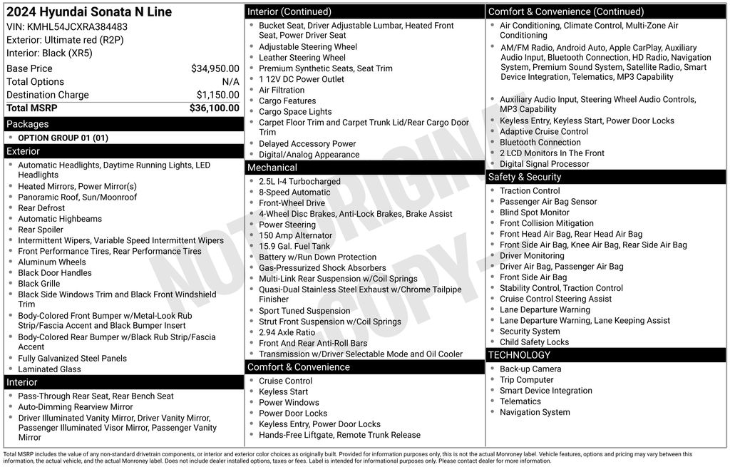 Priced below KBB Fair Purchase Price! Black Artificial Leather, 12 Speakers, 4-Wheel Disc Brakes, ABS brakes, Air Conditioning, Alloy wheels, AM/FM radio: SiriusXM, Apple CarPlay & Android Auto, Auto High-beam Headlights, Auto-dimming Rear-View mirror, Automatic temperature control, Brake assist, Delay-off headlights, Driver door bin, Driver vanity mirror, Dual front impact airbags, Dual front side impact airbags, Electronic Stability Control, Exterior Parking Camera Rear, Four wheel independent suspension, Front anti-roll bar, Front Bucket Seats, Front dual zone A/C, Front reading lights, Fully automatic headlights, Heated door mirrors, Heated front seats, Illuminated entry, Knee airbag, Leather steering wheel, Low tire pressure warning, Navigation System, Occupant sensing airbag, Outside temperature display, Overhead airbag, Overhead console, Panic alarm, Passenger door bin, Passenger vanity mirror, Power door mirrors, Power driver seat, Power moonroof, Power steering, Power windows, Radio data system, Rear anti-roll bar, Rear side impact airbag, Rear window defroster, Remote keyless entry, Security system, Speed control, Speed-sensing steering, Speed-Sensitive Wipers, Split folding rear seat, Spoiler, Steering wheel mounted audio controls, Tachometer, Telescoping steering wheel, Tilt steering wheel, Traction control, Trip computer, Variably intermittent wipers, Wheels: N Line 19" x 8.0J Aluminum Alloy, Black Artificial Leather.