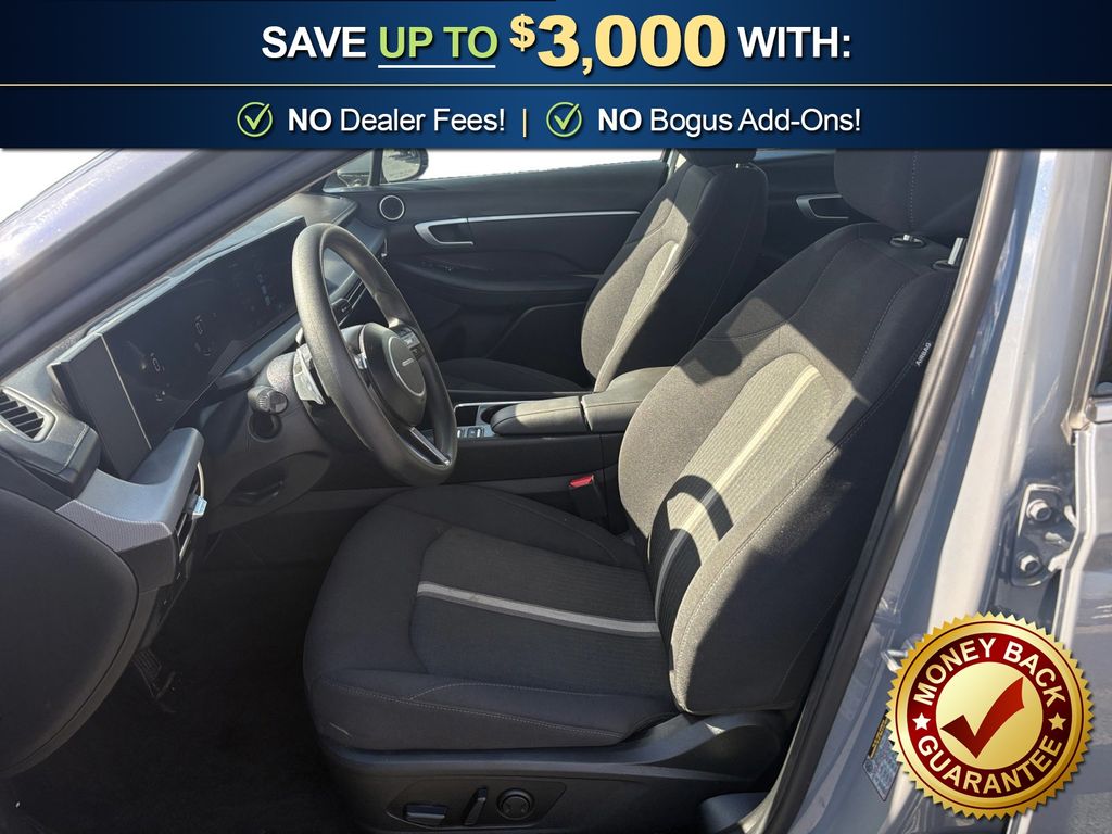 Black Cloth, 17" x 7.0J Aluminum Alloy Wheels, 4-Wheel Disc Brakes, 6 Speakers, ABS brakes, Air Conditioning, Alloy wheels, AM/FM radio: SiriusXM, Apple CarPlay & Android Auto, Auto High-beam Headlights, Automatic temperature control, Brake assist, Bumpers: body-color, Cloth Seating Surfaces, Delay-off headlights, Driver door bin, Driver vanity mirror, Dual front impact airbags, Dual front side impact airbags, Electronic Stability Control, Emergency communication system: Bluelink+, Exterior Parking Camera Rear, Four wheel independent suspension, Front anti-roll bar, Front Bucket Seats, Front Center Armrest, Front dual zone A/C, Front reading lights, Fully automatic headlights, Heated door mirrors, Heated Front Bucket Seats, Heated front seats, Illuminated entry, Knee airbag, Low tire pressure warning, Occupant sensing airbag, Option Group 01, Outside temperature display, Overhead airbag, Overhead console, Panic alarm, Passenger door bin, Passenger vanity mirror, Power door mirrors, Power driver seat, Power steering, Power windows, Radio data system, Radio: AM/FM/HD/SiriusXM, Rear anti-roll bar, Rear seat center armrest, Rear side impact airbag, Rear window defroster, Remote keyless entry, Security system, Speed control, Speed-sensing steering, Speed-Sensitive Wipers, Split folding rear seat, Steering wheel mounted audio controls, Tachometer, Telescoping steering wheel, Tilt steering wheel, Traction control, Trip computer, Variably intermittent wipers, Black Cloth. 2025 Hyundai Sonata SEL