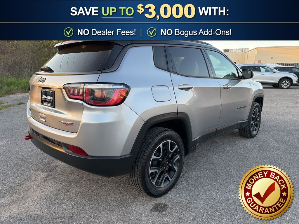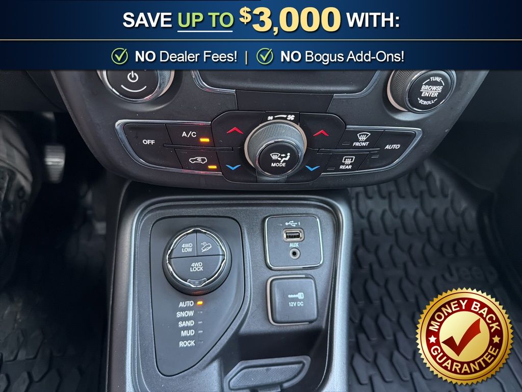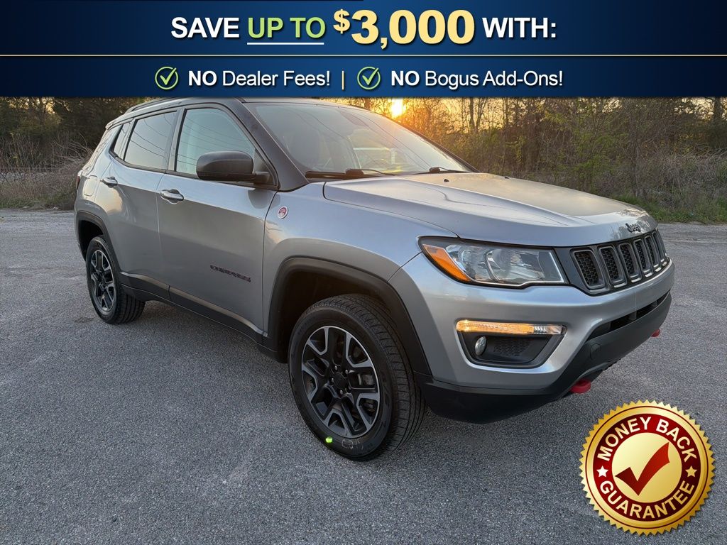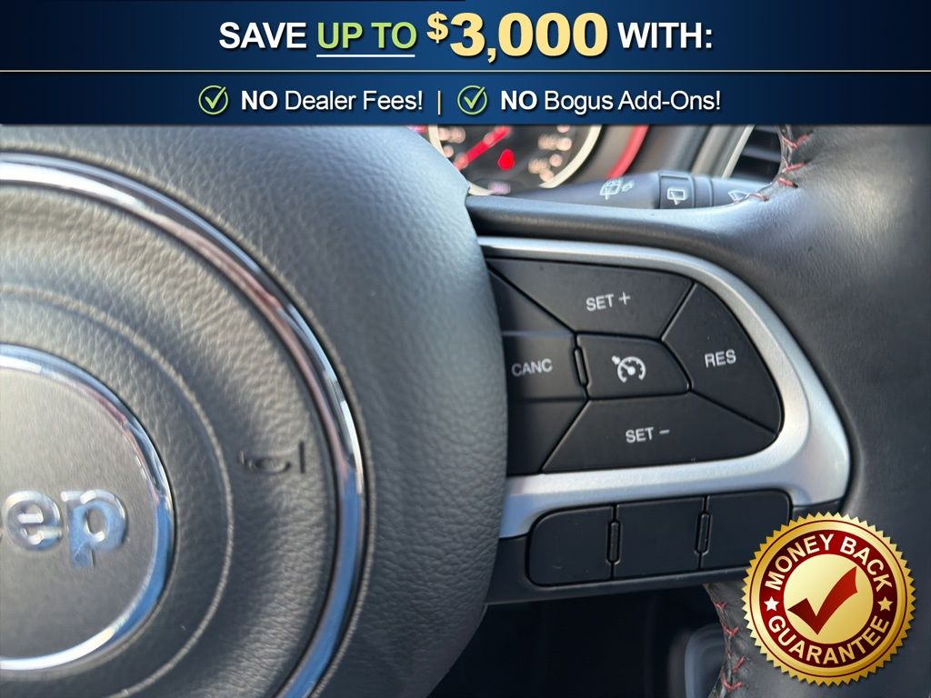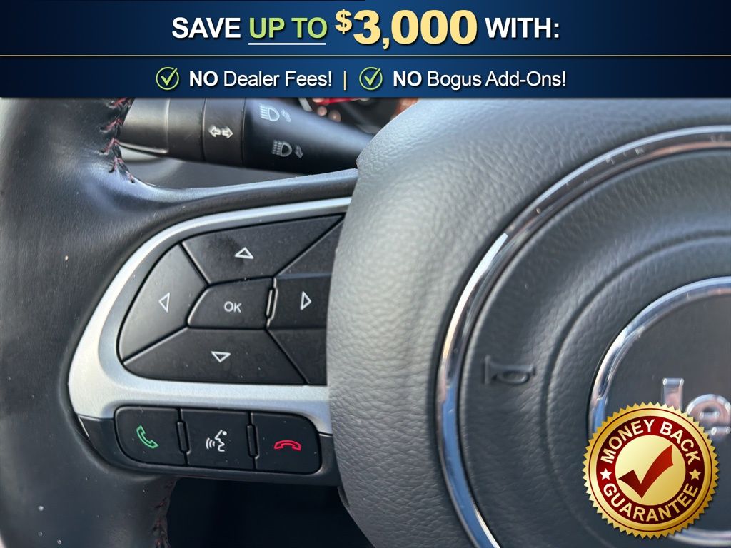 4WD, 4-Wheel Disc Brakes, 4.334 Axle Ratio, 6 Speakers, ABS brakes, Air Conditioning, Alloy wheels, AM/FM radio: SiriusXM, Anti-whiplash front head restraints, Apple CarPlay/Android Auto, Automatic temperature control, Brake assist, Bumpers: body-color, Compass, Delay-off headlights, Driver door bin, Driver vanity mirror, Dual front impact airbags, Dual front side impact airbags, Electronic Stability Control, Four wheel independent suspension, Front anti-roll bar, Front Bucket Seats, Front Center Armrest w/Storage, Front dual zone A/C, Front fog lights, Front reading lights, Fully automatic headlights, Google Android Auto, GPS Antenna Input, Heated door mirrors, Illuminated entry, Knee airbag, Leather Shift Knob, Low tire pressure warning, Manufacturer's Statement of Origin, Occupant sensing airbag, Outside temperature display, Overhead airbag, Overhead console, Panic alarm, ParkView Rear Back-Up Camera, Passenger door bin, Passenger vanity mirror, Power door mirrors, Power steering, Power windows, Premium Cloth/Leather Trim Bucket Seats, Quick Order Package 27E (DISC), Radio: Uconnect 4 w/8.4" Display, Rear anti-roll bar, Rear seat center armrest, Rear window defroster, Rear window wiper, Remote keyless entry, Roof rack: rails only, Speed control, Split folding rear seat, Spoiler, Steering wheel mounted audio controls, Tachometer, Telescoping steering wheel, Tilt steering wheel, Traction control, Trip computer, Turn signal indicator mirrors, USB Host Flip, Variably intermittent wipers, Wheels: 17" x 6.5" Painted/Bright Aluminum, 4WD. 2019 Jeep Compass Trailhawk