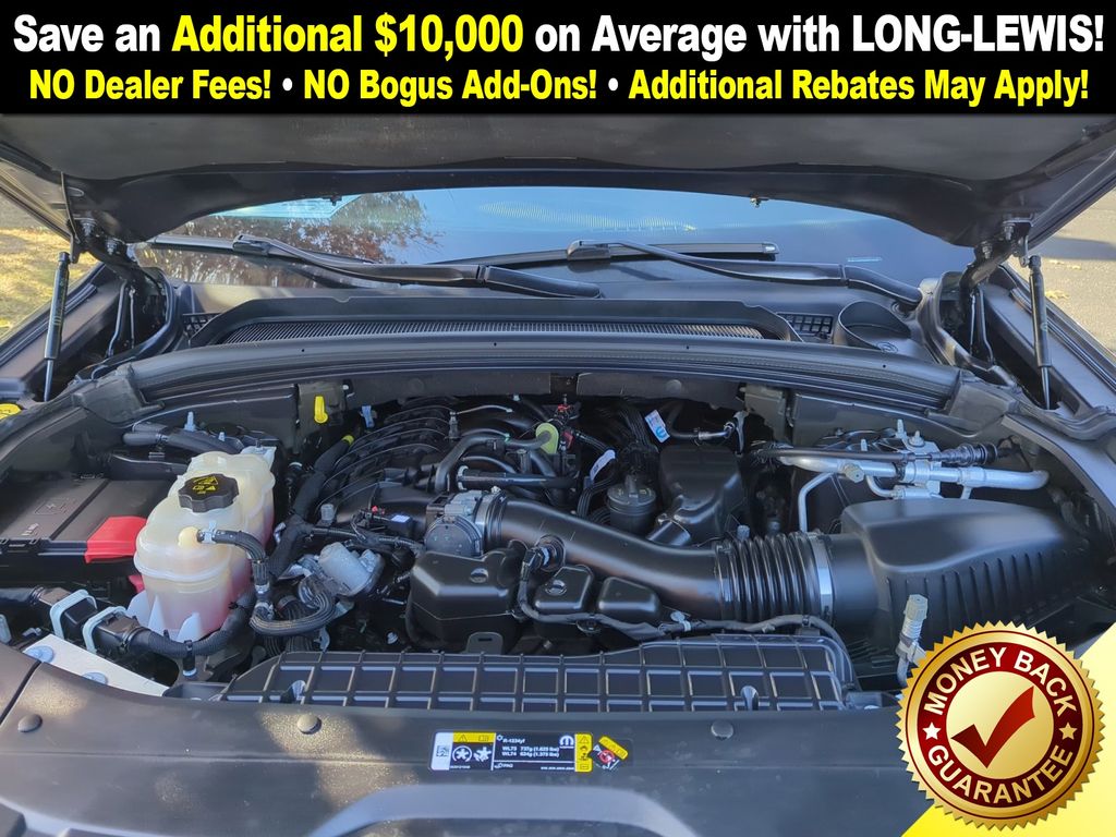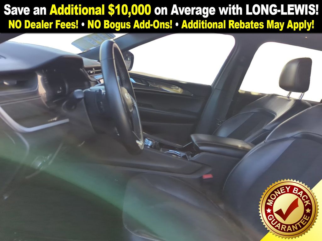 115V Auxiliary Power Outlet, 3.45 Rear Axle Ratio, 3rd Row Charge-Only USB Ports, 3rd row seats: split-bench, 4-Wheel Disc Brakes, 6 Speakers, ABS brakes, Air Conditioning, Alloy wheels, Altitude Appearance Package, AM/FM radio, Anti-whiplash front head restraints, Automatic temperature control, Black Headliner, Brake assist, Bumpers: body-color, Cloth Seats, Compass, Delay-off headlights, Delete Laredo Badge, Driver door bin, Driver vanity mirror, Dual front impact airbags, Dual front side impact airbags, Electronic Stability Control, Emergency communication system, Four wheel independent suspension, Front anti-roll bar, Front Bucket Seats, Front Center Armrest w/Storage, Front dual zone A/C, Front reading lights, Fully automatic headlights, Gloss Black Exterior Accents, Heated door mirrors, Heated Front Seats, Heated Steering Wheel, Illuminated entry, Knee airbag, Leather Trimmed Bucket Seats, Leather Wrapped Steering Wheel, Low tire pressure warning, Manual Fold Seatbacks, Molded In Color Black/Gloss Black Roof Rails, Normal Duty Suspension, Occupant sensing airbag, Outside temperature display, Overhead airbag, Overhead console, Panic alarm, ParkView Rear Back-Up Camera, Passenger door bin, Passenger vanity mirror, Power door mirrors, Power driver seat, Power Liftgate, Power steering, Power Sunroof, Power windows, Quick Order Package 22B Altitude, Radio data system, Radio: Uconnect 5 w/8.4" Display, Rain Sensitive Windshield Wipers, Rear air conditioning, Rear anti-roll bar, Rear reading lights, Rear window defroster, Rear window wiper, Reclining 3rd row seat, Remote keyless entry, Remote Start System, Security system, Selectable Tire Fill Alert, Speed control, Speed-Sensitive Wipers, Split folding rear seat, Spoiler, Steering wheel mounted audio controls, Tachometer, Telescoping steering wheel, Tilt steering wheel, Traction control, Trip computer, Variably intermittent wipers, Voltmeter, Wheels: 18" x 8.0" Fully Painted Aluminum, Wheels: 20" x 8.5" Gloss Black Painted Aluminum, Wireless Charging Pad.