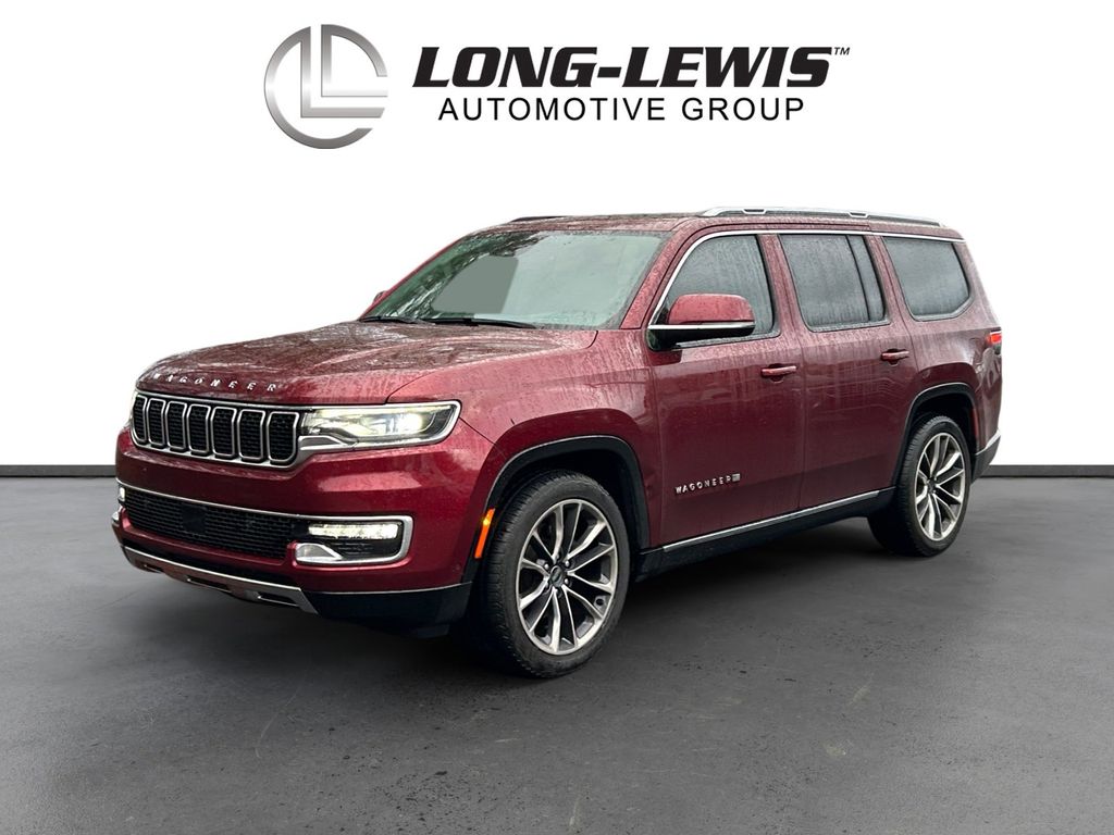 2022 Jeep Wagoneer Series III Velvet Red Pearlcoat Series III 4WD 8-Speed Automatic 5.7L V8 10 Speakers, 19 Speaker McIntosh Audio System, 3 Panel Sunroof, 3.21 Rear Axle Ratio, 3rd row seats: bench, 4-Wheel Disc Brakes, 7-Passenger Seating, ABS brakes, Adjustable pedals, Adjustable Roof Rail Crossbars, Air Conditioning, Alloy wheels, AM/FM radio: SiriusXM with 360L, Anti-whiplash front head restraints, Audio memory, Auto High-beam Headlights, Auto-dimming door mirrors, Auto-dimming Rear-View mirror, Auto-leveling suspension, Automatic temperature control, Brake assist, Bumpers: body-color, Cargo Cover, Compass, Delay-off headlights, Driver door bin, Driver vanity mirror, Driver's Seat Mounted Armrest, Dual front impact airbags, Dual front side impact airbags, Electronic Stability Control, Exterior Parking Camera Rear, Flexible Seating Group, Floor Console w/Cupholder, Four wheel independent suspension, Front anti-roll bar, Front Bucket Seats, Front Center Armrest w/Storage, Front dual zone A/C, Front fog lights, Front Passenger Interactive Display, Front reading lights, Fully automatic headlights, Garage door transmitter, Genuine wood console insert, Genuine wood dashboard insert, Genuine wood door panel insert, Heads-Up Display, Heated door mirrors, Heated front seats, Heated rear seats, Heated steering wheel, Illuminated entry, Knee airbag, Leather Trimmed Bucket Seats, Low tire pressure warning, Luxury Front & Rear Floor Mats, Memory seat, Navigation System, Normal Duty Suspension, Occupant sensing airbag, Outside temperature display, Overhead airbag, Overhead console, Panic alarm, Passenger door bin, Passenger seat mounted armrest, Passenger vanity mirror, Pedal memory, Power adjustable front head restraints, Power Deployable Running Boards, Power door mirrors, Power driver seat, Power Liftgate, Power passenger seat, Power steering, Power Tip/Slide Recline 2nd Row Buckets, Power windows, Premium Group I (DISC), Quick Order Package 22N, Radio data system, Radio: Uconnect 5 Nav w/10.1" Display, Rain sensing wipers, Rear air conditioning, Rear anti-roll bar, Rear dual zone A/C, Rear reading lights, Rear seat center armrest, Rear window defroster, Rear window wiper, Reclining 3rd row seat, Remote keyless entry, Reversible Carpet/Vinyl Cargo Mat, Security system, Speed control, Speed-sensing steering, Speed-Sensitive Wipers, Split folding rear seat, Steering wheel memory, Steering wheel mounted audio controls, Tachometer, Telescoping steering wheel, Tilt steering wheel, Traction control, Trip computer, Turn signal indicator mirrors, Variably intermittent wipers, Ventilated front seats, Voltmeter, Wheels: 20" x 9.0" Premium 2 Aluminum, Wheels: 22" x 9.0" Premium 3 Aluminum (DISC).