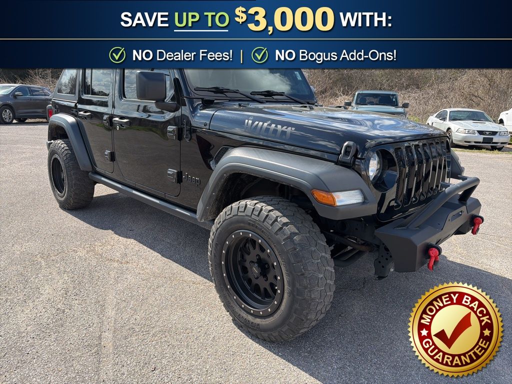 110 MPH Vehicle Max Speed Calibration, 3.45 Rear Axle Ratio, 4-Wheel Disc Brakes, 4-Wheel Drive Swing Gate Decal, 8 Speakers, 97 MPH Vehicle Max Speed Calibration, ABS brakes, Air Conditioning, AM/FM radio, Anti-Spin Differential Rear Axle, Apple CarPlay/Android Auto, Aux Battery, BF Goodrich Brand Tires, Black 3-Piece Hard Top, Black Grille, Black Trail Rated Badge, Brake assist, Cloth Low-Back Bucket Seats, Compass, Deep Tint Sunscreen Windows, Delay-off headlights, Driver door bin, Driver vanity mirror, Dual front impact airbags, Dual front side impact airbags, Electronic Stability Control, Emergency communication system: SiriusXM Guardian, Engine Oil Cooler, Freedom Panel Storage Bag, Front anti-roll bar, Front Bucket Seats, Front Center Armrest w/Storage, Front fog lights, Front reading lights, Integrated roll-over protection, Jeep Trail Rated Kit, Low tire pressure warning, Matte Black Jeep Badge, Mold In Color Bumper w/Gloss Black, MOPAR All-Weather Floor Mats, No Soft Top, Non-Lock Fuel Cap w/o Discriminator, Normal Duty Suspension, Occupant sensing airbag, Outside temperature display, ParkView Rear Back-Up Camera, Passenger door bin, Passenger vanity mirror, Power steering, Quick Order Package 22K Willys Sport, Radio data system, Radio: Uconnect 4 w/7" Display, Rear anti-roll bar, Rear reading lights, Rear Window Defroster, Rear Window Wiper/Washer, Speed control, Split folding rear seat, Steering wheel mounted audio controls, Stop-Start Dual Battery System, Tachometer, Telescoping steering wheel, Tilt steering wheel, Traction control, Trip computer, Variably intermittent wipers, Wheels: 17" x 7.5" Black Steel Styled, Wheels: 17" x 7.5" Moab Black Aluminum, Willys, Willys Hood Decal. 2022 Jeep Wrangler Unlimited Willys