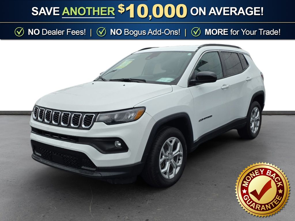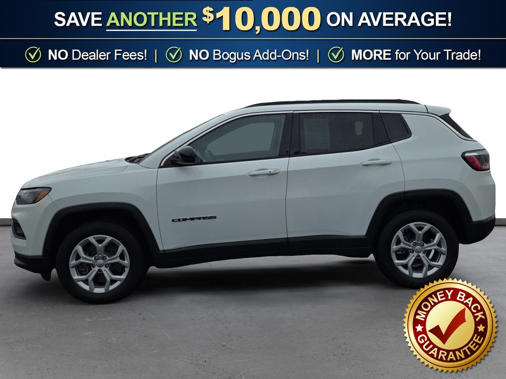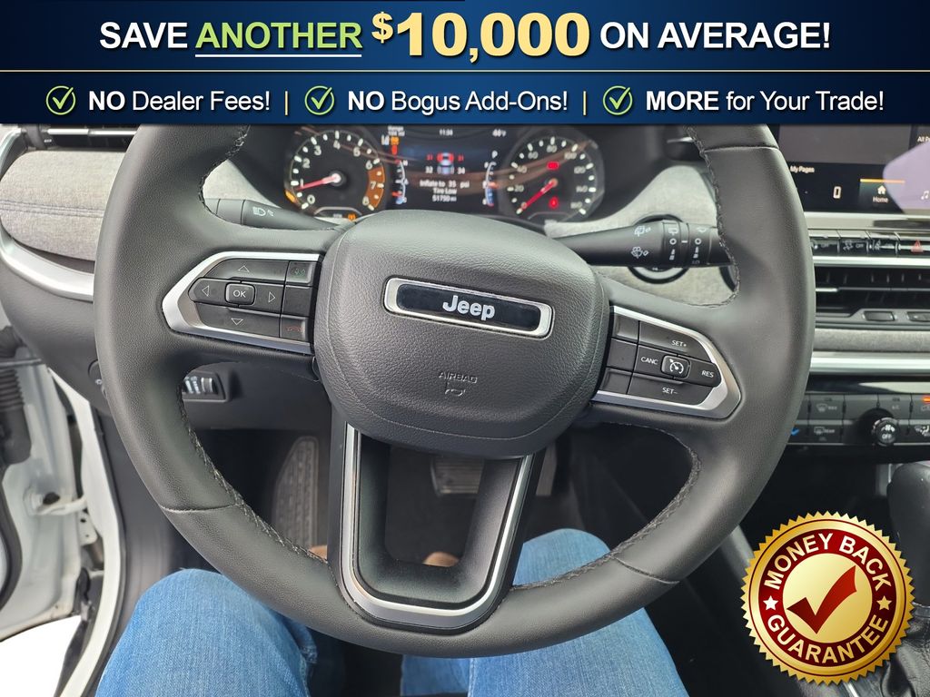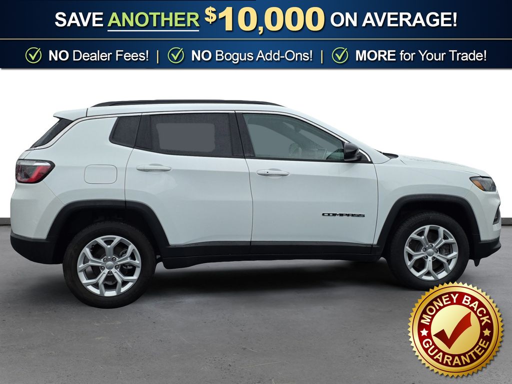 4WD, 17" x 7" Aluminum Wheels, 3.73 Final Drive Ratio, 4-Wheel Disc Brakes, 6 Speakers, ABS brakes, Air Conditioning, Alloy wheels, AM/FM radio: SiriusXM, Auto High-beam Headlights, Brake assist, Bumpers: body-color, Compass, Delay-off headlights, Driver door bin, Driver vanity mirror, Dual front impact airbags, Dual front side impact airbags, Electronic Stability Control, Emergency communication system: Jeep Connect, Four wheel independent suspension, Front anti-roll bar, Front Bucket Seats, Front Center Armrest w/Storage, Front fog lights, Front License Plate Bracket, Front reading lights, Fully automatic headlights, Heated door mirrors, Illuminated entry, Knee airbag, Leather Shift Knob, Leather steering wheel, Low tire pressure warning, Occupant sensing airbag, Outside temperature display, Overhead airbag, Overhead console, Panic alarm, ParkView Rear Back-Up Camera, Passenger door bin, Passenger vanity mirror, Power door mirrors, Power steering, Power windows, Premium Cloth/Vinyl Bucket Seats, Quick Order Package 29J Latitude, Radio: Uconnect 5 w/10.1" Display, Rear anti-roll bar, Rear seat center armrest, Rear window defroster, Rear window wiper, Remote keyless entry, Security system, Speed control, Split folding rear seat, Spoiler, Steering wheel mounted audio controls, Tachometer, Telescoping steering wheel, Tilt steering wheel, Traction control, Trip computer, Variably intermittent wipers, 4WD. 2024 Jeep Compass Latitude
