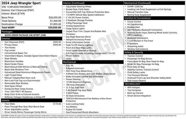 Why it matters: Simple, rugged, and functional â" the Wrangler Sport is made for drivers who value freedom and practicality.