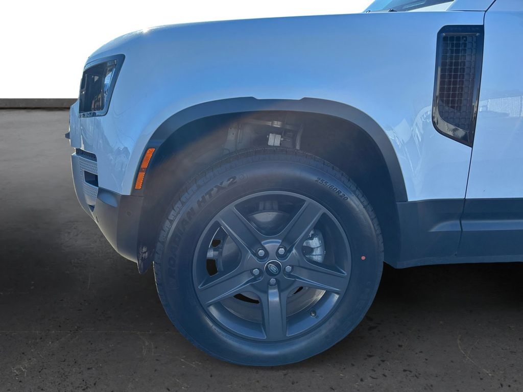 2023 Land Rover Defender 110 S White S 4WD 8-Speed Automatic 2.0L Turbocharged 11 Speakers, 12-Way Heated Electric Memory Seats, 4-Wheel Disc Brakes, 4.1 Axle Ratio, ABS brakes, Air Conditioning, Alloy wheels, AM/FM radio: SiriusXM, Apple CarPlay & Android Auto, Auto High-beam Headlights, Auto-dimming door mirrors, Auto-dimming Rear-View mirror, Automatic temperature control, Brake assist, Bumpers: body-color, Compass, Delay-off headlights, Driver door bin, Driver vanity mirror, Dual front impact airbags, Dual front side impact airbags, Electronic Stability Control, Exterior Parking Camera Rear, Four wheel independent suspension, Front anti-roll bar, Front Bucket Seats, Front Center Armrest, Front dual zone A/C, Front reading lights, Fully automatic headlights, Garage door transmitter: HomeLink, Grained Leather Seat Trim, Heated door mirrors, Heated front seats, Illuminated entry, Leather Shift Knob, Leather steering wheel, Low tire pressure warning, Memory seat, Navigation system: Connected Navigation PIVI Pro, Occupant sensing airbag, Outside temperature display, Overhead airbag, Overhead console, Panic alarm, Passenger door bin, Passenger vanity mirror, Power door mirrors, Power driver seat, Power passenger seat, Power steering, Power windows, Radio data system, Radio: 400W 11 Speaker Meridian Sound System, Rain sensing wipers, Rear anti-roll bar, Rear fog lights, Rear reading lights, Rear seat center armrest, Rear window defroster, Rear window wiper, Remote keyless entry, Security system, Speed control, Speed-sensing steering, Speed-Sensitive Wipers, Split folding rear seat, Steering wheel mounted audio controls, Tachometer, Telescoping steering wheel, Tilt steering wheel, Traction control, Trip computer, Variably intermittent wipers, Weather band radio, Wheels: 19" Gloss Sparkle Silver Style 6010.