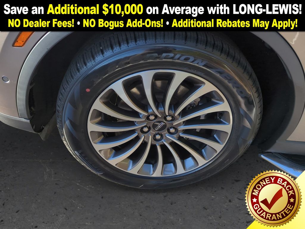 14 Speakers, 2nd Row Bench Seat, 3.58 Axle Ratio, 30-Way Perfect Position Seats w/Active Motion, 3rd row seats: split-bench, 4-Wheel Disc Brakes, ABS brakes, Active Park Assist Plus, Adaptive Cruise Control w/Traffic Jam Assist, Adaptive Pixel LED Headlamps, Air Conditioning, Alloy wheels, AM/FM radio: SiriusXM, Audio memory, Auto Air Refresh, Auto Heated/Ventilated Driver & Passenger Seats, Auto High-beam Headlights, Auto-dimming door mirrors, Auto-dimming Rear-View mirror, Automatic temperature control, Brake assist, Bumpers: body-color, Compass, Convenience Package, Delay-off headlights, Driver door bin, Driver vanity mirror, Dual front impact airbags, Dual front side impact airbags, Electronic Stability Control, Elements Package Plus, Emergency communication system, Equipment Group 201A, Evasive Steering Assist, Four wheel independent suspension, Front anti-roll bar, Front Bucket Seats, Front Center Armrest, Front dual zone A/C, Front fog lights, Front reading lights, Fully automatic headlights, Garage door transmitter, Head-Up Display, Heated door mirrors, Heated front seats, Heated Steering Wheel, Heated VisioBlade Wipers, Heated/Ventilated 2nd Row Outboard Seats, HVAC memory, Illuminated entry, Illumination Package, Knee airbag, Lincoln Co-Pilot360 Plus, Lincoln Lit Star in Grille, Low tire pressure warning, Luxury Package, Memory seat, Navigation System, Occupant sensing airbag, Outside temperature display, Overhead airbag, Overhead console, Panic alarm, Passenger door bin, Passenger vanity mirror, Phone As A Key, Power door mirrors, Power driver seat, Power Liftgate, Power moonroof: Panoramic Vista Roof, Power passenger seat, Power steering, Power windows, Premium Lthr Heated/Ventilated Fnt Captain's Chairs, Radio data system, Radio: Revel AM/FM Audio System w/14 Speakers, Radio: Revel Ultima 3D Audio System w/28 Speakers, Rain sensing wipers, Rear air conditioning, Rear anti-roll bar, Rear audio controls, Rear Door Sunshades, Rear dual zone A/C, Rear reading lights, Rear window defroster, Rear window wiper, Remote keyless entry, Reverse Brake Assist, Security system, SiriusXM, Speed control, Speed-Sensitive Wipers, Split folding rear seat, Spoiler, Steering wheel memory, Steering wheel mounted A/C controls, Steering wheel mounted audio controls, SYNC 3 Communication & Entertainment System, Tachometer, Telescoping steering wheel, Tilt steering wheel, Traction control, Trip computer, Turn signal indicator mirrors, Variably intermittent wipers, Wheels: 20" Bright-Machined Aluminum, Wireless Charging Pad.