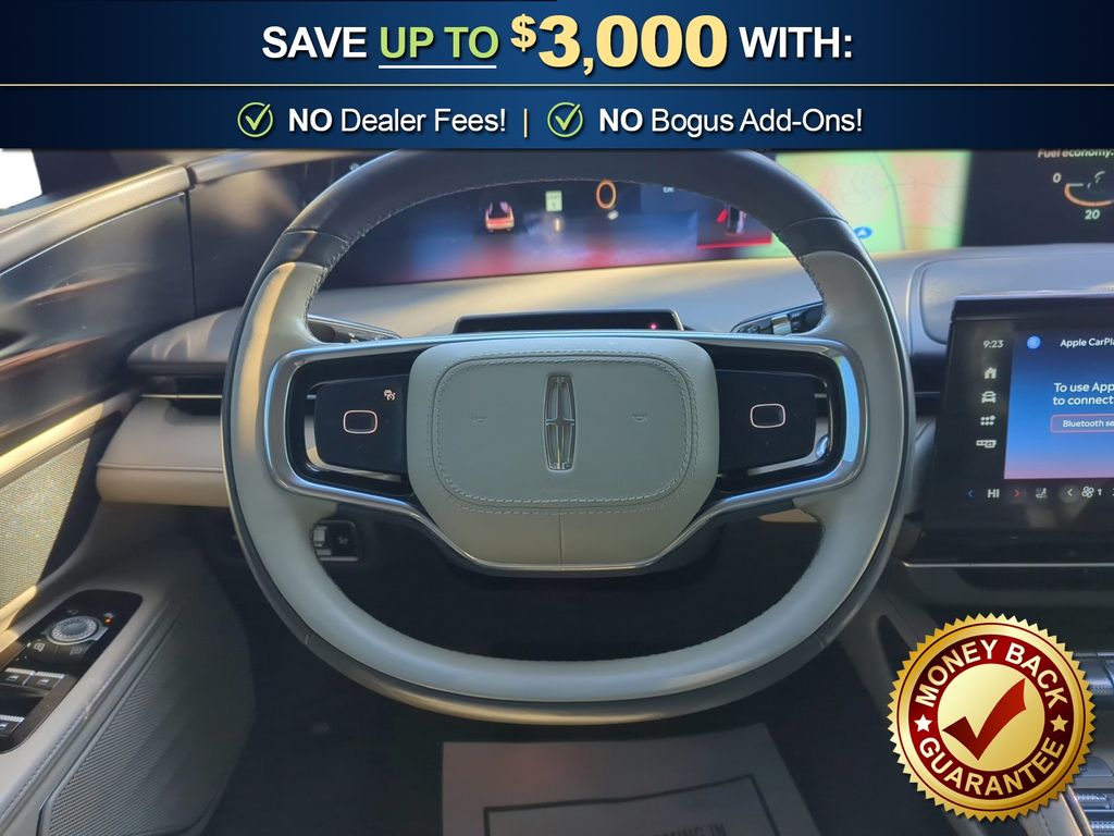 Lincoln Certified, 10 Speakers, 3.81 Axle Ratio, 360 Degree Camera, 4-Wheel Disc Brakes, ABS brakes, Active Park Assist 2.0, Adaptive suspension, Air Conditioning, Alexa Built-In, Alloy wheels, AM/FM Radio, AM/FM radio: SiriusXM with 360L, Apple CarPlay/Android Auto, Auto High-beam Headlights, Auto tilt-away steering wheel, Auto-dimming Rear-View mirror, Automatic temperature control, Blind Spot Info. System w/Cross-Traffic Alert, Brake assist, Bumpers: body-color, Compass, Delay-off headlights, Driver door bin, Driver vanity mirror, Dual front impact airbags, Dual front side impact airbags, Electronic Stability Control, Emergency communication system: 911 Assist, Equipment Group 201A, Exterior Parking Camera Rear, Four wheel independent suspension, Front anti-roll bar, Front Bucket Seats, Front Center Armrest w/Storage, Front dual zone A/C, Front reading lights, Fully automatic headlights, Garage door transmitter: HomeLink, Heated door mirrors, Heated front seats, Heated steering wheel, Illuminated entry, Intelligent Adaptive Cruise Control, Knee airbag, Leather steering wheel, Lincoln BlueCruise Equipped (90-Day Trial), Low tire pressure warning, Memory seat, Navigation System, Occupant sensing airbag, Outside temperature display, Overhead airbag, Overhead console, Panic alarm, Passenger door bin, Passenger vanity mirror, Power door mirrors, Power driver seat, Power Liftgate, Power passenger seat, Power steering, Power windows, Prem Lthr-Trimmed Heated/Ventilated Captain Seats, Radio data system, Rain sensing wipers, Rear anti-roll bar, Rear reading lights, Rear seat center armrest, Rear window defroster, Rear window wiper, Remote keyless entry, Security system, Speed control, Speed-sensing steering, Speed-Sensitive Wipers, Split folding rear seat, Spoiler, Steering wheel memory, Steering wheel mounted audio controls, Tachometer, Telescoping steering wheel, Tilt steering wheel, Traction control, Trip computer, Turn signal indicator mirrors, Variably intermittent wipers, Ventilated front seats, Wheels: 21" Ultra Bright Machined Aluminum.