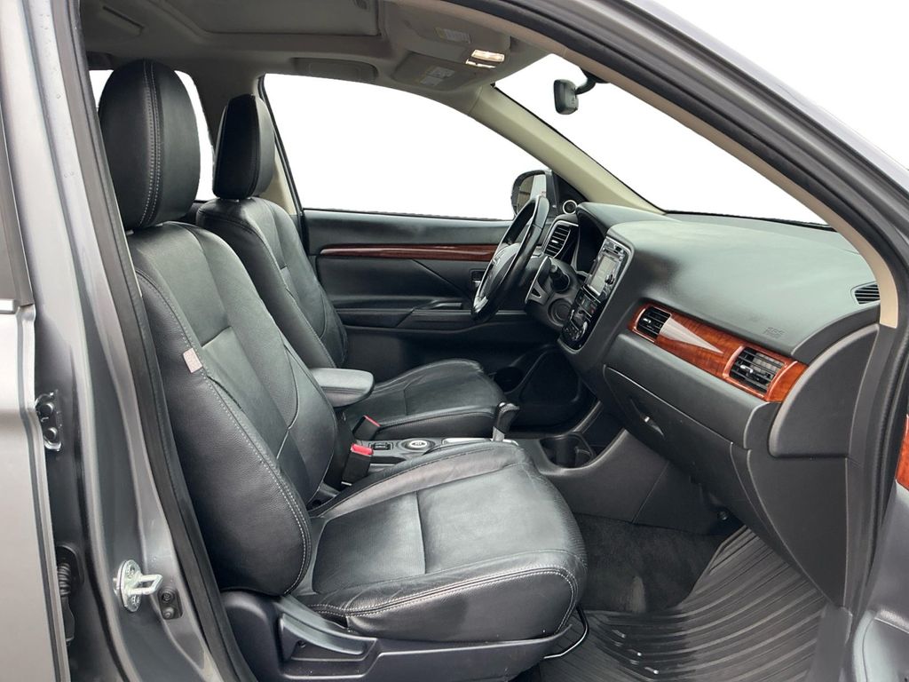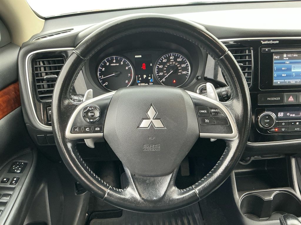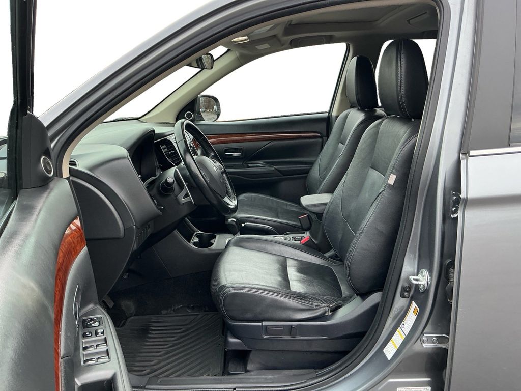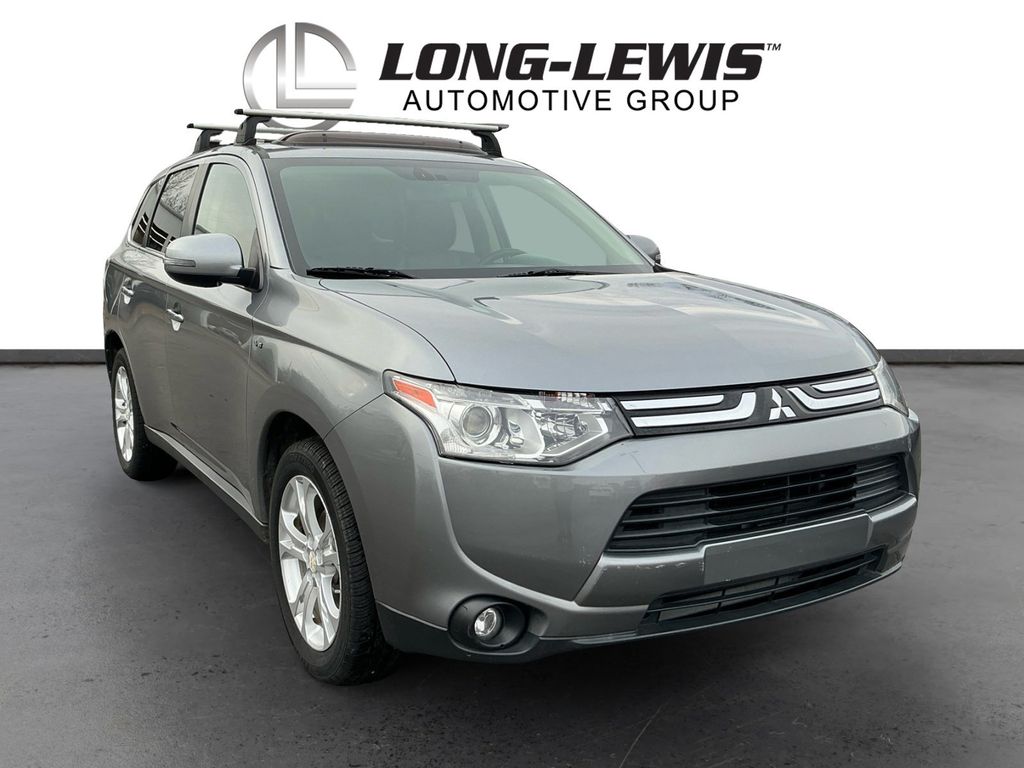 2014 Mitsubishi Outlander GT Mercury Gray Pearl GT 4WD 6-Speed Sportronic with Paddle-Shifters 3.0L SOHC V6 MIVEC 24V 6-Speed Sportronic with Paddle-Shifters, 4WD, 18" x 7" Aluminum Alloy Wheels, 3.36 Axle Ratio, 3rd row seats: split-bench, 4-Wheel Disc Brakes, 6 Speakers, ABS brakes, Air Conditioning, Alloy wheels, AM/FM radio: SiriusXM, Auto High-beam Headlights, Automatic temperature control, Brake assist, Bumpers: body-color, CD player, Delay-off headlights, Driver door bin, Driver vanity mirror, Dual front impact airbags, Dual front side impact airbags, Electronic Stability Control, Exterior Parking Camera Rear, Four wheel independent suspension, Front anti-roll bar, Front Bucket Seats, Front Center Armrest w/Storage, Front dual zone A/C, Front fog lights, Front reading lights, Fully automatic headlights, Heated door mirrors, Heated Front Bucket Seats, Heated front seats, High intensity discharge headlights: Xenon, Illuminated entry, Knee airbag, Leather Shift Knob, Low tire pressure warning, Occupant sensing airbag, Outside temperature display, Overhead airbag, Panic alarm, Passenger door bin, Passenger vanity mirror, Power door mirrors, Power steering, Power windows, Radio data system, Radio: AM/FM Stereo w/CD/MP3/HD/SiriusXM Radio, Rain sensing wipers, Rear anti-roll bar, Rear seat center armrest, Rear window defroster, Rear window wiper, Remote keyless entry, Security system, Speed control, Speed-sensing steering, Speed-Sensitive Wipers, Split folding rear seat, Sport Fabric Seat Trim, Steering wheel mounted audio controls, Tachometer, Telescoping steering wheel, Tilt steering wheel, Traction control, Trip computer, Turn signal indicator mirrors, Variably intermittent wipers, 6-Speed Sportronic with Paddle-Shifters, 4WD.